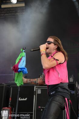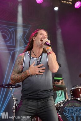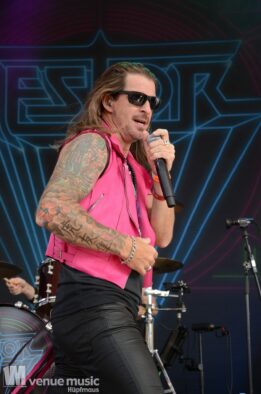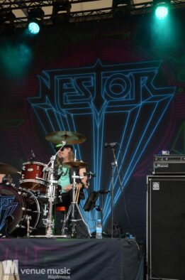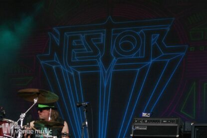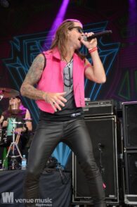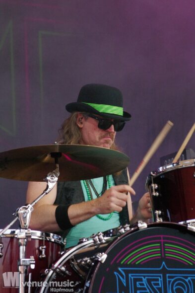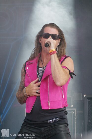 Danach konnten endlich Nestor die Bühne entern – sie kamen grade so eben rechtzeitig vom Flughafen zum Amhitheater. Und zack – rauf auf die Bühne und abrocken. Nun kam mal Farbe ins Spiel – auch wenns pink war, nein: es sind nicht J.B.O. ;) – und ebenfalls wieder ein Stilwechsel. Ich hatte von Nestor vorher noch nie gehört, aber der Auftritt hat viel Spaß gemacht. Das fanden auch viele andere, denn das Rund vor der Bühne war gut gefüllt :) Die Band hatte sich zwar bereits 1989 gegründet, jedoch nie eine Platte aufgenommen. Seit 2021 spielen die Schweden aber wieder zusammen und haben inzwischen auch das Album „Kids in a Ghost Town“ veröffentlicht, welches sie fast komplett spielen konnten. Als Zugabe gabs dann das Cover „I Wanna Dance With Somebody“ von Whitney Houston, welches alle lauthals mitgrölten. Das machte einfach Spaß! Hoffentlich sieht man die Jungs noch öfter auf deutschen Bühnen!