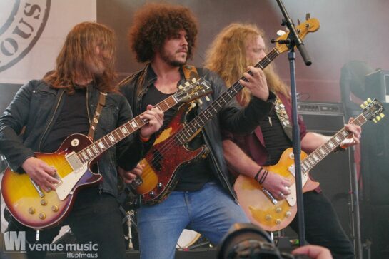 So richtige Klassiker erklangen mit Brian Downey`s Alive and Dangerous durch das Amphitheater, ist doch Brian Downey Gründungsmitglied von Thin Lizzy. Und mal ehrlich: mindestens einige der Songs kennen doch alle im Publikum. So konnte perfekt mitgesungen und mitgefeiert werden, auch wenn man vielleicht kein Hardcorefan der Band ist. Titel wie „Dancing in the Moonlight“, „Jailbreak“ oder „Rosalie“ sind halt Klassiker, ebenso „The Boys Are Back in Town“. Beendet wurde der Auftritt mit „Whiskey in the Jar“ – auch wenn viele das eher Metallica zuordnen würden (dabei ist es ein irisches Traditional). Auf jeden Fall ein kleines Kontrastprogramm.