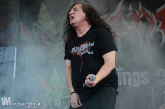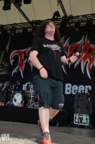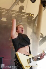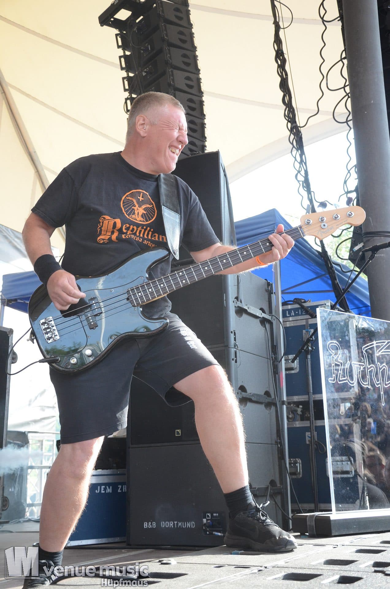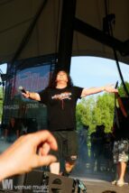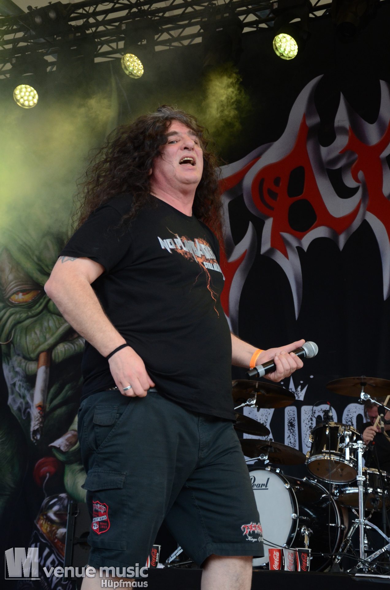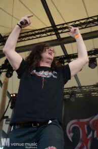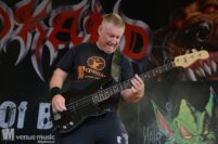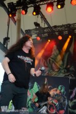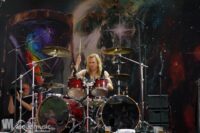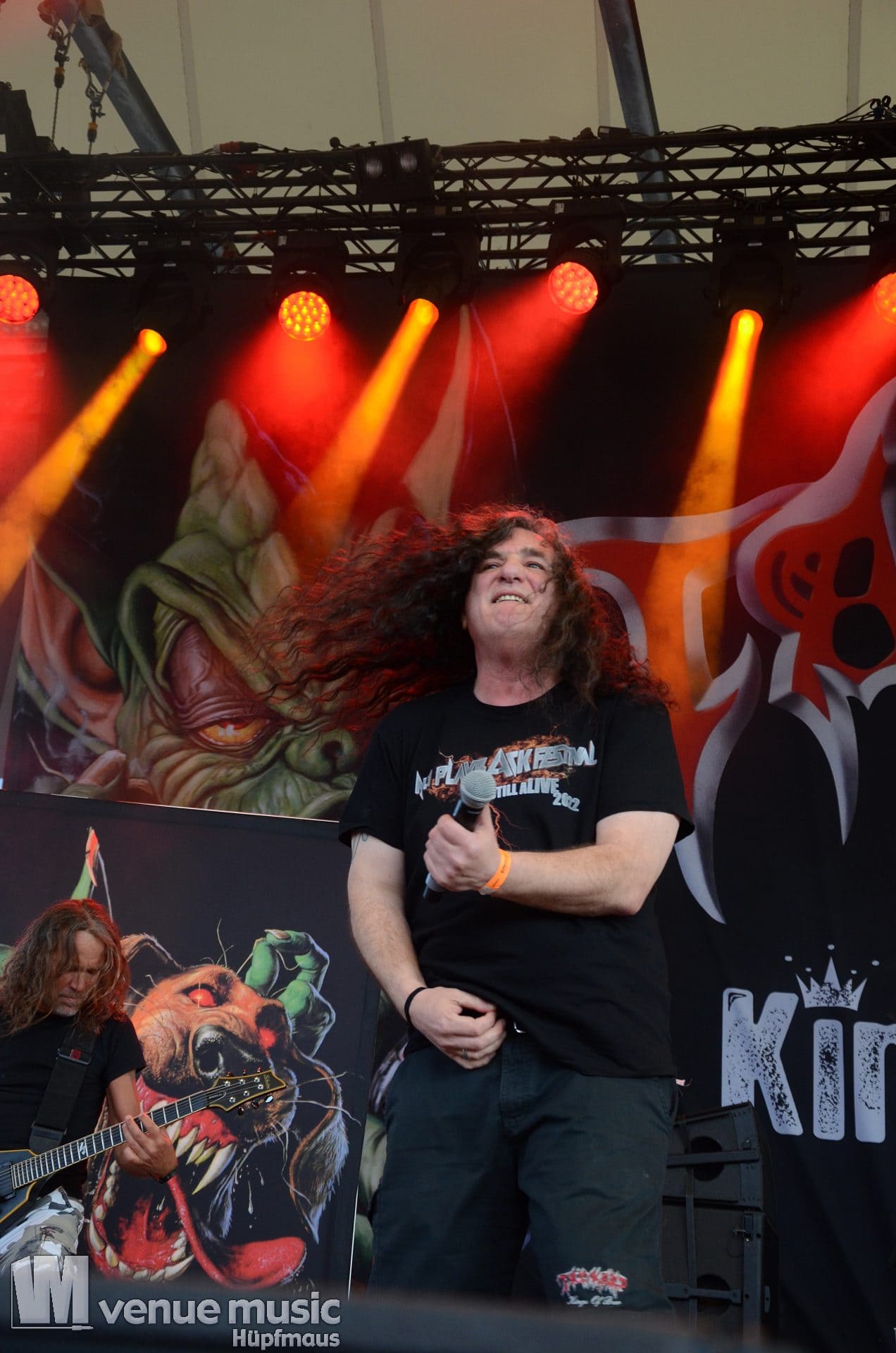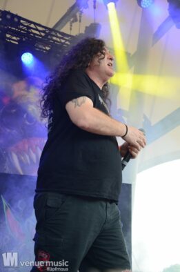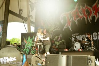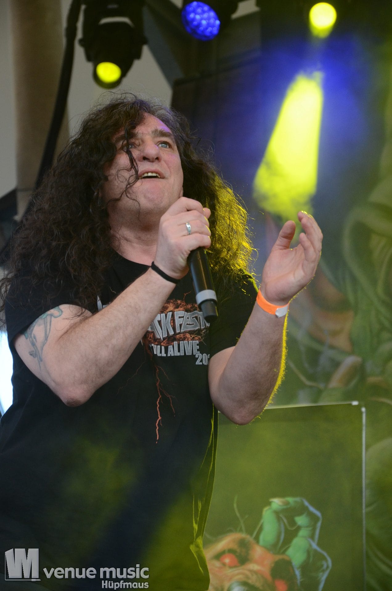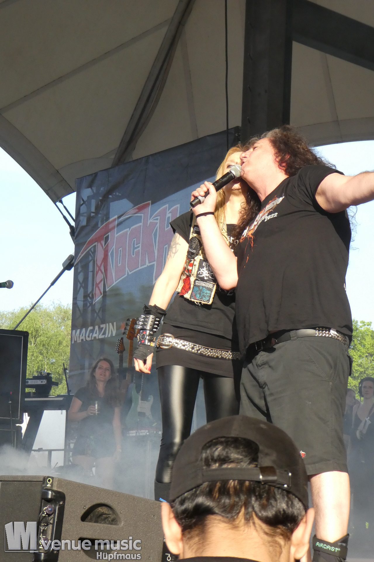 Danach ging es mit ebenso viel Power auf der Bühne weiter, denn Tankard waren nun an der Reihe. Und wie immer war es schwierig, Gerre mal bei einem ruhigen Moment zu erwischen, denn wie immer flitzte er von rechts nach links über die Bühne. Auch Frank Thorwarth stand wie so oft kaum still – und war mal wieder ein Meister der Grimassen ;) In weiser Voraussicht hatte die Kamerafrau vom WDR sich bei Tankard für eine der Kameras hinten im Publikum einteilen lassen, wurde sie doch bereits bei einem früheren Auftritt der Band von Gerre auf die Bühne geholt zu „A Girl Called Cerveza“. Schade, ich fands damals lustig ;) Dafür hatten Tankard zum Abschluss des Sets noch einen prominenten Gast mit auf der Bühne, denn Sabina Claasen unterstützte Gerre bei „Empty Tankard“ fleissig. Dafür hat er auch lange genug an ihr herumgebaggert ;) Wie immer machte der Tankard Auftritt Spaß, um erstere Themen als die Reinheit des Bieres gehts eher selten.. Musik, Spaß und Bier eben. Reicht doch für einen geilen Auftritt. Auch hier war das Set gefühlt deutlich zu kurz, das Publikum feierte zu Titeln wie „Chemical Invasion“, „Zombie Attack“ oder „The Morning After“ richtig ab. Sicher wird dem einen oder anderen ein Lieblingssong gefehlt haben, doch so ist das immer auf den Festivals..
