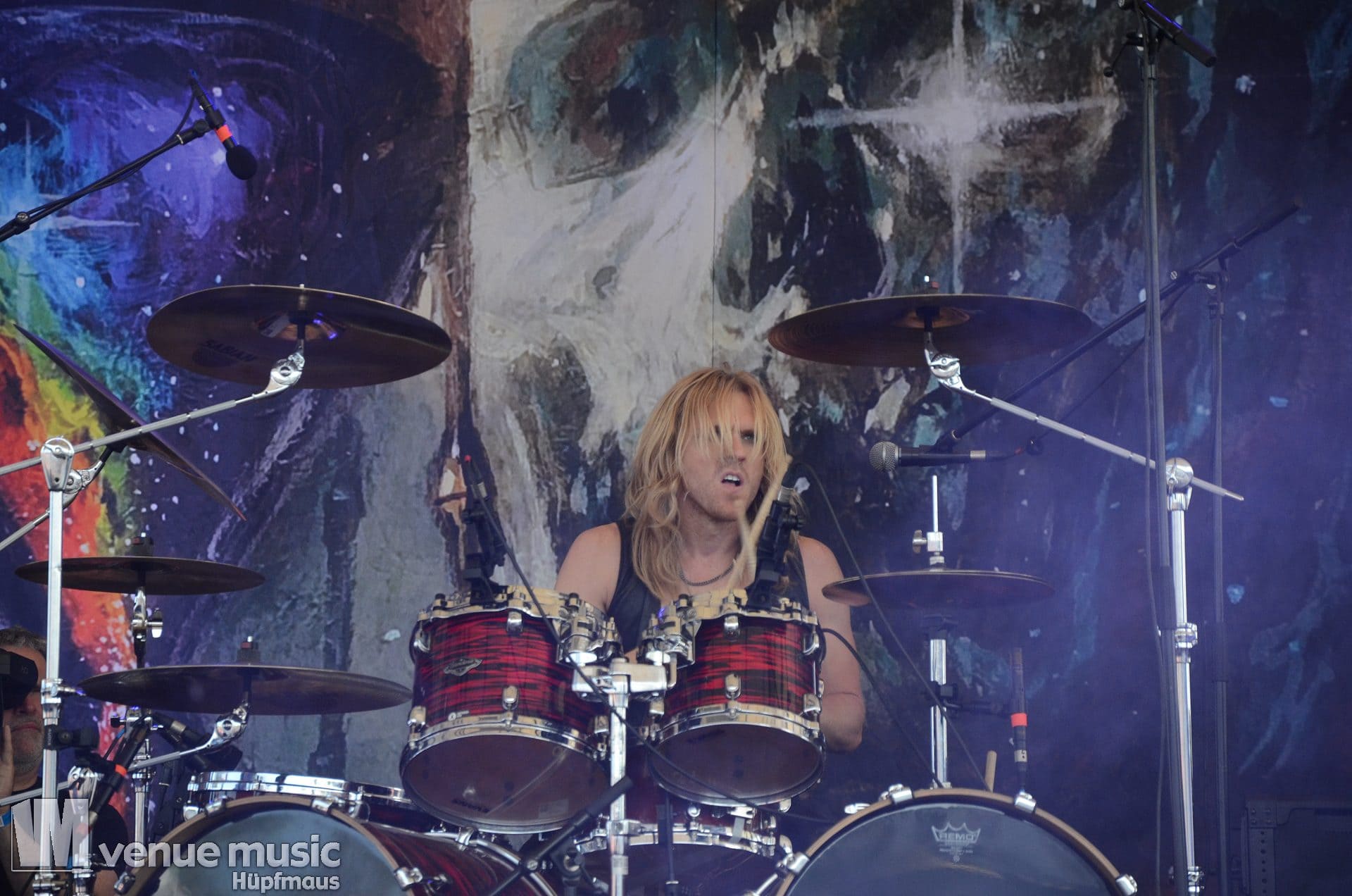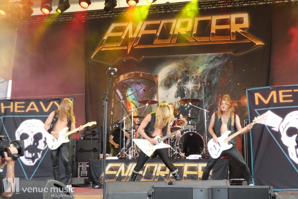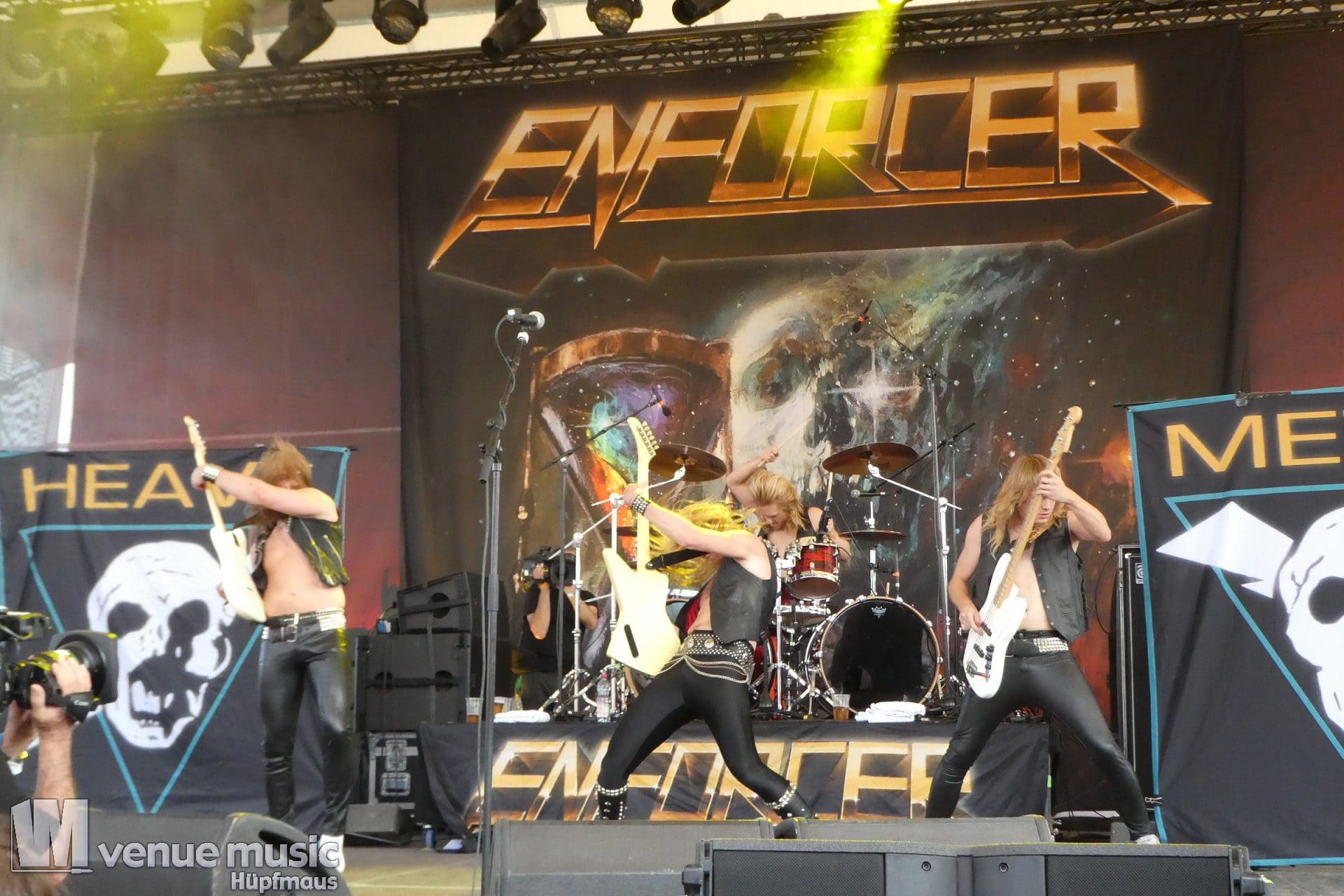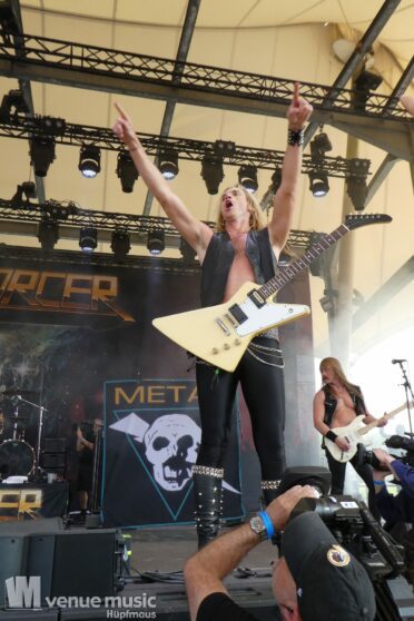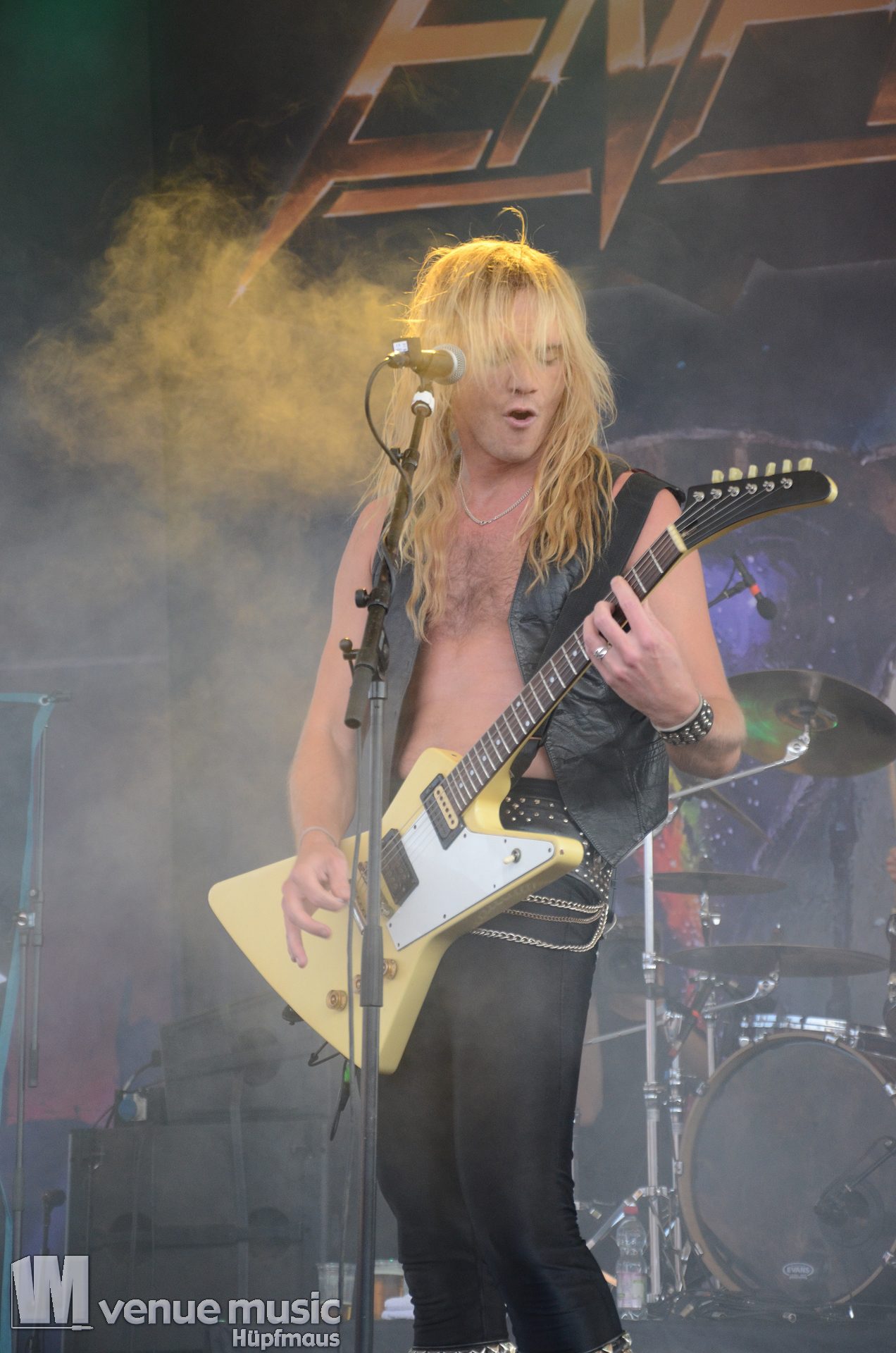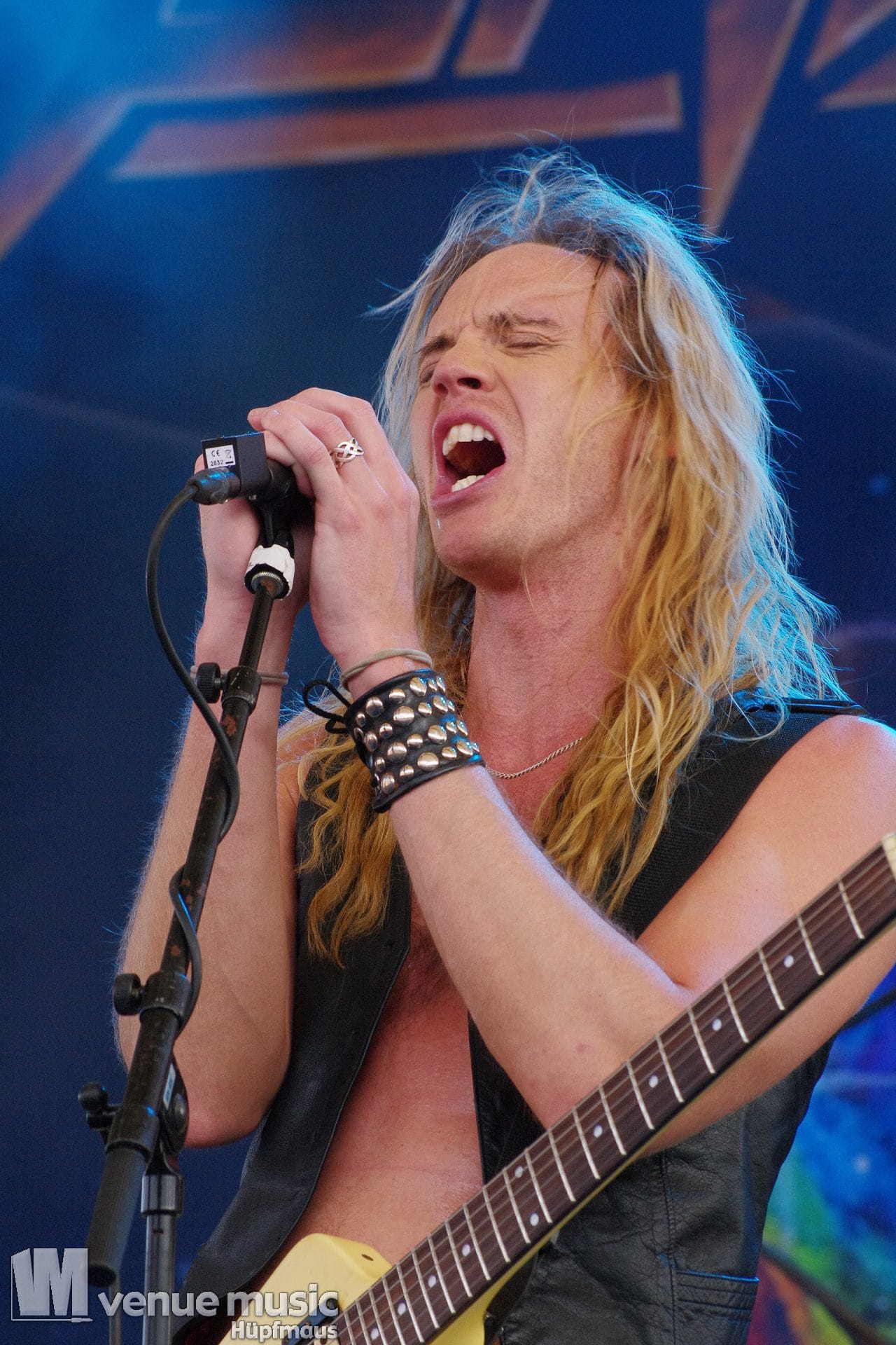 Eine weitere Band, die ich nicht auf dem Schirm hatte, waren Enforcer. Die Schweden präsentierten eine Mega-Show mit wahnsinnig viel Energie. Klamottentechnisch (und mehr) in den 90ern stehen geblieben, gabs richtig geilen Heavy/Speed-Metal auf die Ohren. Und zwar mit einer Bühnenpräsenz, die mega viel Spaß machte. Man konnte gar nicht anders, als mitzufeiern. Wem da nicht die Musik komplett durch den Körper floss, der musste entweder noch schlafen oder schon rotzevoll sein ;) Ein unerwartetes Highlight am sonnigen Sonntag Nachmittag! Vom neuen Album „Nostalgia“ gabs zwar nur den Titel „Coming Alive“, ebenso hat es nur „Zenith of the Black Sun“ der Vorgängerplatte ins Set geschafft, dafür konzentrierte sich die Band auf die etwas schnelleren Titel der früheren Werke. Coole Nummer!