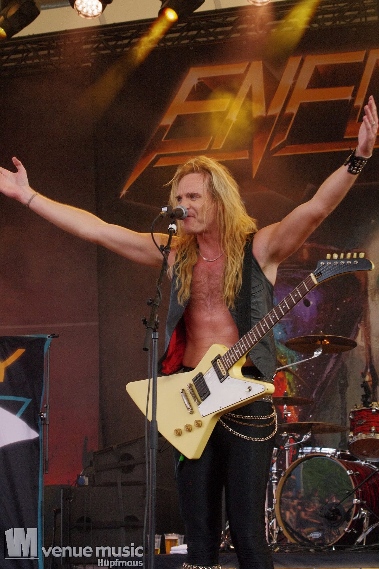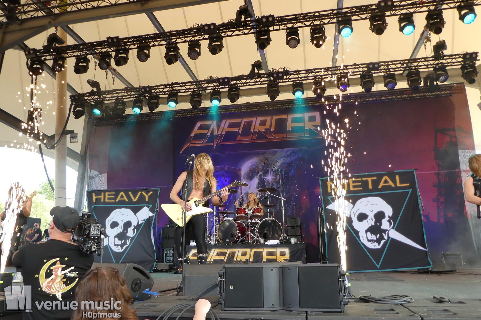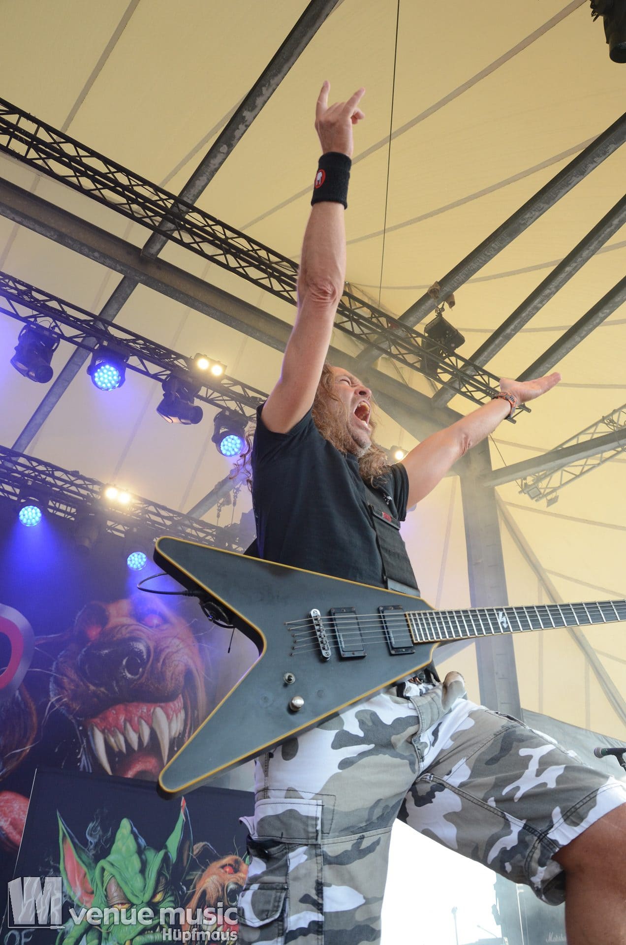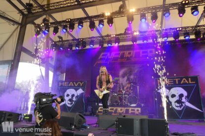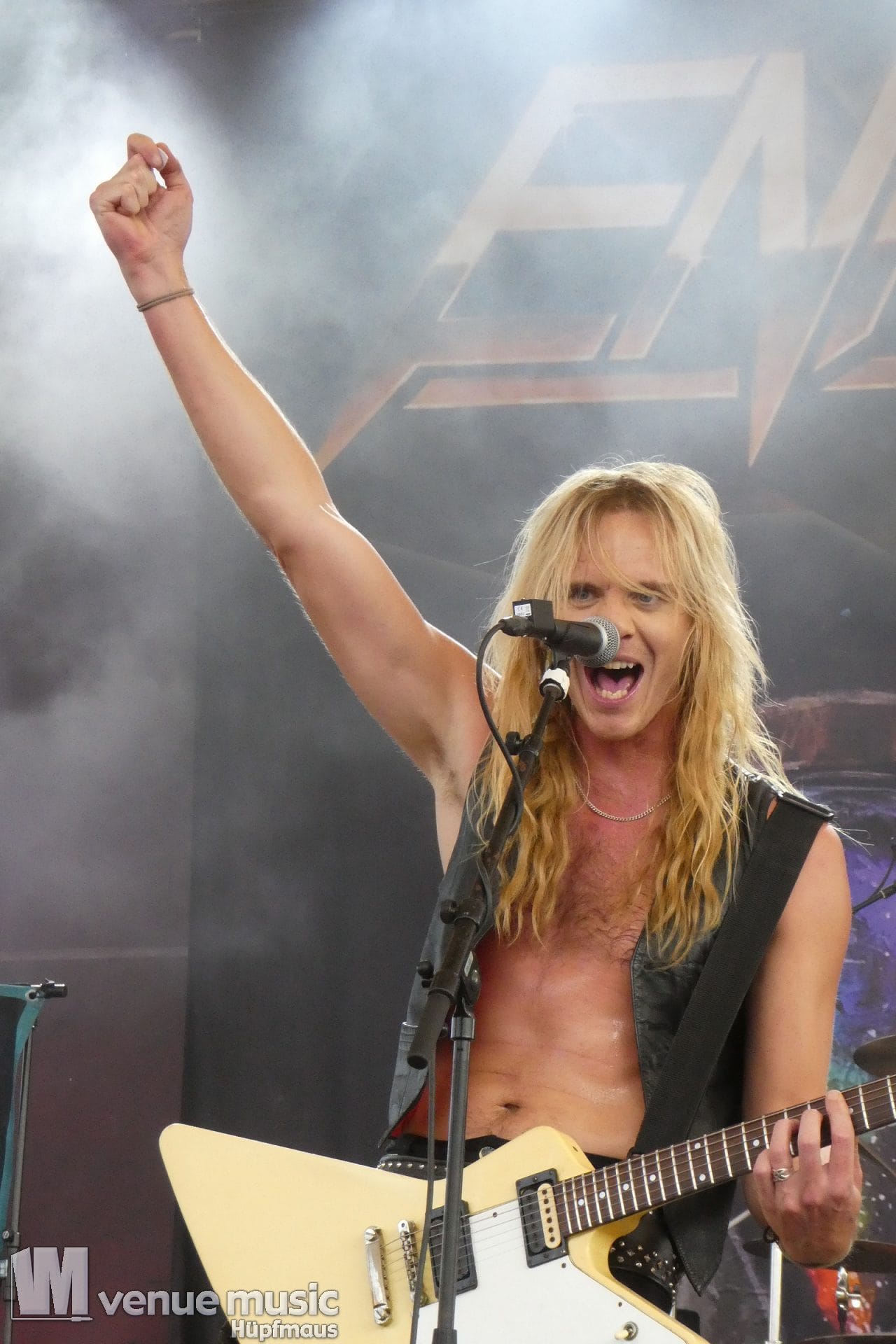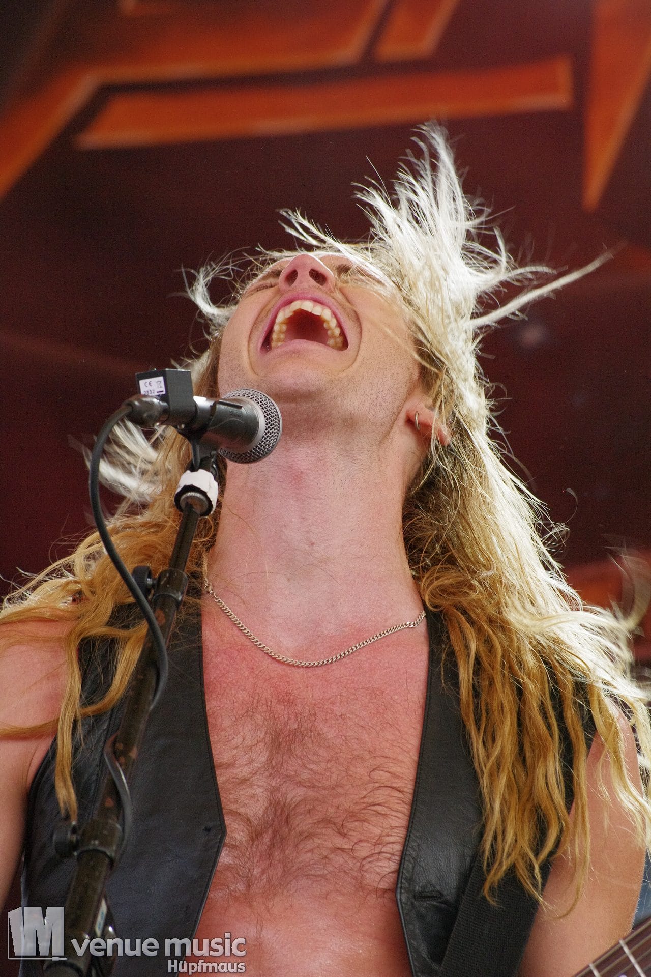 Eine weitere Band, die ich nicht auf dem Schirm hatte, waren Enforcer. Die Schweden präsentierten eine Mega-Show mit wahnsinnig viel Energie. Klamottentechnisch (und mehr) in den 90ern stehen geblieben, gabs richtig geilen Heavy/Speed-Metal auf die Ohren. Und zwar mit einer Bühnenpräsenz, die mega viel Spaß machte. Man konnte gar nicht anders, als mitzufeiern. Wem da nicht die Musik komplett durch den Körper floss, der musste entweder noch schlafen oder schon rotzevoll sein ;) Ein unerwartetes Highlight am sonnigen Sonntag Nachmittag! Vom neuen Album „Nostalgia“ gabs zwar nur den Titel „Coming Alive“, ebenso hat es nur „Zenith of the Black Sun“ der Vorgängerplatte ins Set geschafft, dafür konzentrierte sich die Band auf die etwas schnelleren Titel der früheren Werke. Coole Nummer!