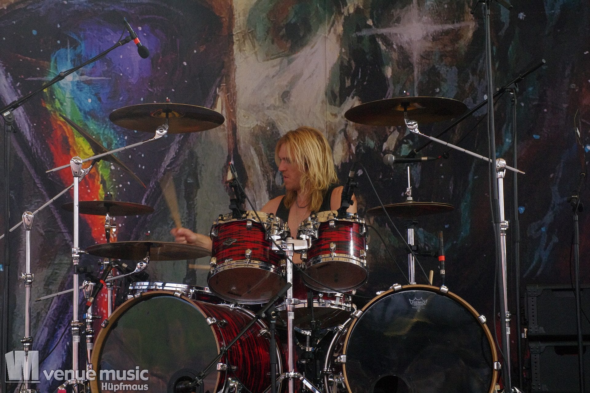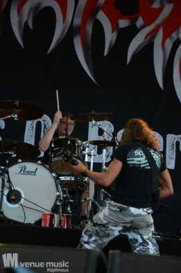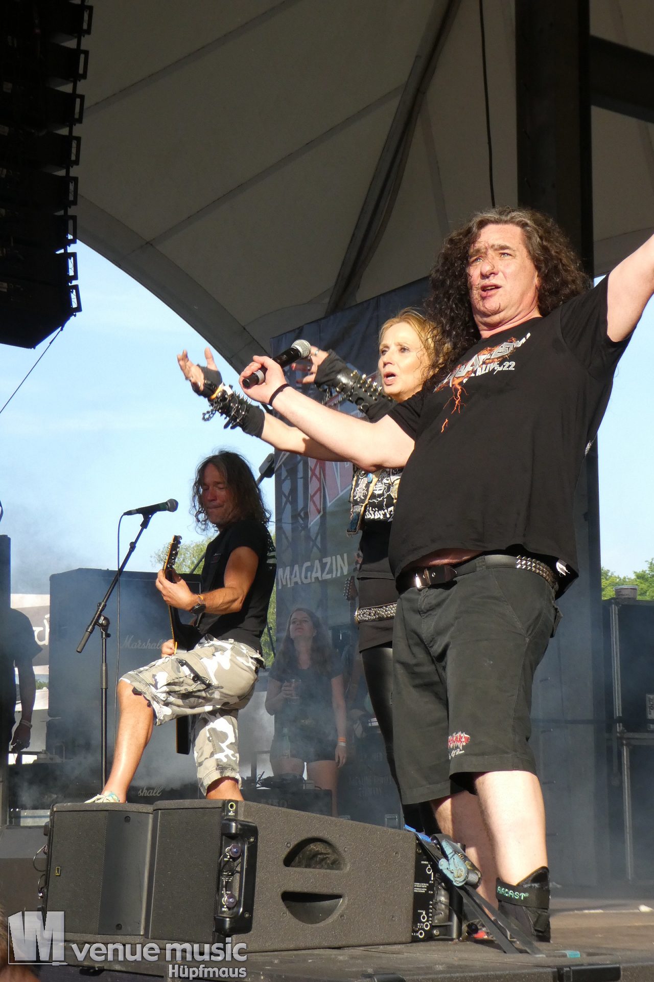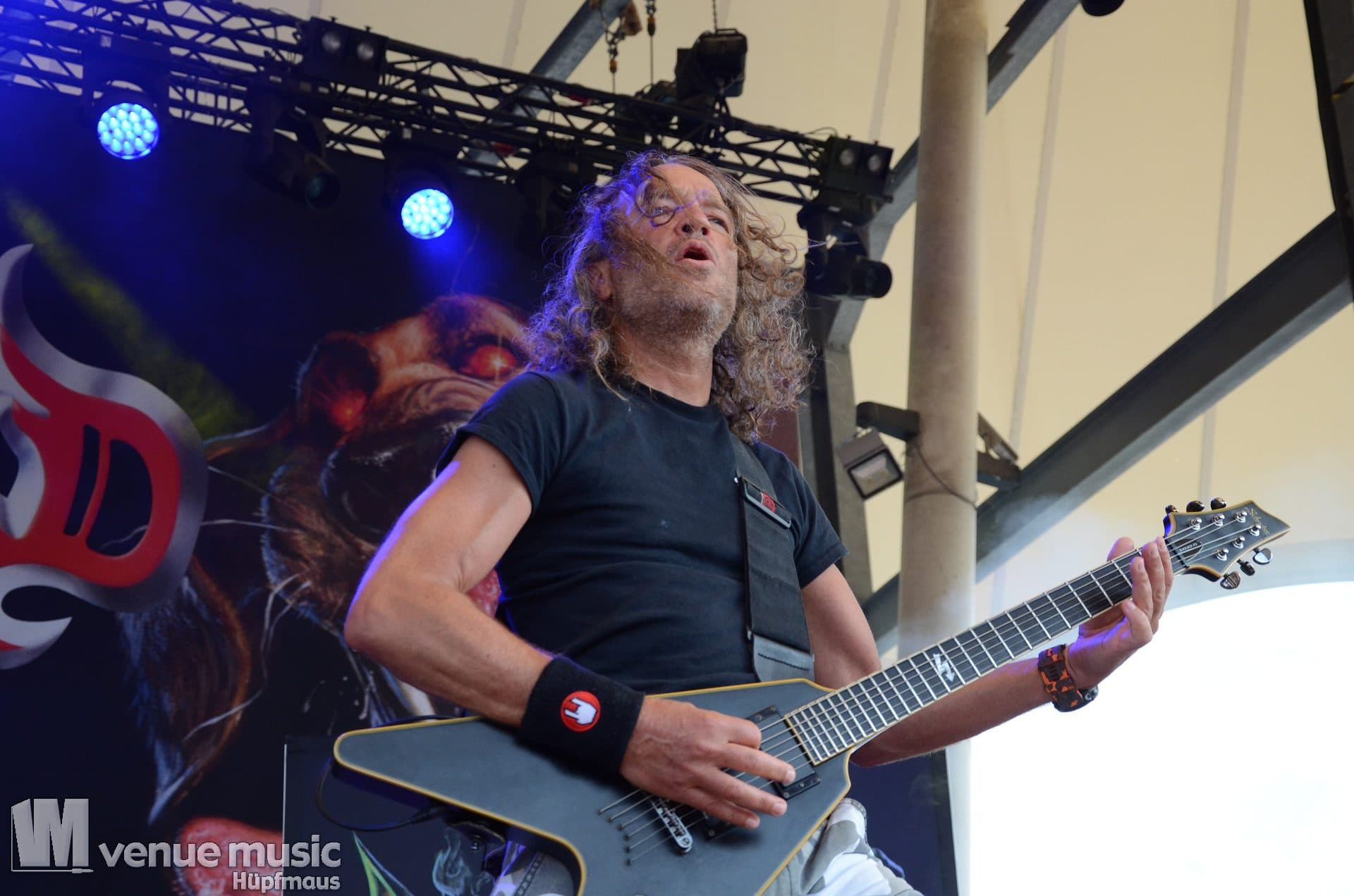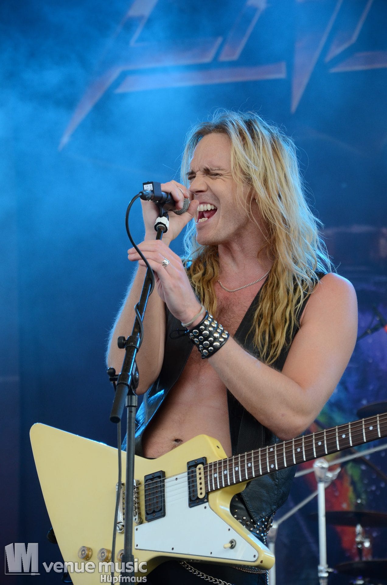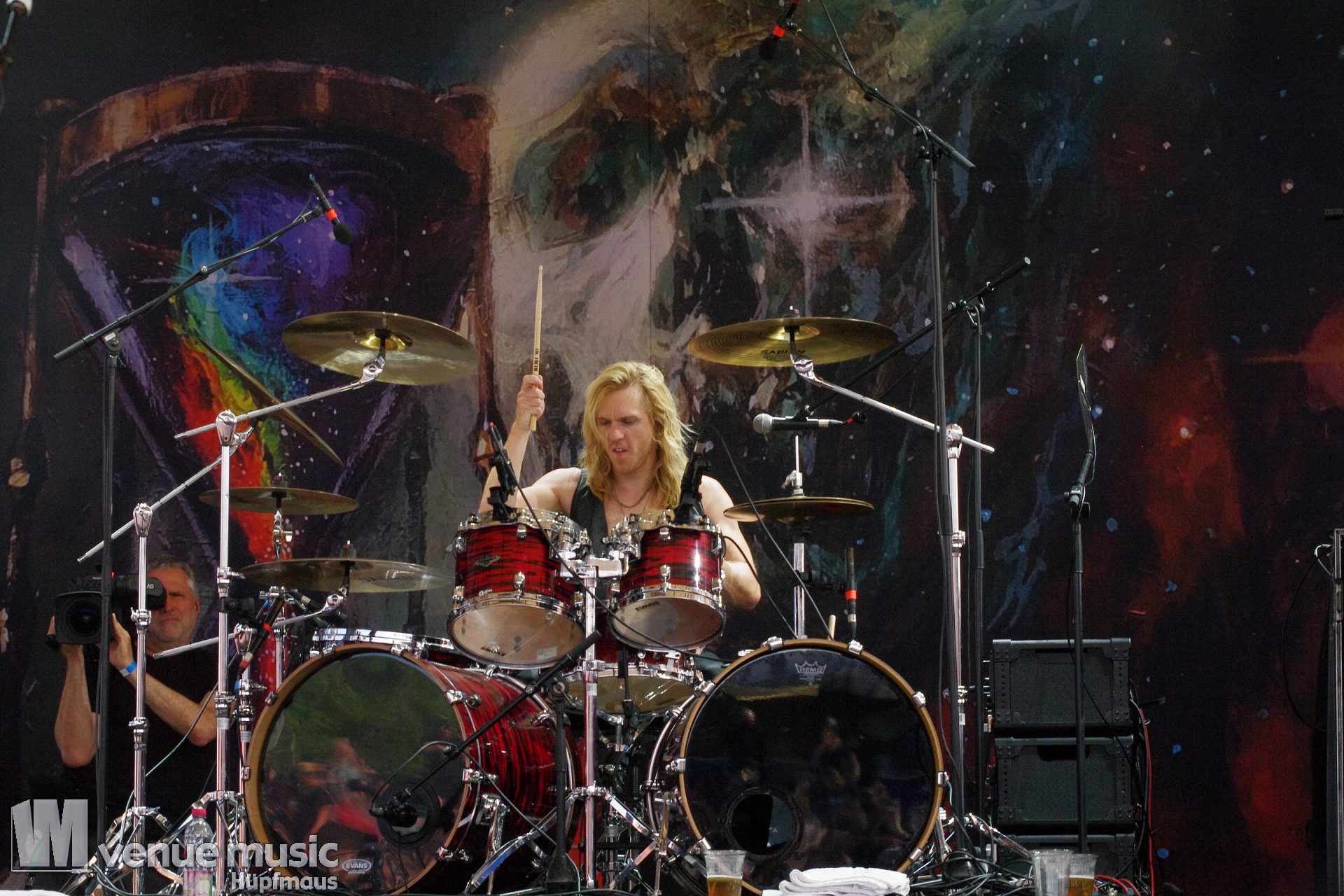 Eine weitere Band, die ich nicht auf dem Schirm hatte, waren Enforcer. Die Schweden präsentierten eine Mega-Show mit wahnsinnig viel Energie. Klamottentechnisch (und mehr) in den 90ern stehen geblieben, gabs richtig geilen Heavy/Speed-Metal auf die Ohren. Und zwar mit einer Bühnenpräsenz, die mega viel Spaß machte. Man konnte gar nicht anders, als mitzufeiern. Wem da nicht die Musik komplett durch den Körper floss, der musste entweder noch schlafen oder schon rotzevoll sein ;) Ein unerwartetes Highlight am sonnigen Sonntag Nachmittag! Vom neuen Album „Nostalgia“ gabs zwar nur den Titel „Coming Alive“, ebenso hat es nur „Zenith of the Black Sun“ der Vorgängerplatte ins Set geschafft, dafür konzentrierte sich die Band auf die etwas schnelleren Titel der früheren Werke. Coole Nummer!