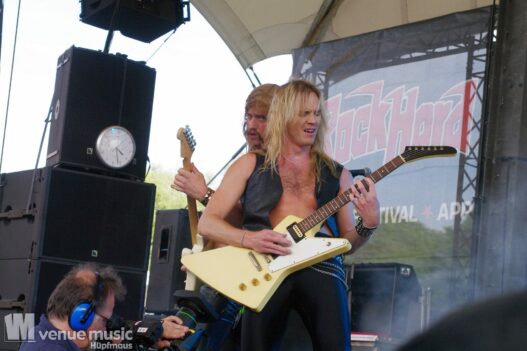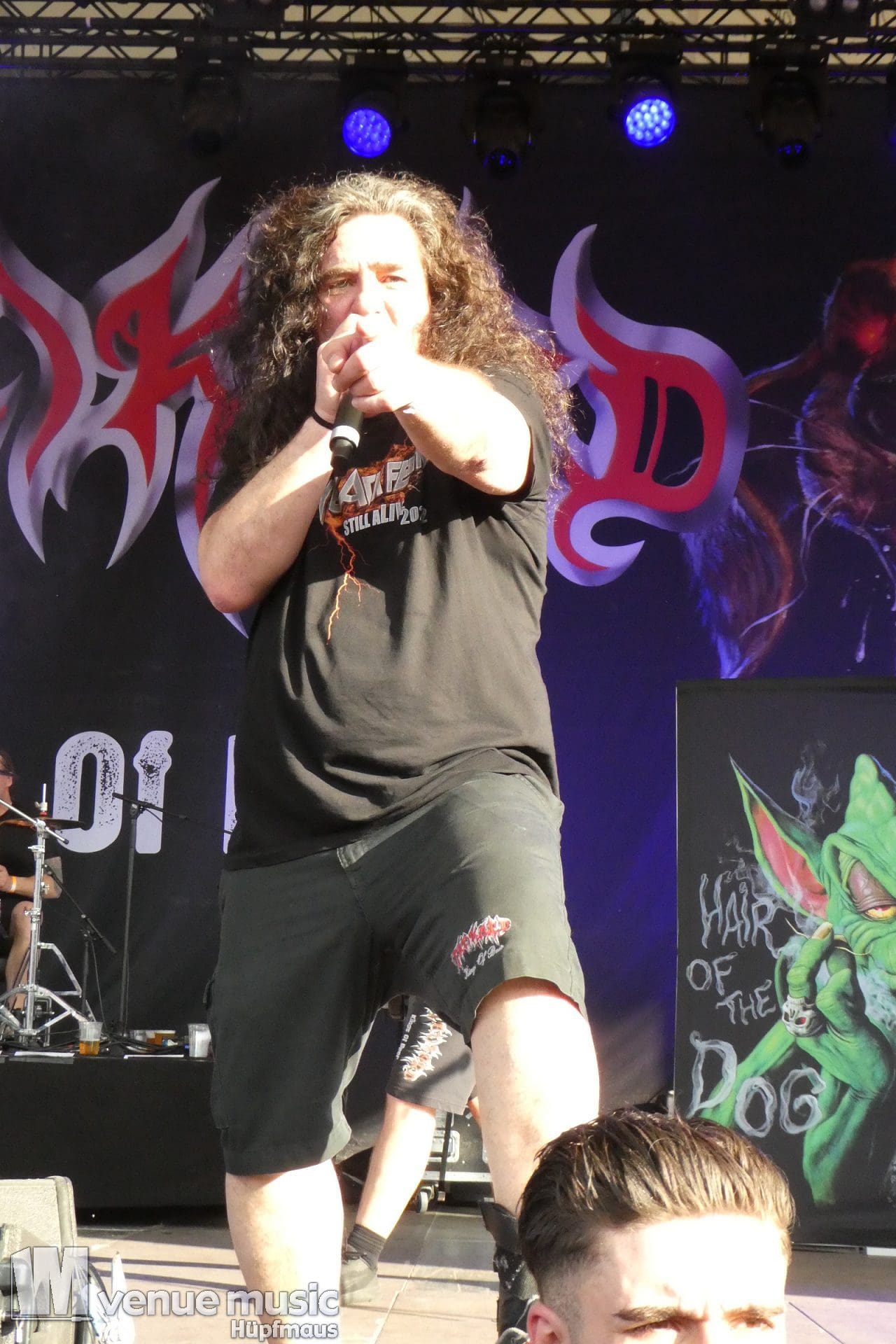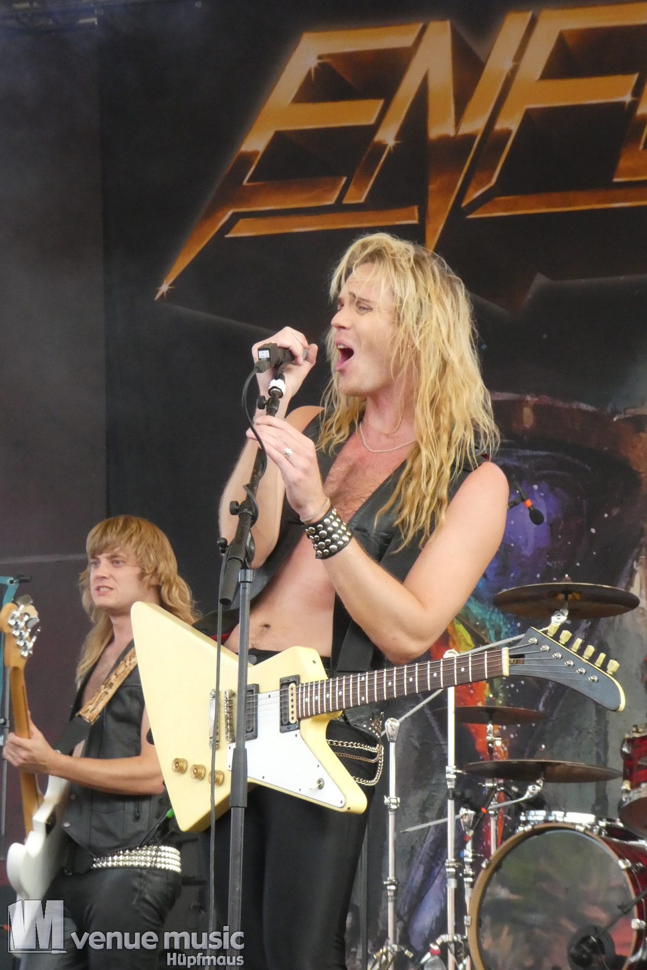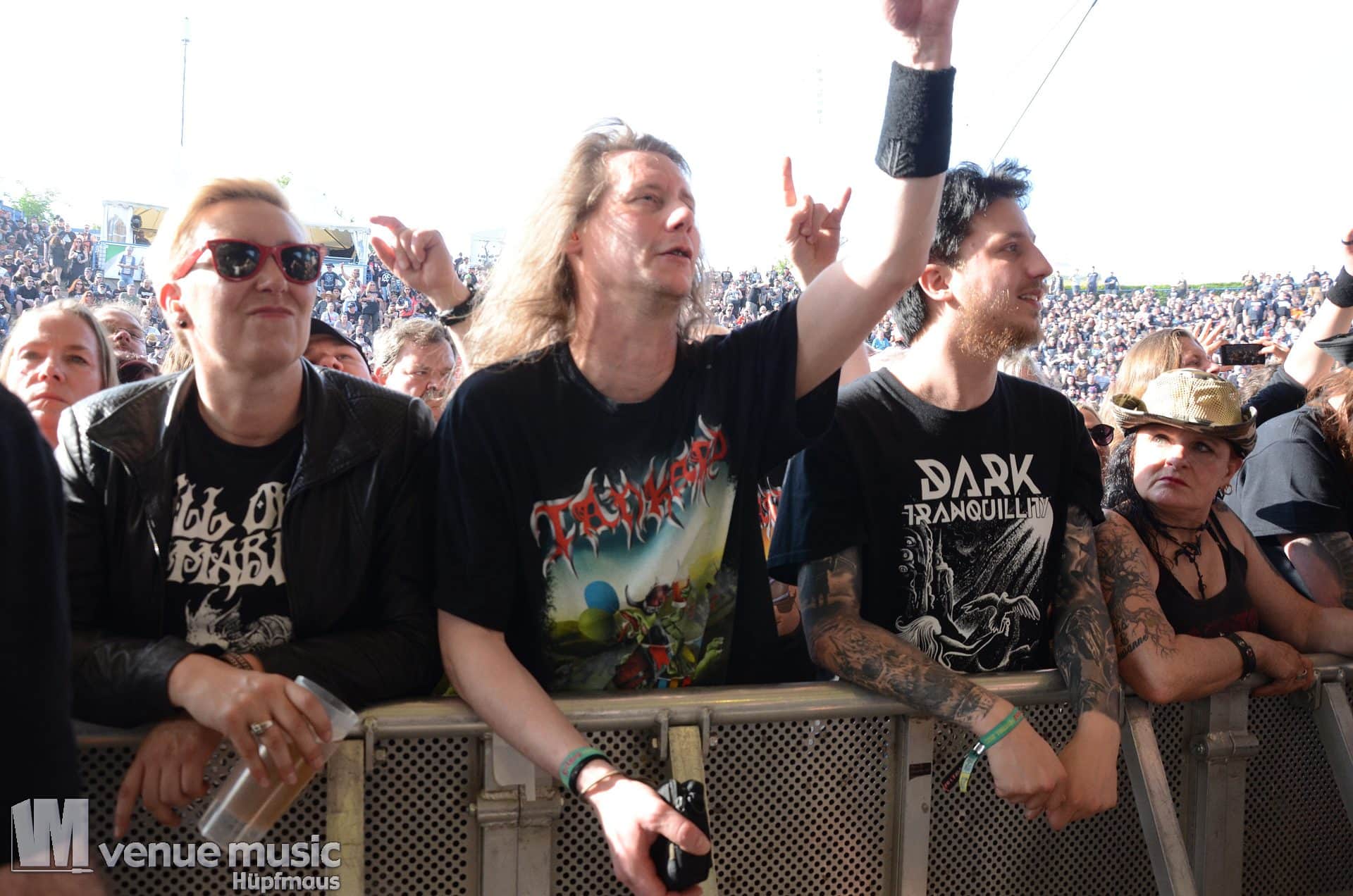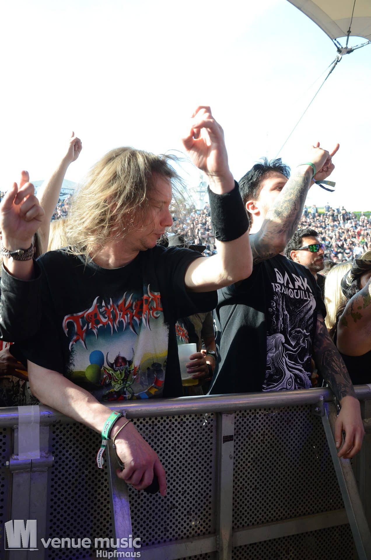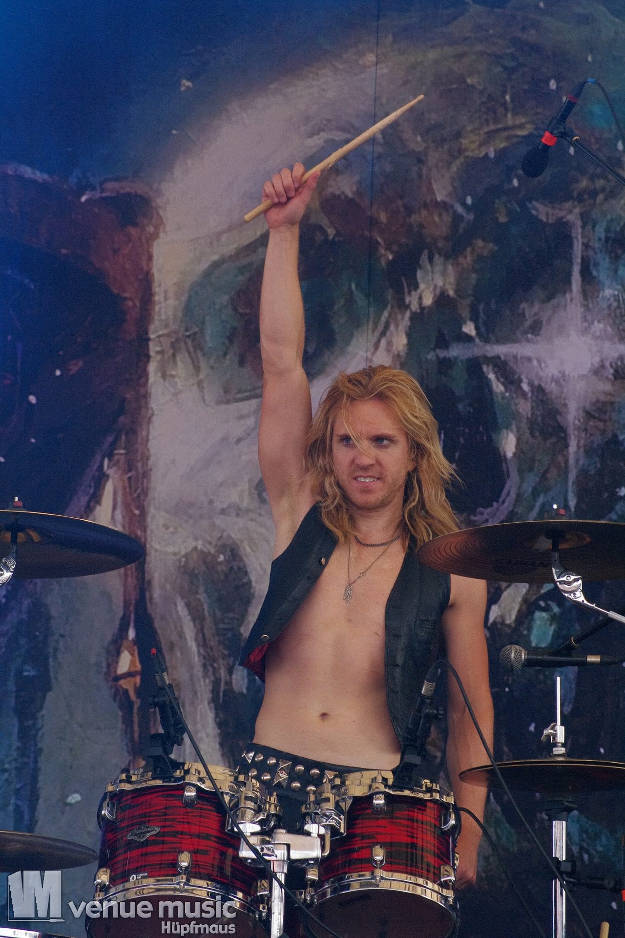 Eine weitere Band, die ich nicht auf dem Schirm hatte, waren Enforcer. Die Schweden präsentierten eine Mega-Show mit wahnsinnig viel Energie. Klamottentechnisch (und mehr) in den 90ern stehen geblieben, gabs richtig geilen Heavy/Speed-Metal auf die Ohren. Und zwar mit einer Bühnenpräsenz, die mega viel Spaß machte. Man konnte gar nicht anders, als mitzufeiern. Wem da nicht die Musik komplett durch den Körper floss, der musste entweder noch schlafen oder schon rotzevoll sein ;) Ein unerwartetes Highlight am sonnigen Sonntag Nachmittag! Vom neuen Album „Nostalgia“ gabs zwar nur den Titel „Coming Alive“, ebenso hat es nur „Zenith of the Black Sun“ der Vorgängerplatte ins Set geschafft, dafür konzentrierte sich die Band auf die etwas schnelleren Titel der früheren Werke. Coole Nummer!