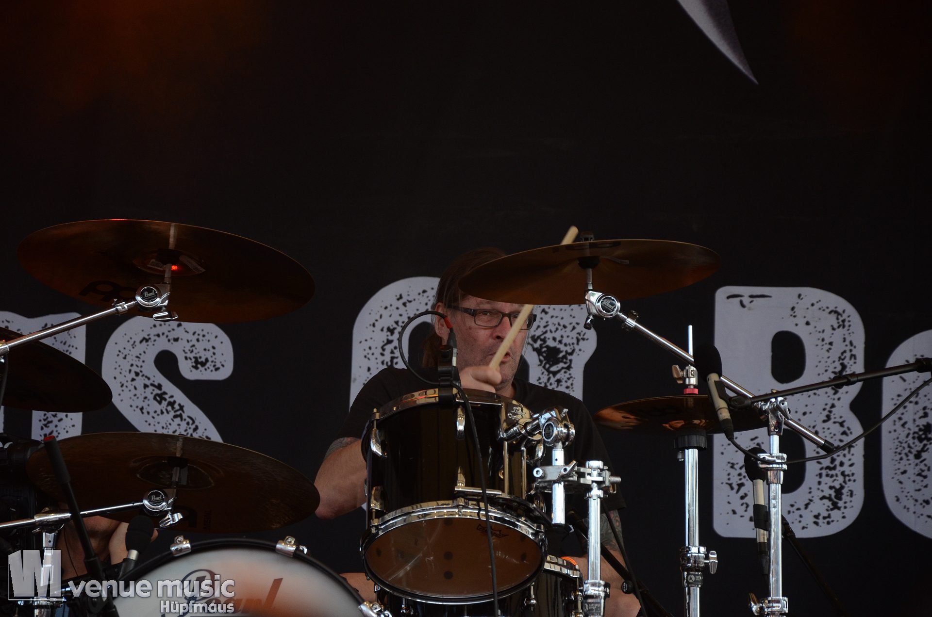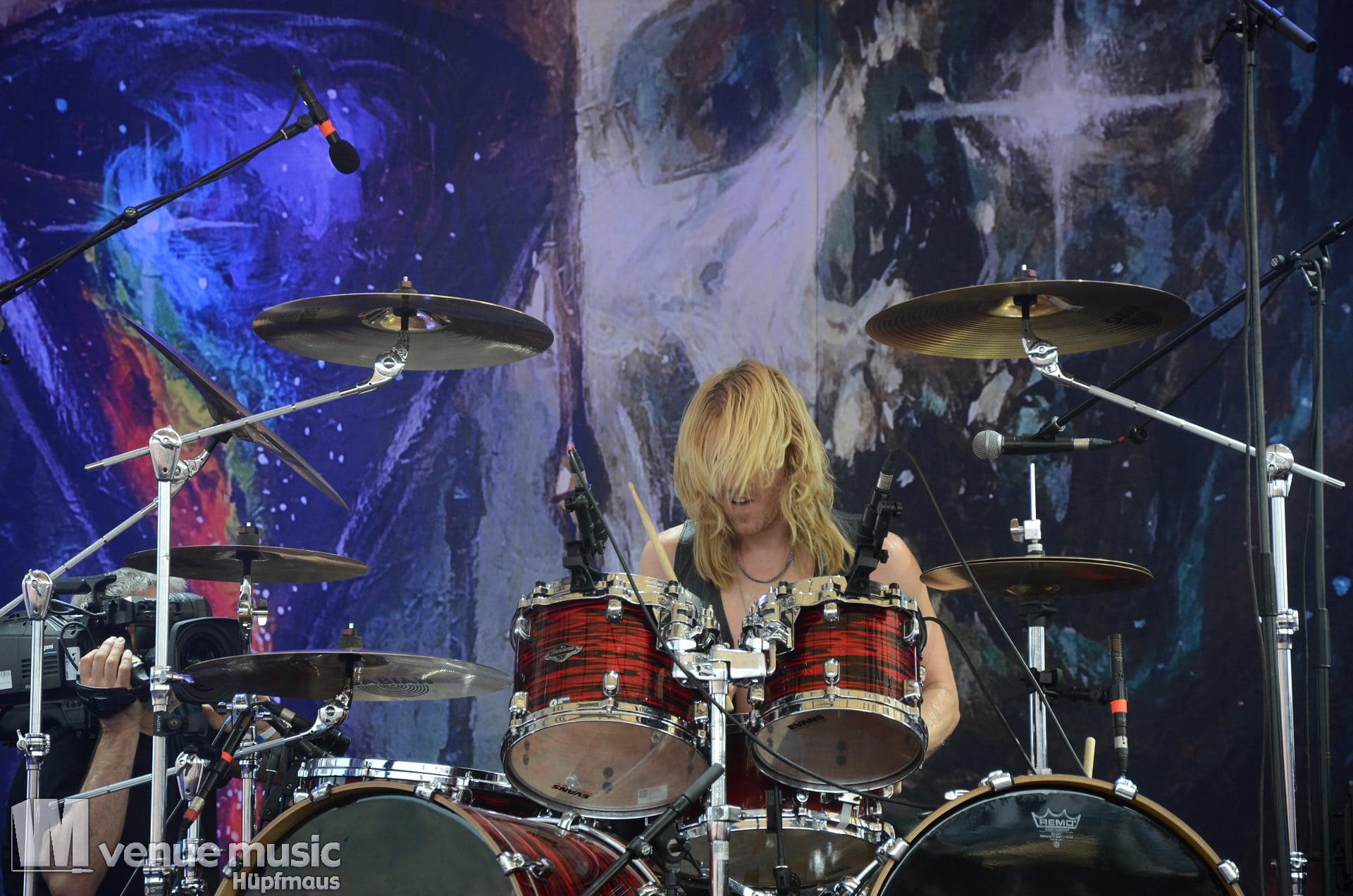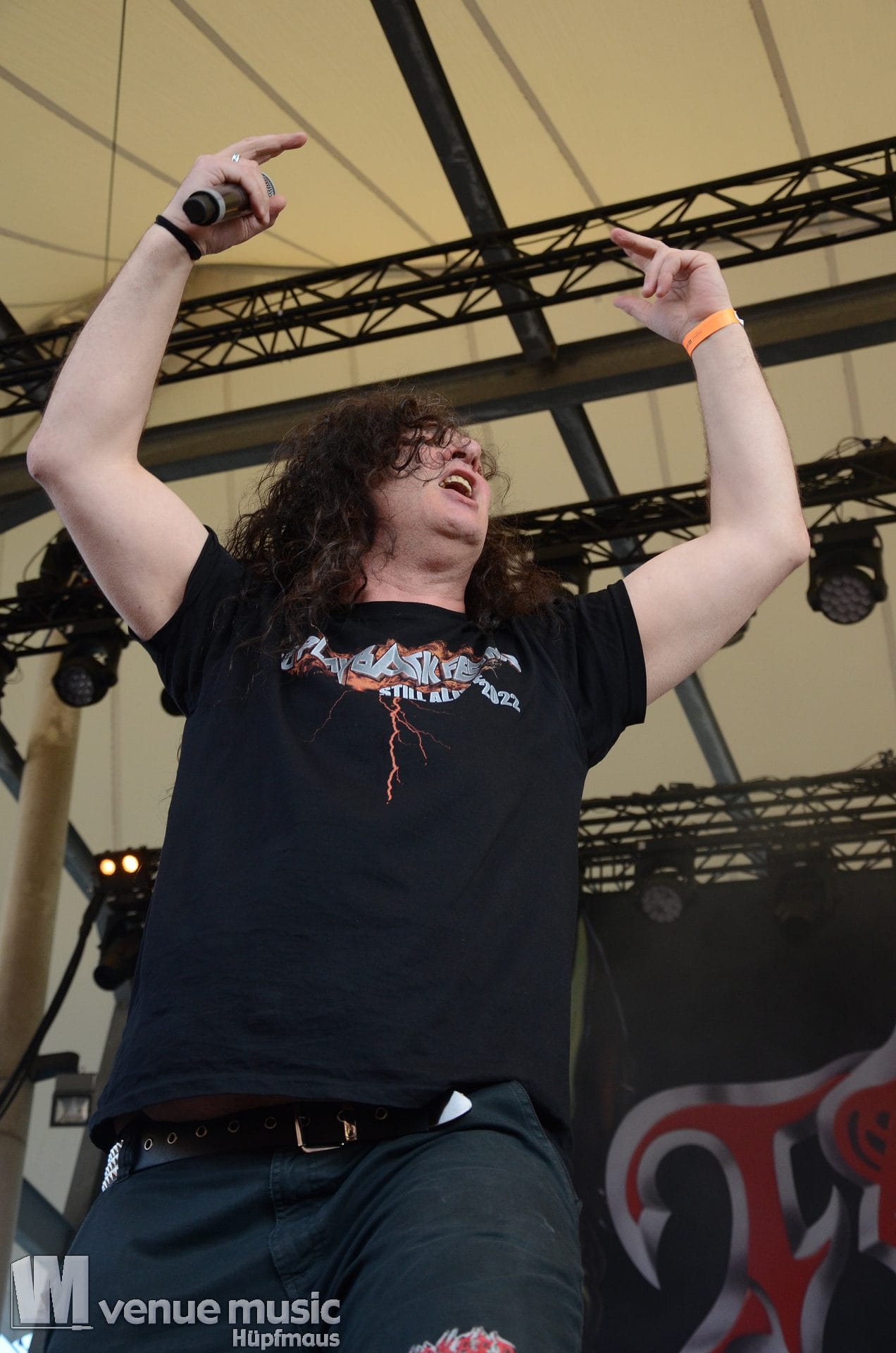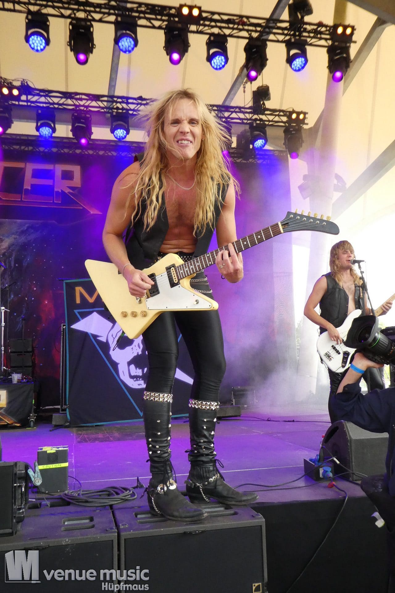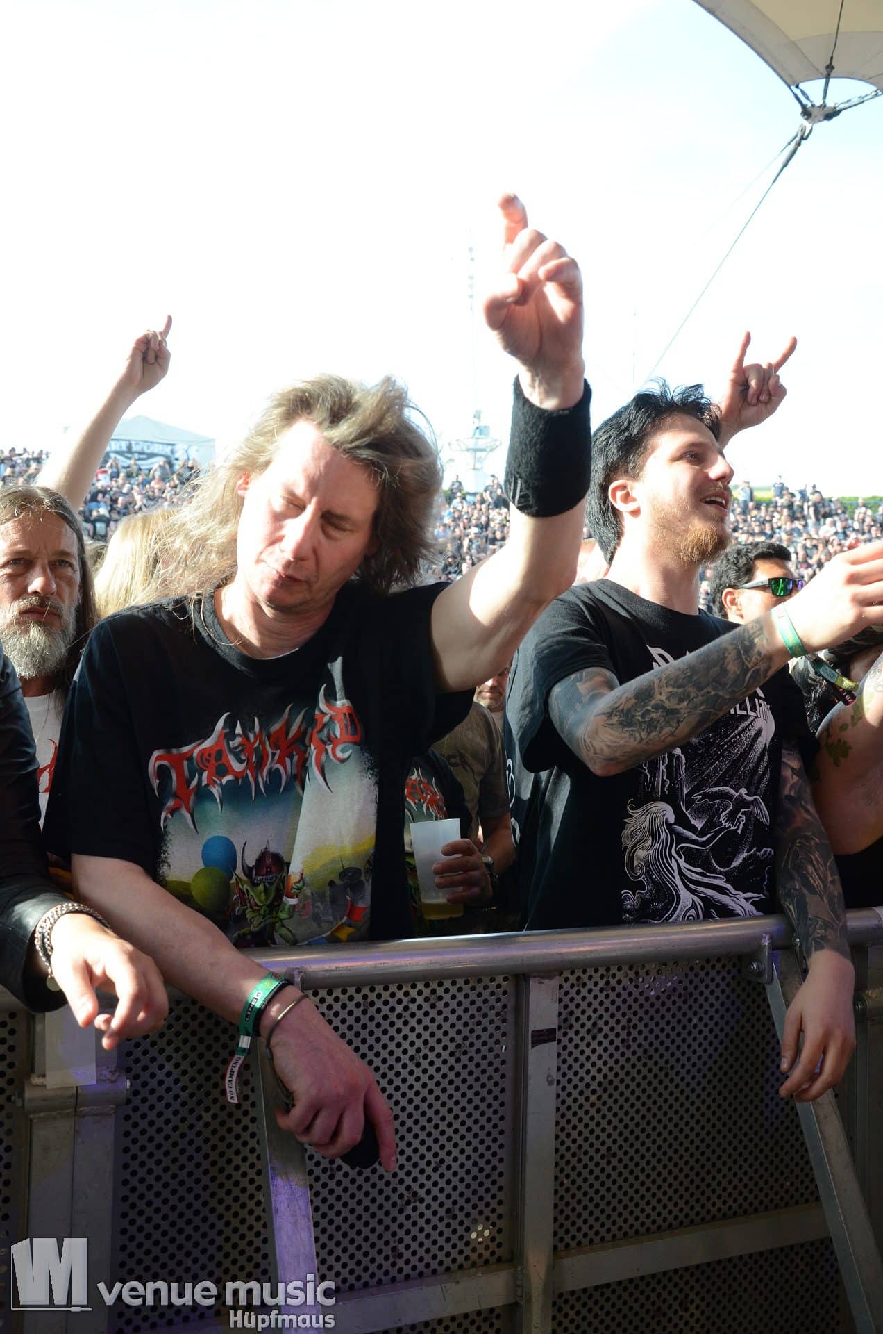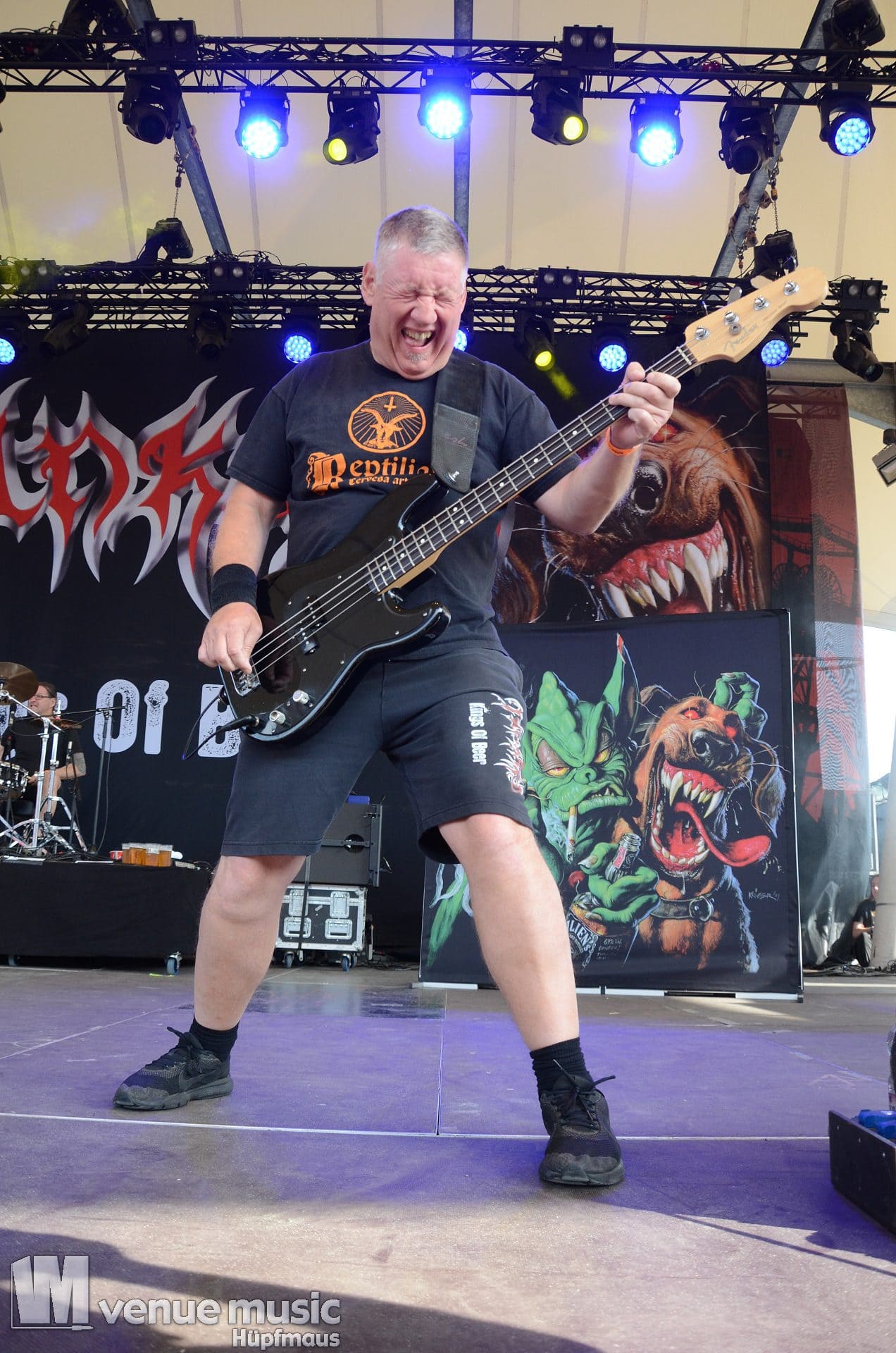 Eine weitere Band, die ich nicht auf dem Schirm hatte, waren Enforcer. Die Schweden präsentierten eine Mega-Show mit wahnsinnig viel Energie. Klamottentechnisch (und mehr) in den 90ern stehen geblieben, gabs richtig geilen Heavy/Speed-Metal auf die Ohren. Und zwar mit einer Bühnenpräsenz, die mega viel Spaß machte. Man konnte gar nicht anders, als mitzufeiern. Wem da nicht die Musik komplett durch den Körper floss, der musste entweder noch schlafen oder schon rotzevoll sein ;) Ein unerwartetes Highlight am sonnigen Sonntag Nachmittag! Vom neuen Album „Nostalgia“ gabs zwar nur den Titel „Coming Alive“, ebenso hat es nur „Zenith of the Black Sun“ der Vorgängerplatte ins Set geschafft, dafür konzentrierte sich die Band auf die etwas schnelleren Titel der früheren Werke. Coole Nummer!