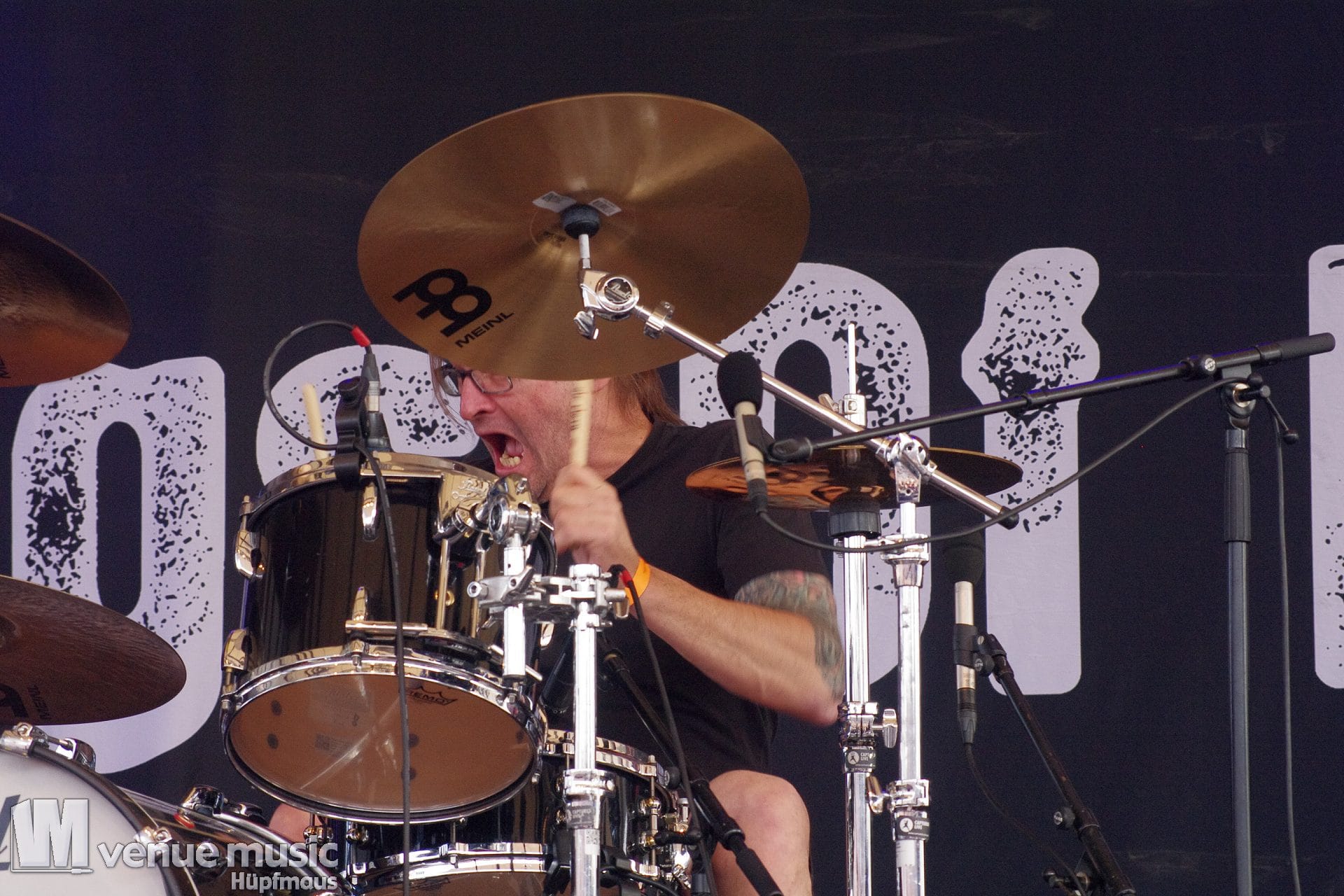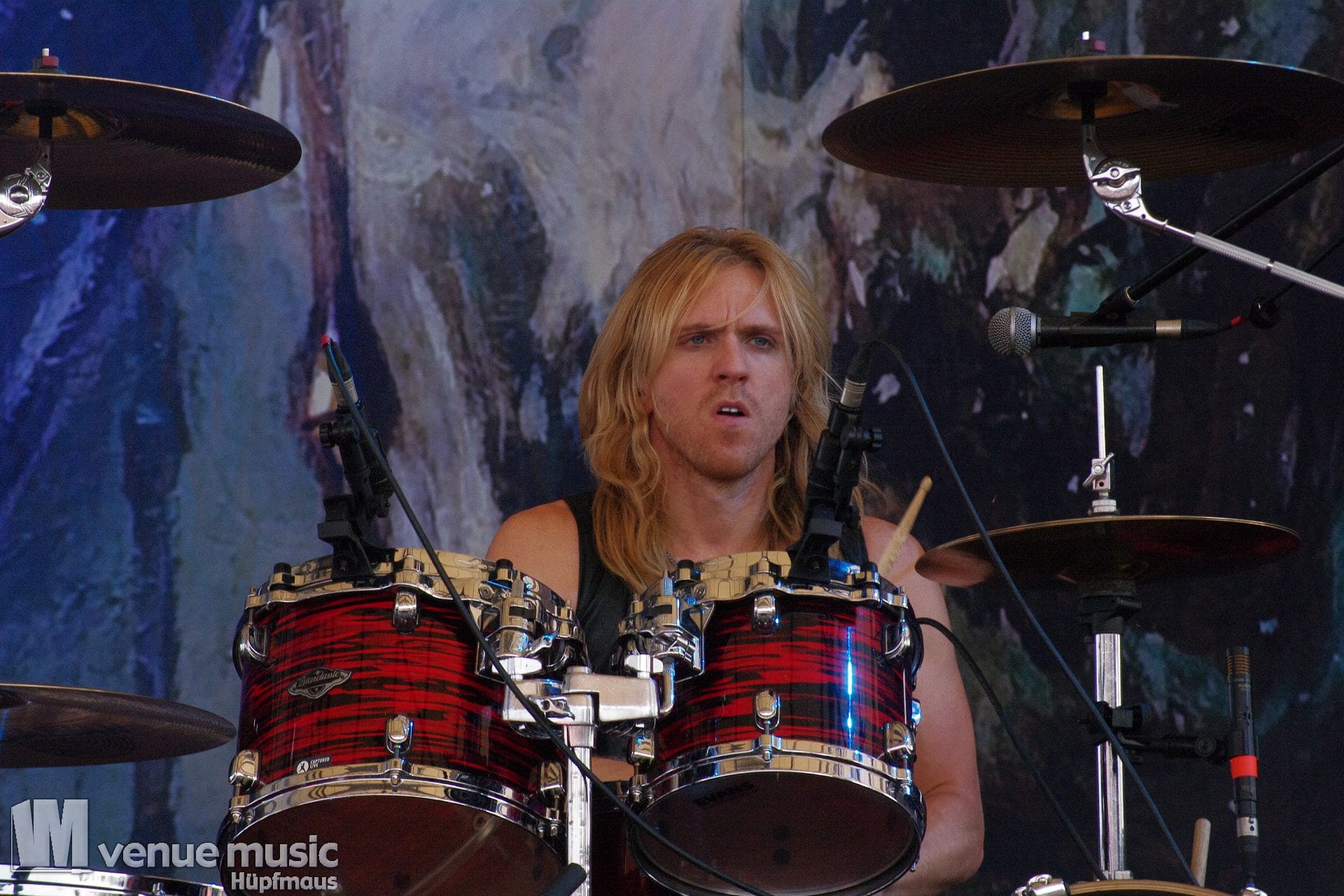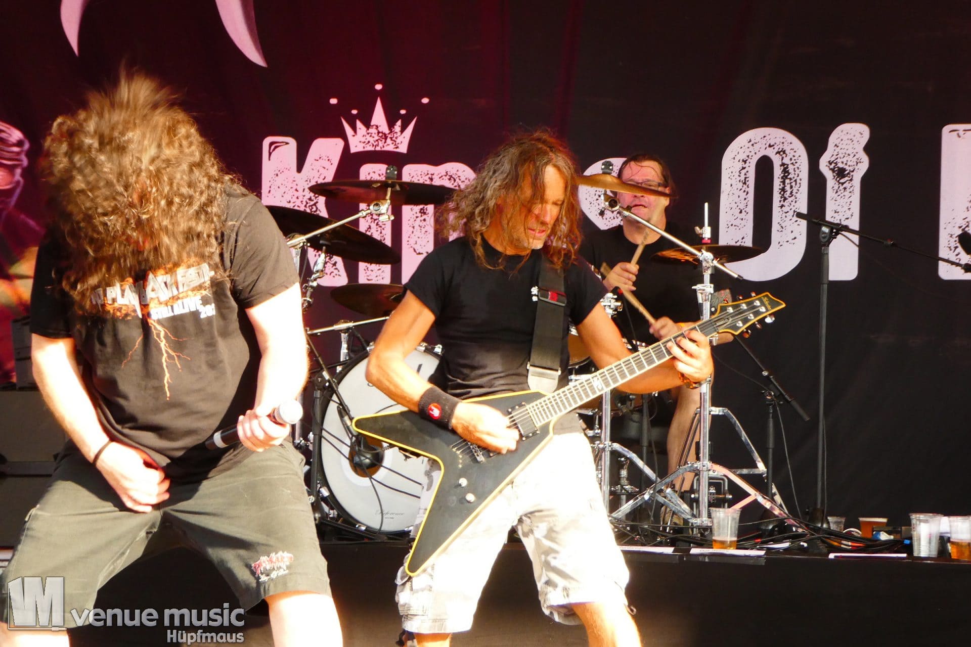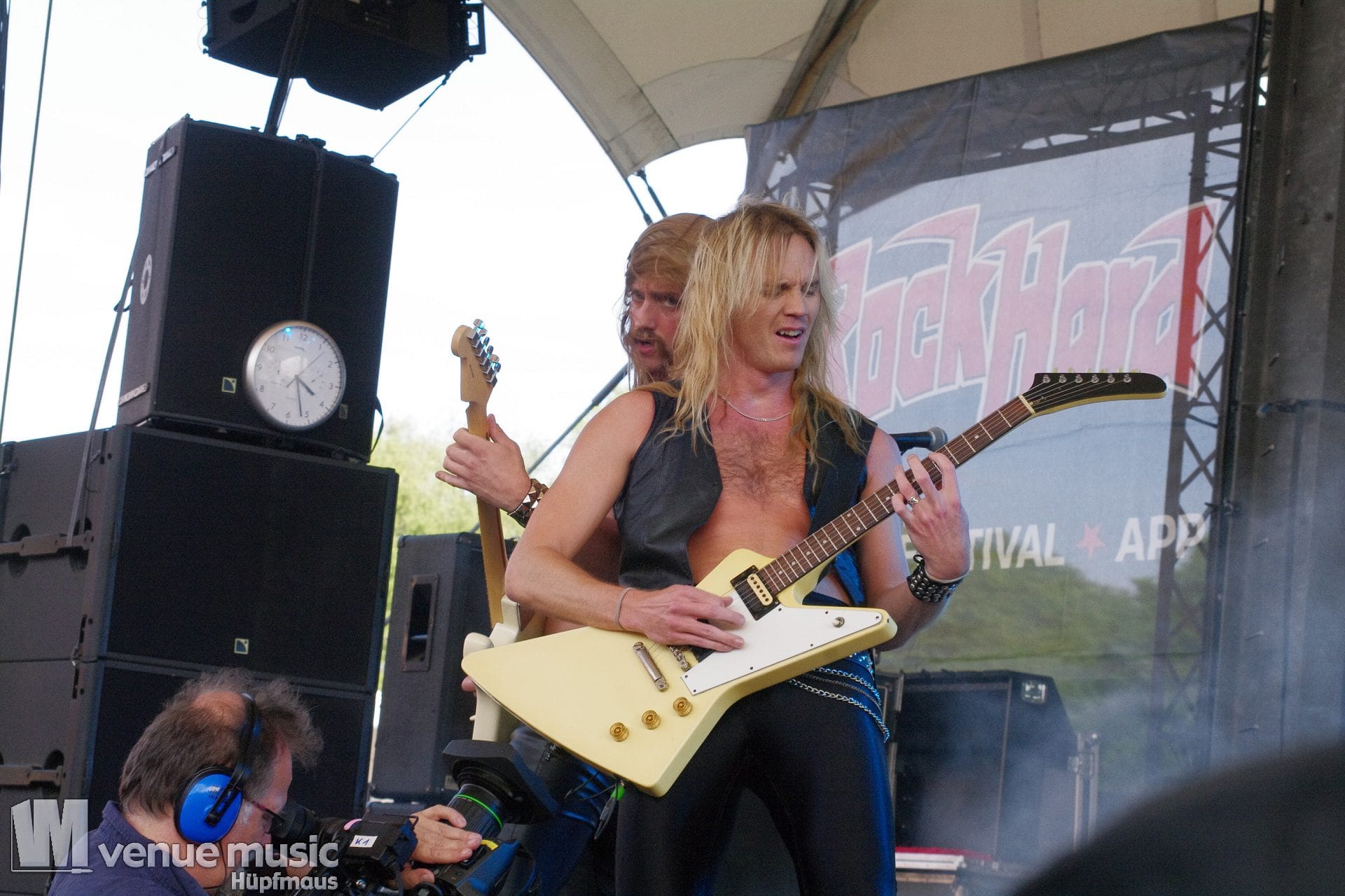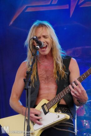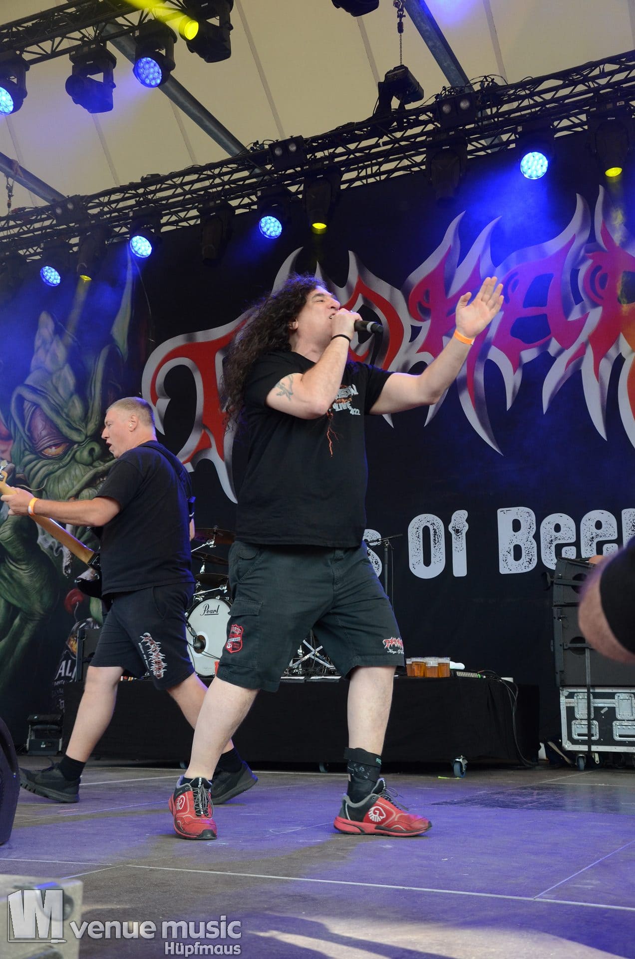 Eine weitere Band, die ich nicht auf dem Schirm hatte, waren Enforcer. Die Schweden präsentierten eine Mega-Show mit wahnsinnig viel Energie. Klamottentechnisch (und mehr) in den 90ern stehen geblieben, gabs richtig geilen Heavy/Speed-Metal auf die Ohren. Und zwar mit einer Bühnenpräsenz, die mega viel Spaß machte. Man konnte gar nicht anders, als mitzufeiern. Wem da nicht die Musik komplett durch den Körper floss, der musste entweder noch schlafen oder schon rotzevoll sein ;) Ein unerwartetes Highlight am sonnigen Sonntag Nachmittag! Vom neuen Album „Nostalgia“ gabs zwar nur den Titel „Coming Alive“, ebenso hat es nur „Zenith of the Black Sun“ der Vorgängerplatte ins Set geschafft, dafür konzentrierte sich die Band auf die etwas schnelleren Titel der früheren Werke. Coole Nummer!