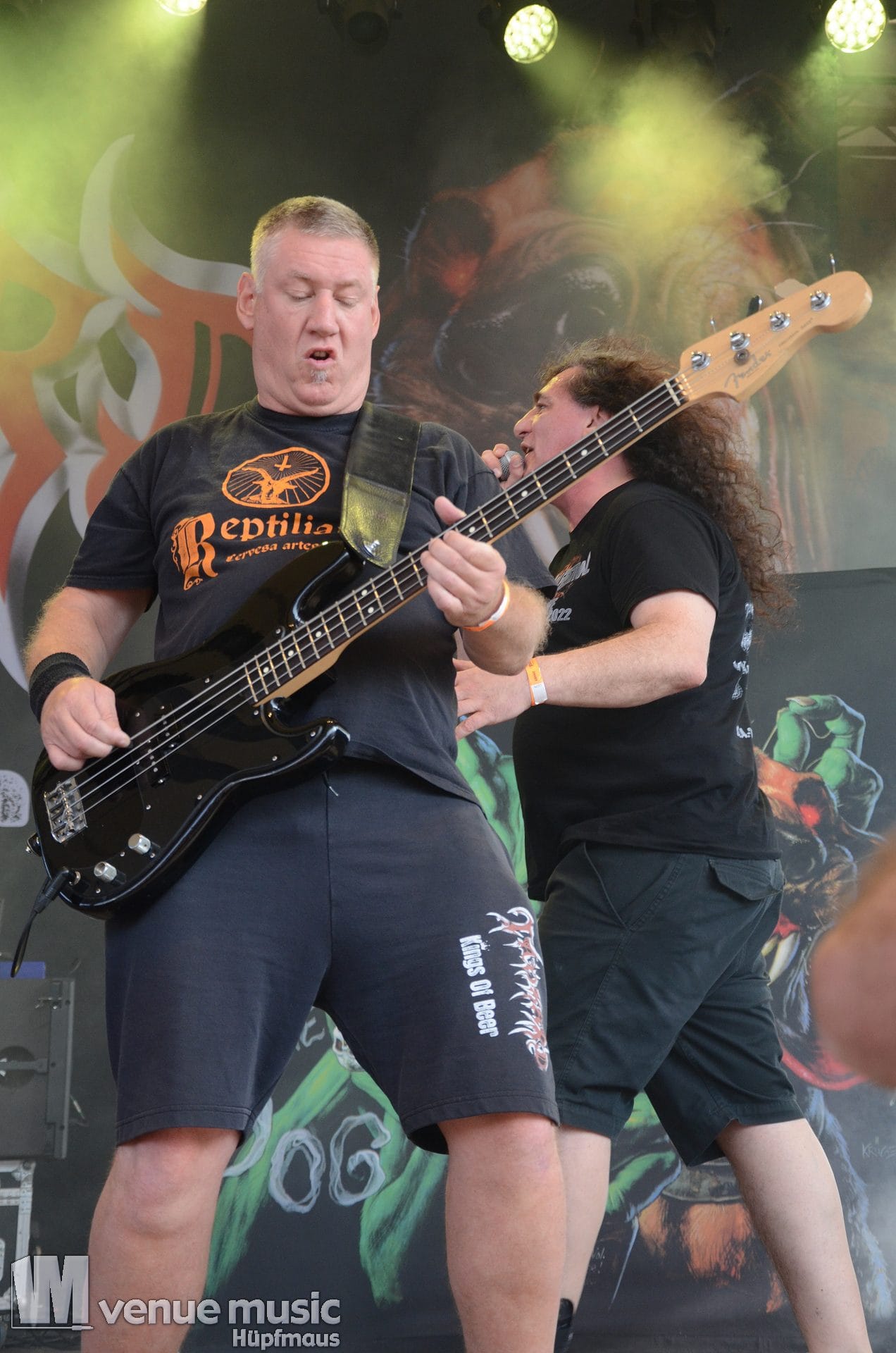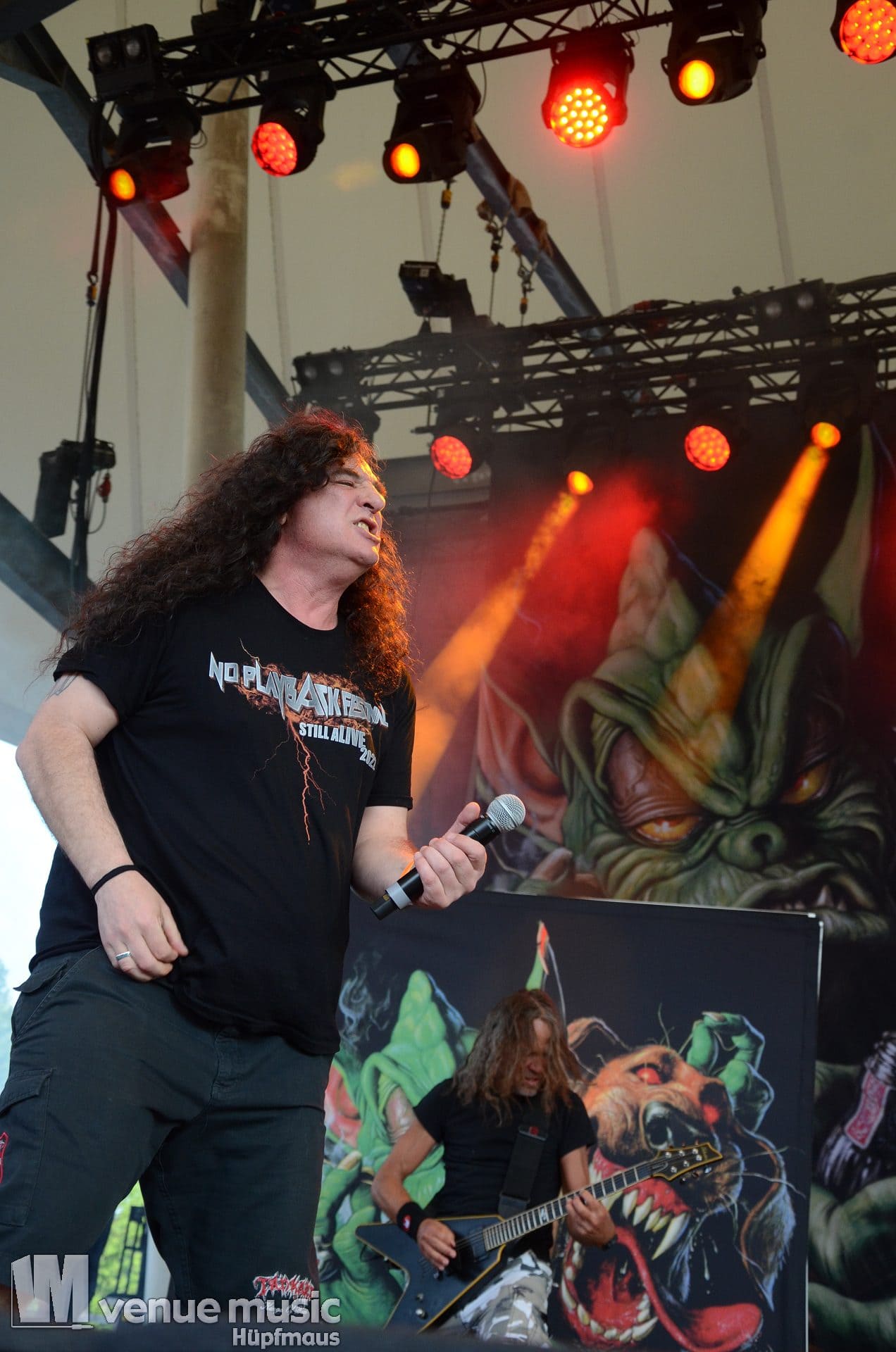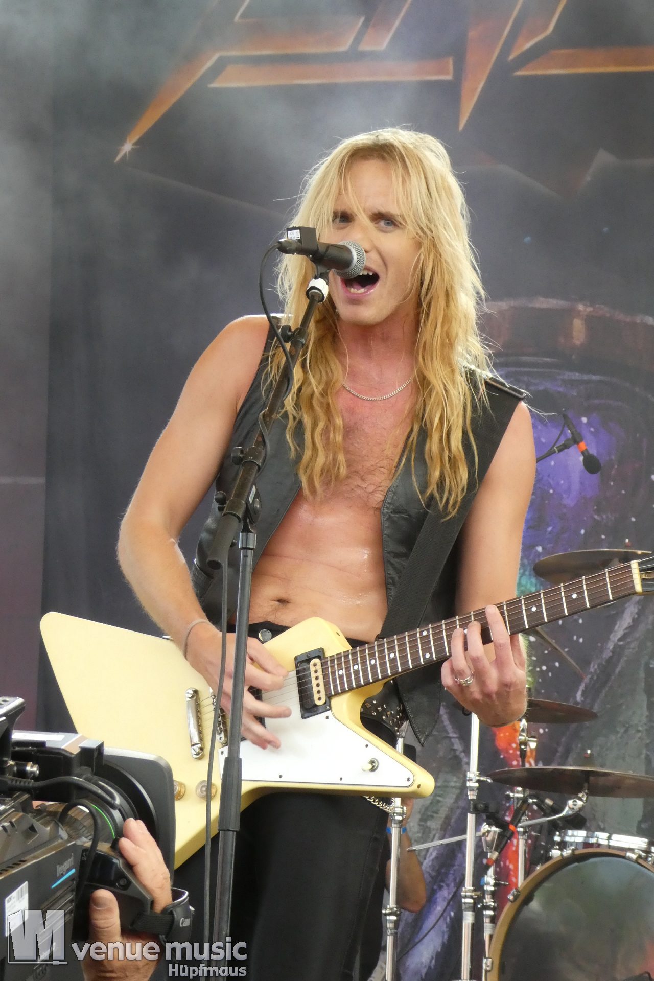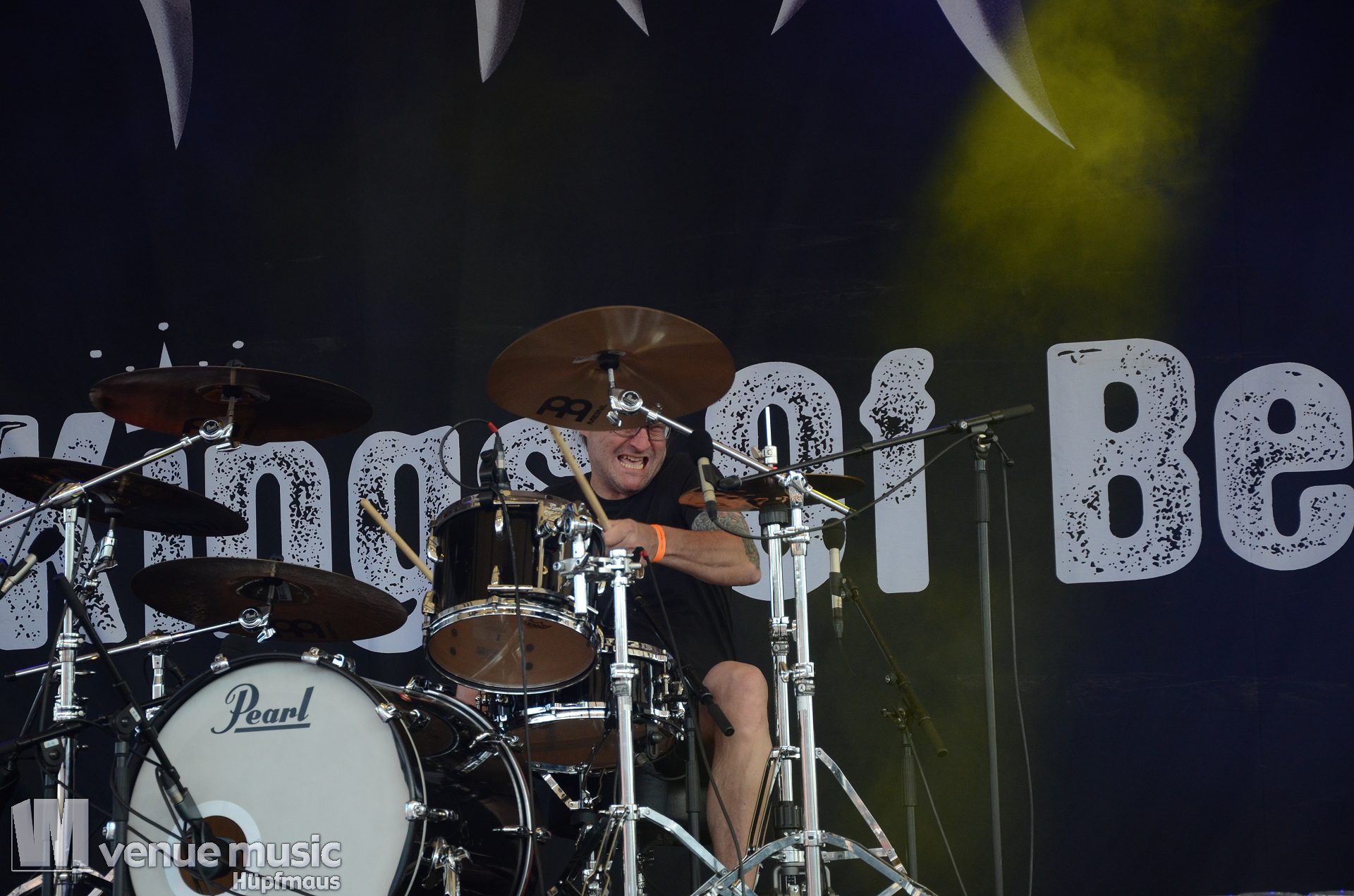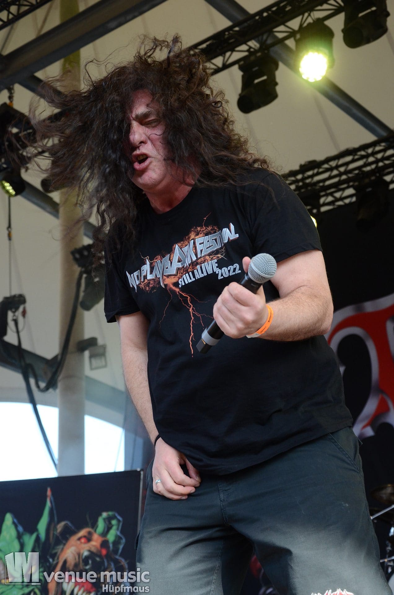 Eine weitere Band, die ich nicht auf dem Schirm hatte, waren Enforcer. Die Schweden präsentierten eine Mega-Show mit wahnsinnig viel Energie. Klamottentechnisch (und mehr) in den 90ern stehen geblieben, gabs richtig geilen Heavy/Speed-Metal auf die Ohren. Und zwar mit einer Bühnenpräsenz, die mega viel Spaß machte. Man konnte gar nicht anders, als mitzufeiern. Wem da nicht die Musik komplett durch den Körper floss, der musste entweder noch schlafen oder schon rotzevoll sein ;) Ein unerwartetes Highlight am sonnigen Sonntag Nachmittag! Vom neuen Album „Nostalgia“ gabs zwar nur den Titel „Coming Alive“, ebenso hat es nur „Zenith of the Black Sun“ der Vorgängerplatte ins Set geschafft, dafür konzentrierte sich die Band auf die etwas schnelleren Titel der früheren Werke. Coole Nummer!