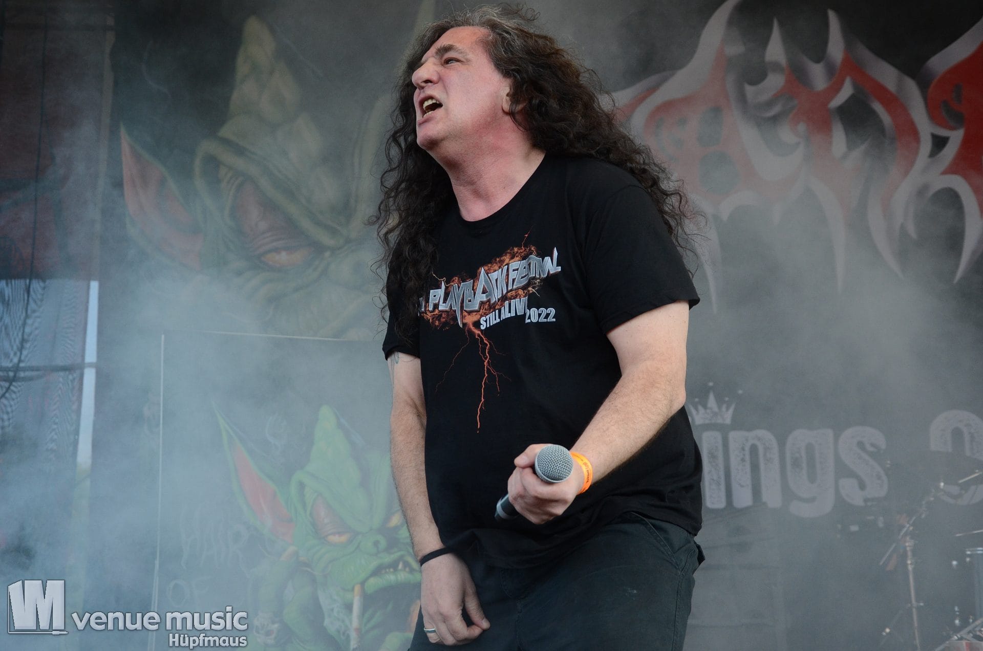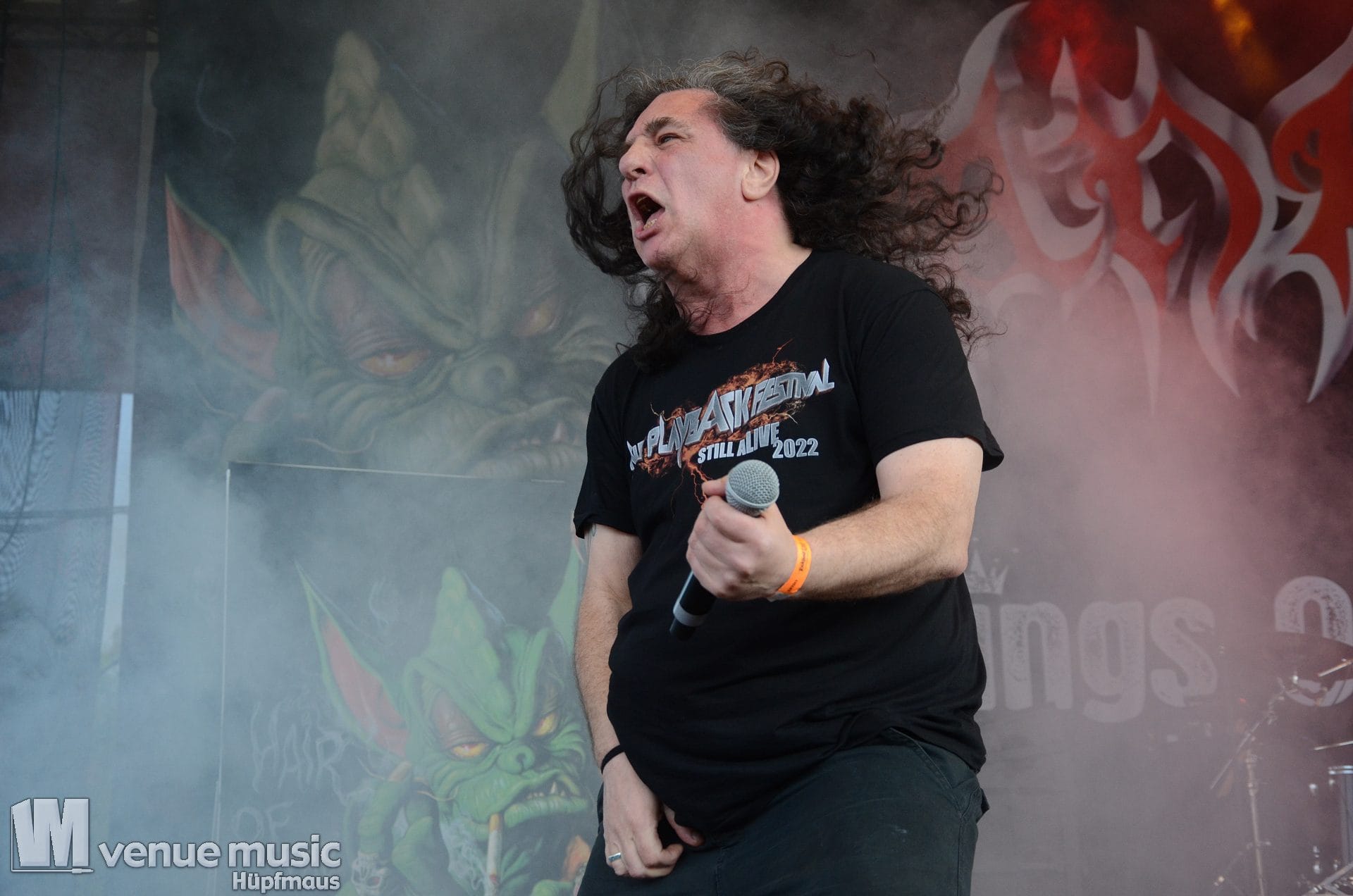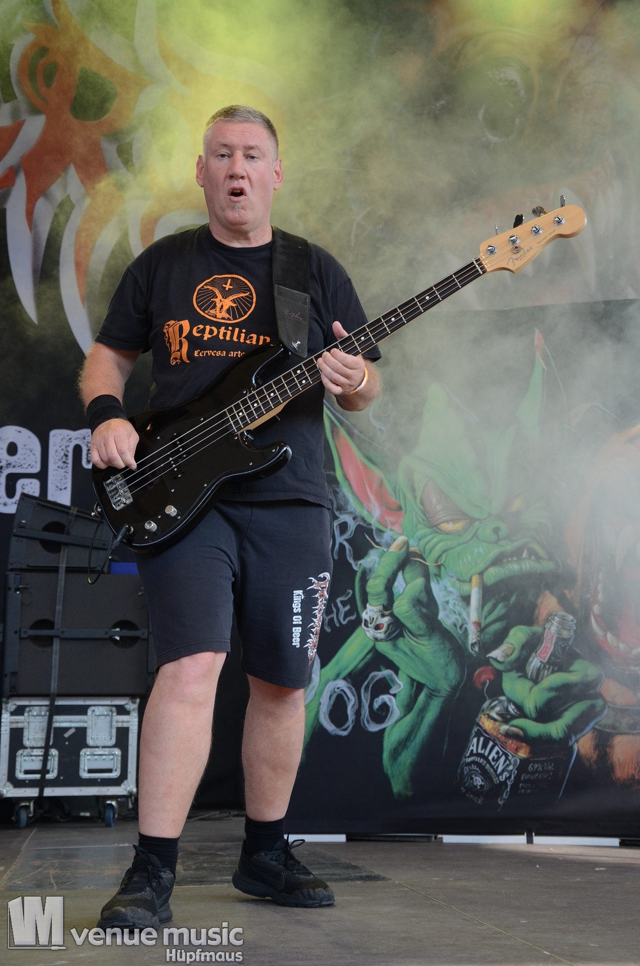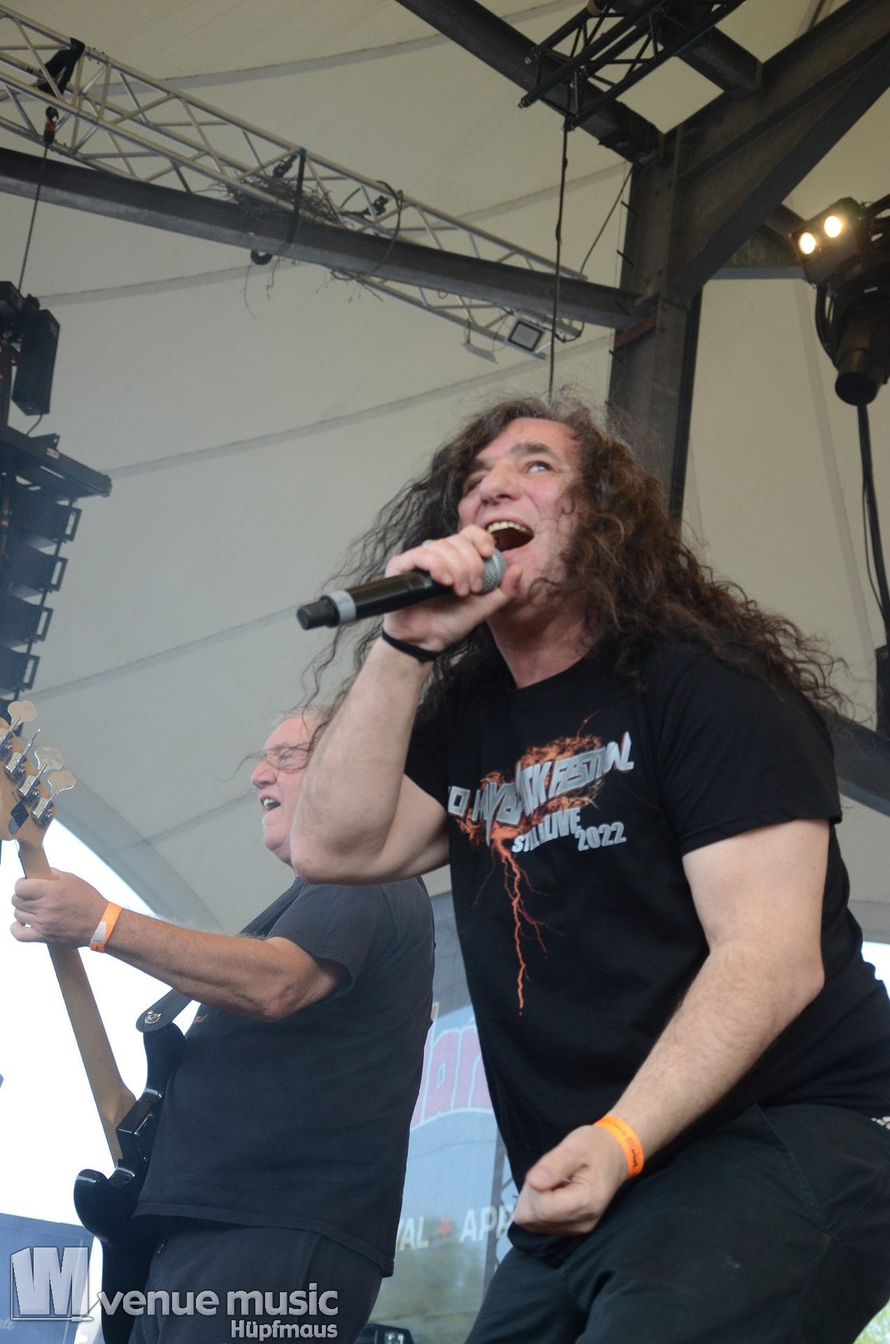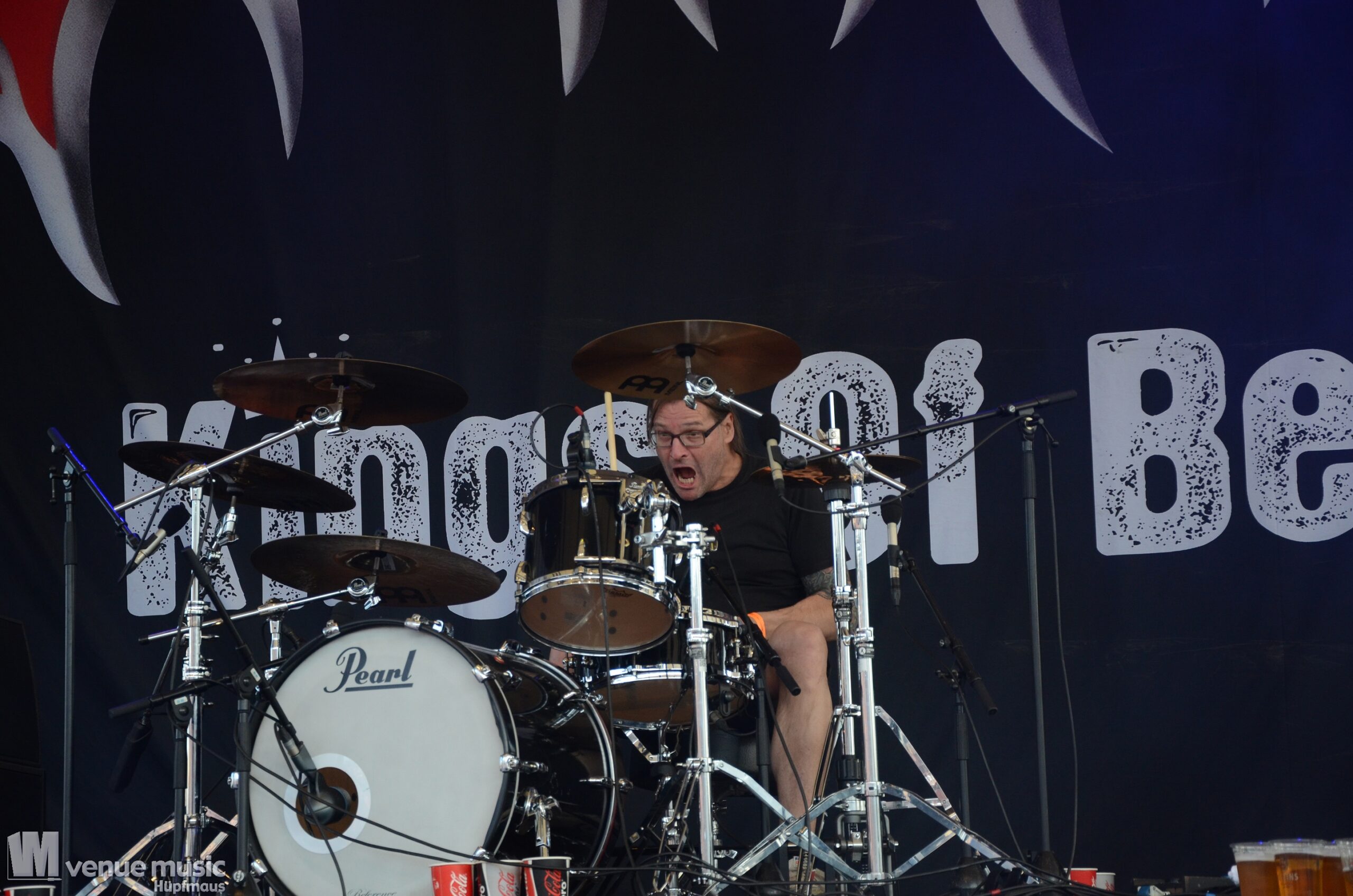 Eine weitere Band, die ich nicht auf dem Schirm hatte, waren Enforcer. Die Schweden präsentierten eine Mega-Show mit wahnsinnig viel Energie. Klamottentechnisch (und mehr) in den 90ern stehen geblieben, gabs richtig geilen Heavy/Speed-Metal auf die Ohren. Und zwar mit einer Bühnenpräsenz, die mega viel Spaß machte. Man konnte gar nicht anders, als mitzufeiern. Wem da nicht die Musik komplett durch den Körper floss, der musste entweder noch schlafen oder schon rotzevoll sein ;) Ein unerwartetes Highlight am sonnigen Sonntag Nachmittag! Vom neuen Album „Nostalgia“ gabs zwar nur den Titel „Coming Alive“, ebenso hat es nur „Zenith of the Black Sun“ der Vorgängerplatte ins Set geschafft, dafür konzentrierte sich die Band auf die etwas schnelleren Titel der früheren Werke. Coole Nummer!