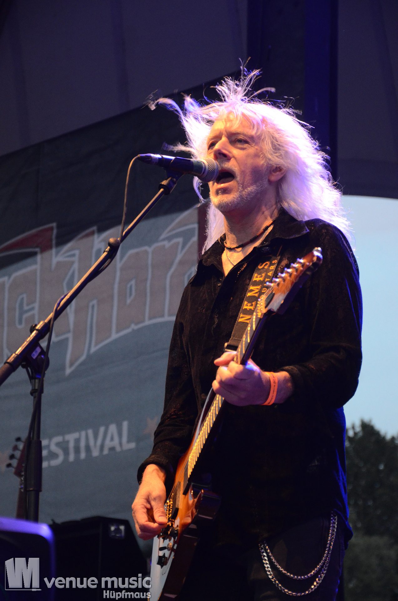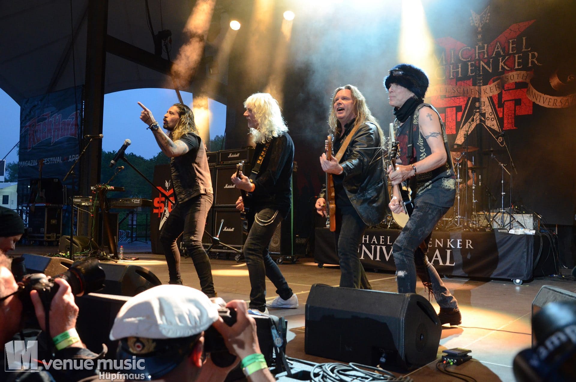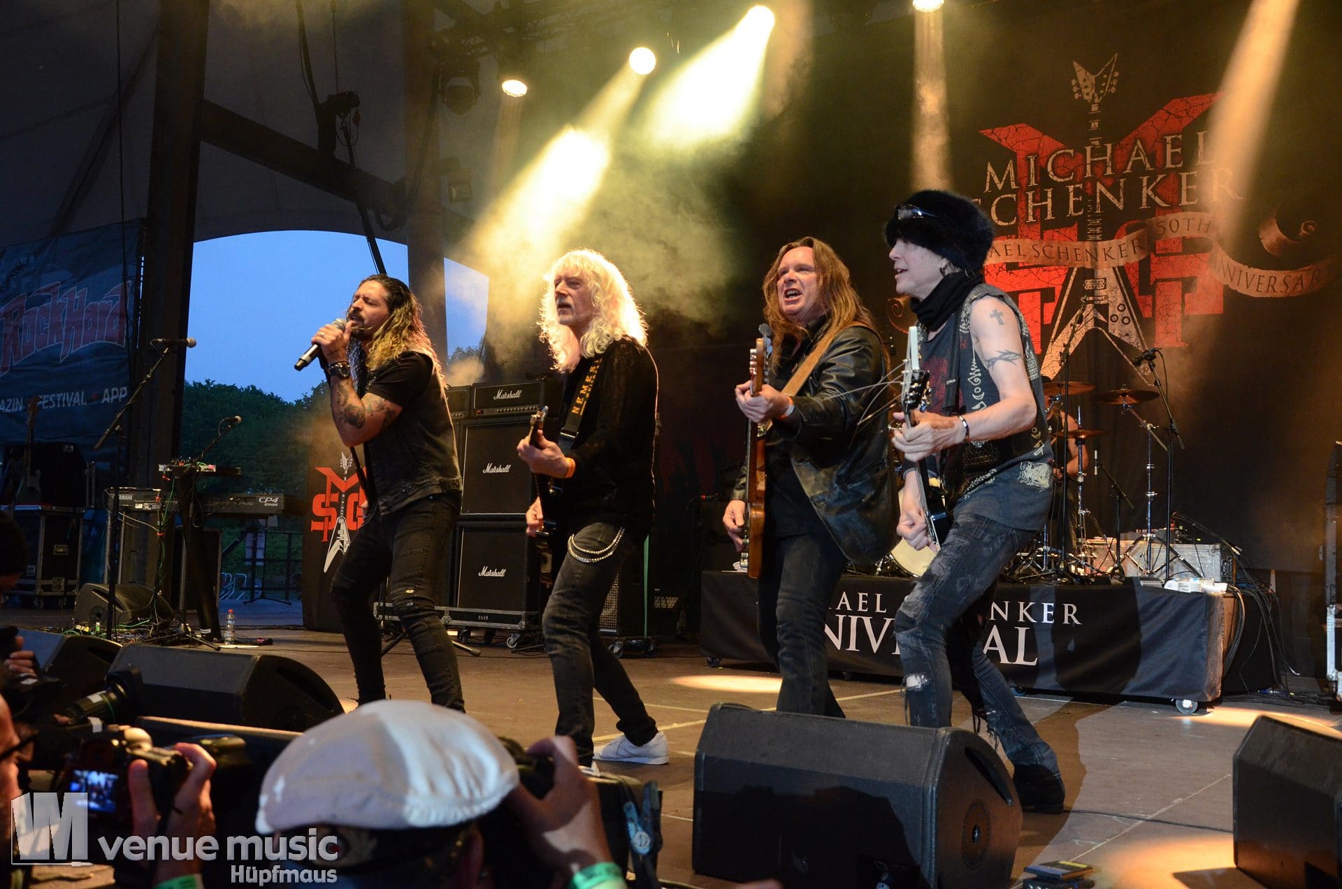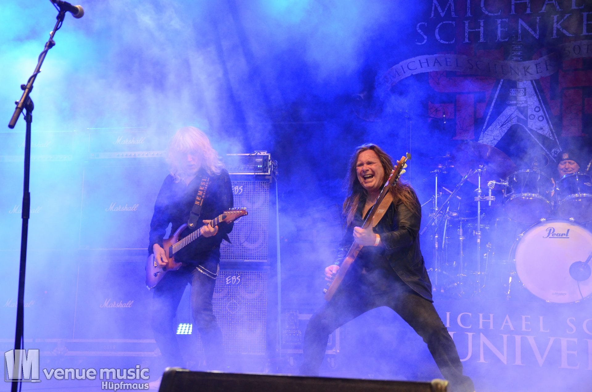 Zum Abschluss des Festivals wurde es noch mal technisch, liegt der Focus der Michael Schenker Group natürlich auf Gitarrist und Namensgeber Michael Schenker. Der Mann kanns auch einfach. Aber natürlich auch alle anderen Musiker auf der Bühne, unter anderem Ronnie Romero am Mikro – hatte ich ihn doch erst neulich bei Rock Meets Classic gesehen. Hier auch wieder absolut Top! Viele Songs von UFO standen auf dem Programm, unter anderem „Doctor Doctor“ oder „Lights Out“, als Abschlussfeuerwerk gabs „Rock Bottom“, „Too Hot To Handle“ und „Only You Can Rock Me“ direkt hintereinander.