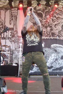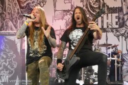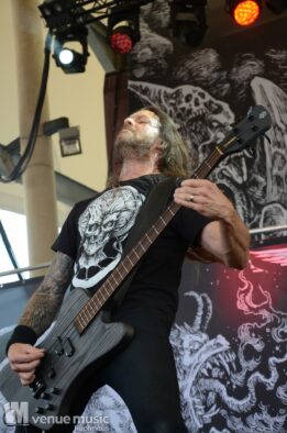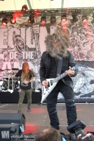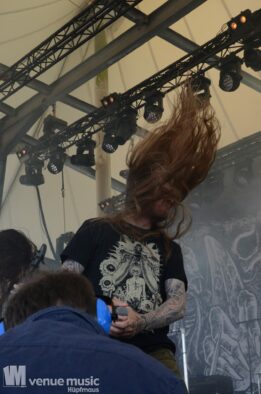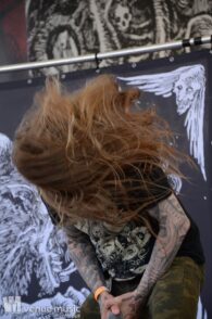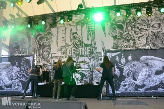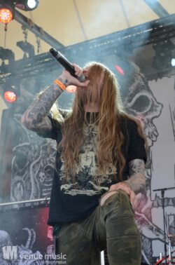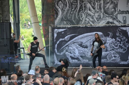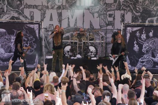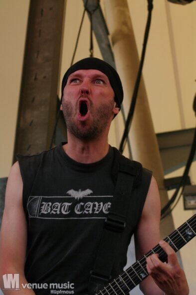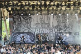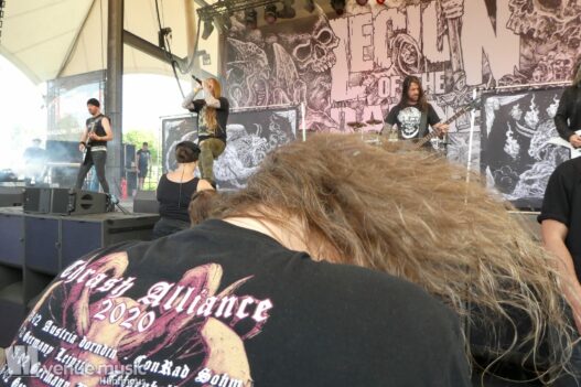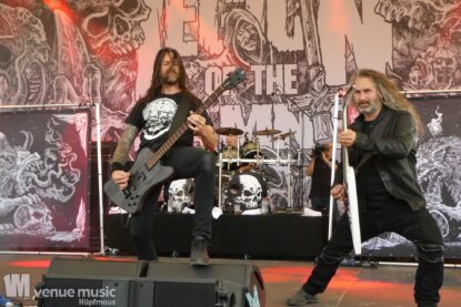 Danach gab es mit Legion of the Damned aber wieder voll eins auf die Omme.. Das neue Album war noch nicht raus, aber bereits drei Songs davon („Beheading of the Godhead“, „Contamination“ und der Titeltrack „The Poison Chalice“) im Programm und wurden voll abgefeiert. Die zweite Gitarre steht der Musik richtig gut, gibt noch mal einen fetteren Sound, so dass Haarmonster Maurice sich bemühen muss, vom Publikum gehört zu werden. Natürlich durften Klassiker wie „Legion of the Damned“ oder „Son of the Jackal“ im Set nicht fehlen. Mit nur knapp einer Stunde Spielzeit und 11 Songs war der Auftritt gefühlt viel zu schnell vorbei. Mal wieder ein absolutes Brett – und ich bin froh, dass ich meinen Kamerakram bei Freunden lassen konnte, um ab dem vierten Song mittendrin statt nur dabei zu sein. Geilomat!