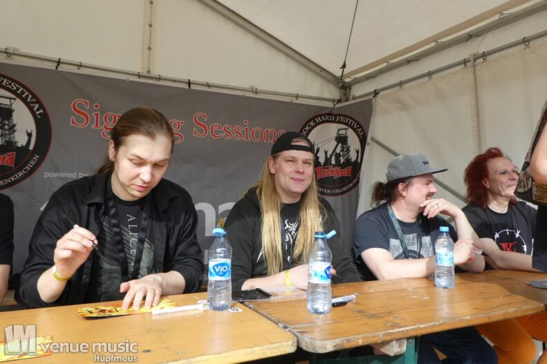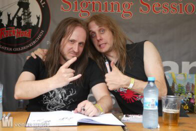 Natürlich wurde auch am zweiten Tag des Rock Hard Festivals von den Bands fleissig signiert und viele viele Fotos mit den Fans gemacht.