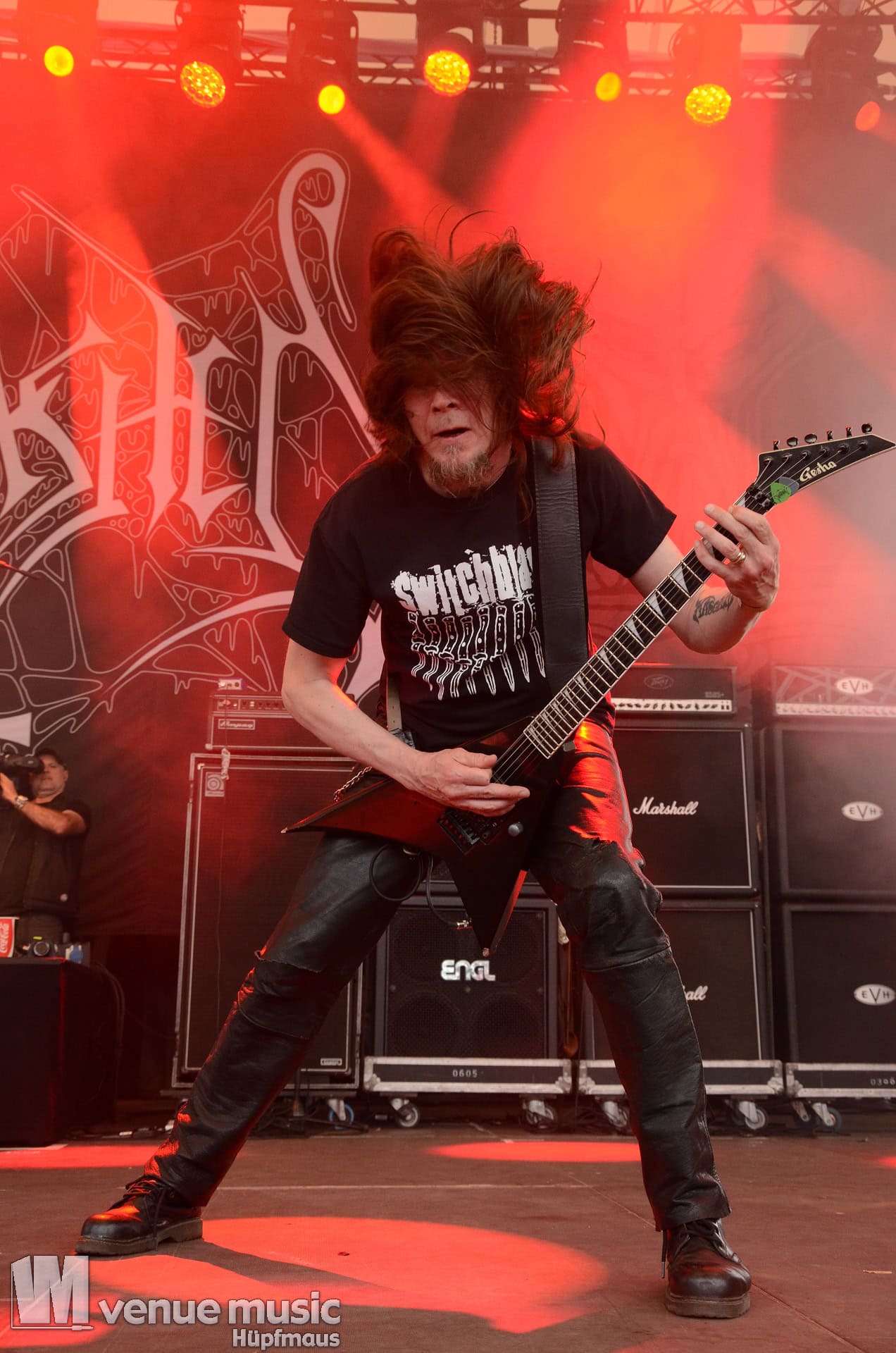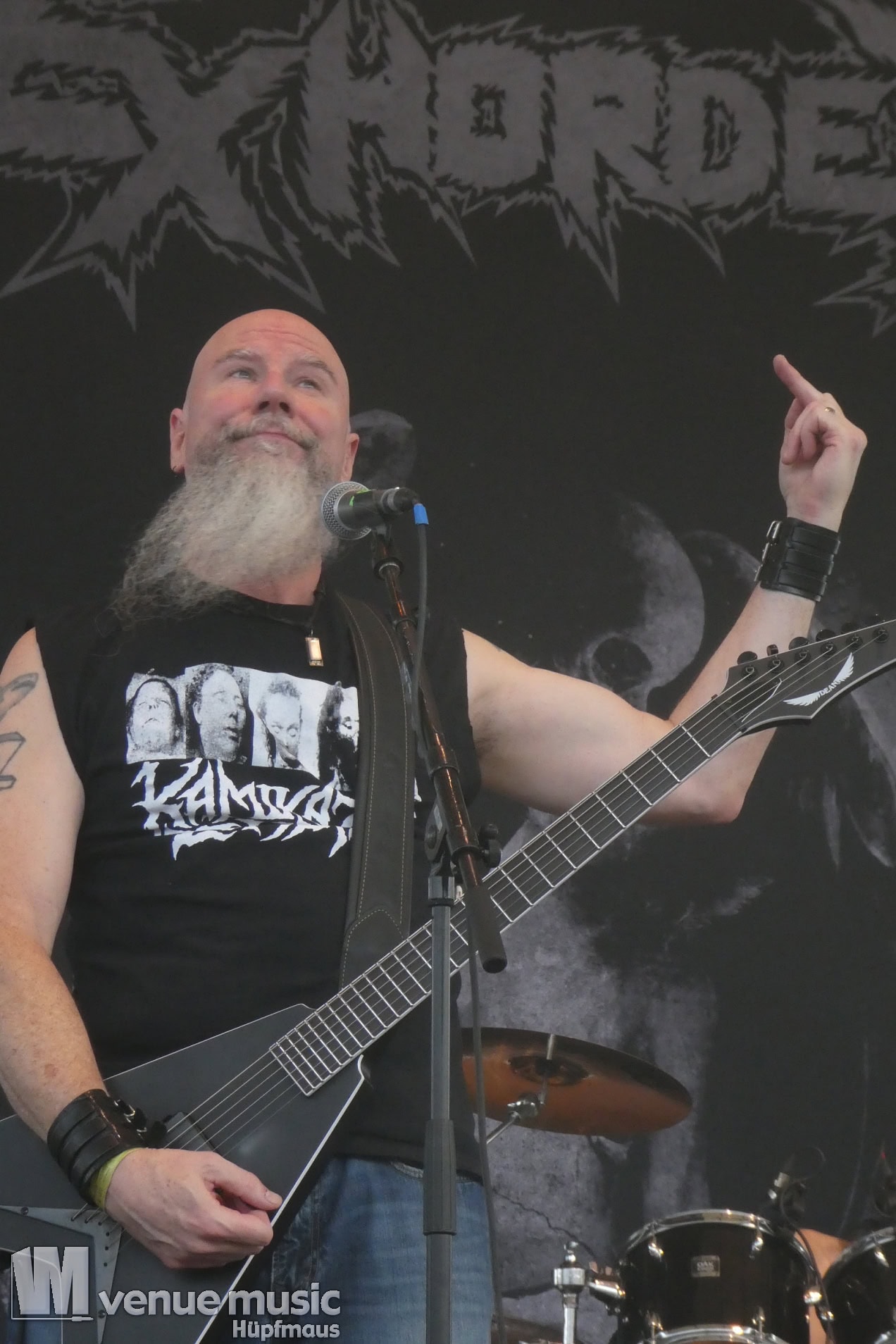 Die von mir freudig erwarteten Bands Unleashed, Forbidden, KKs Priest, Chapel of Disease und Exhorder haben wie erhofft abgeliefert. Bei Forbidden gabs dann auch die meisten Crowdsurfer (mit denen die Grabensec – ähnlich wie im letzten Jahr – dann doch recht überfordert wirkte) und für mich am Ende des Sets einen von Chris Kontos persönlich zugeworfenen („it’s for her!“) Drumstick. Mega!