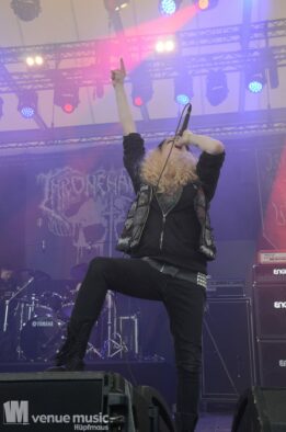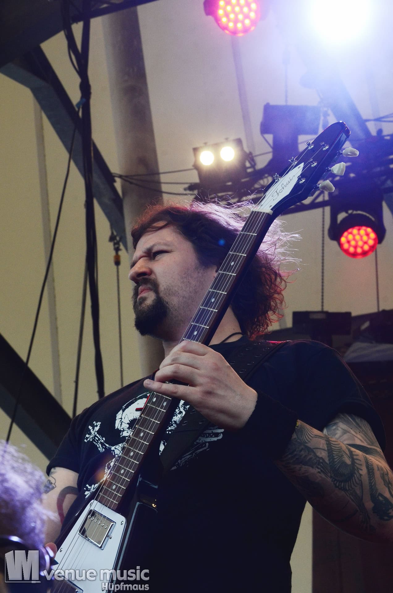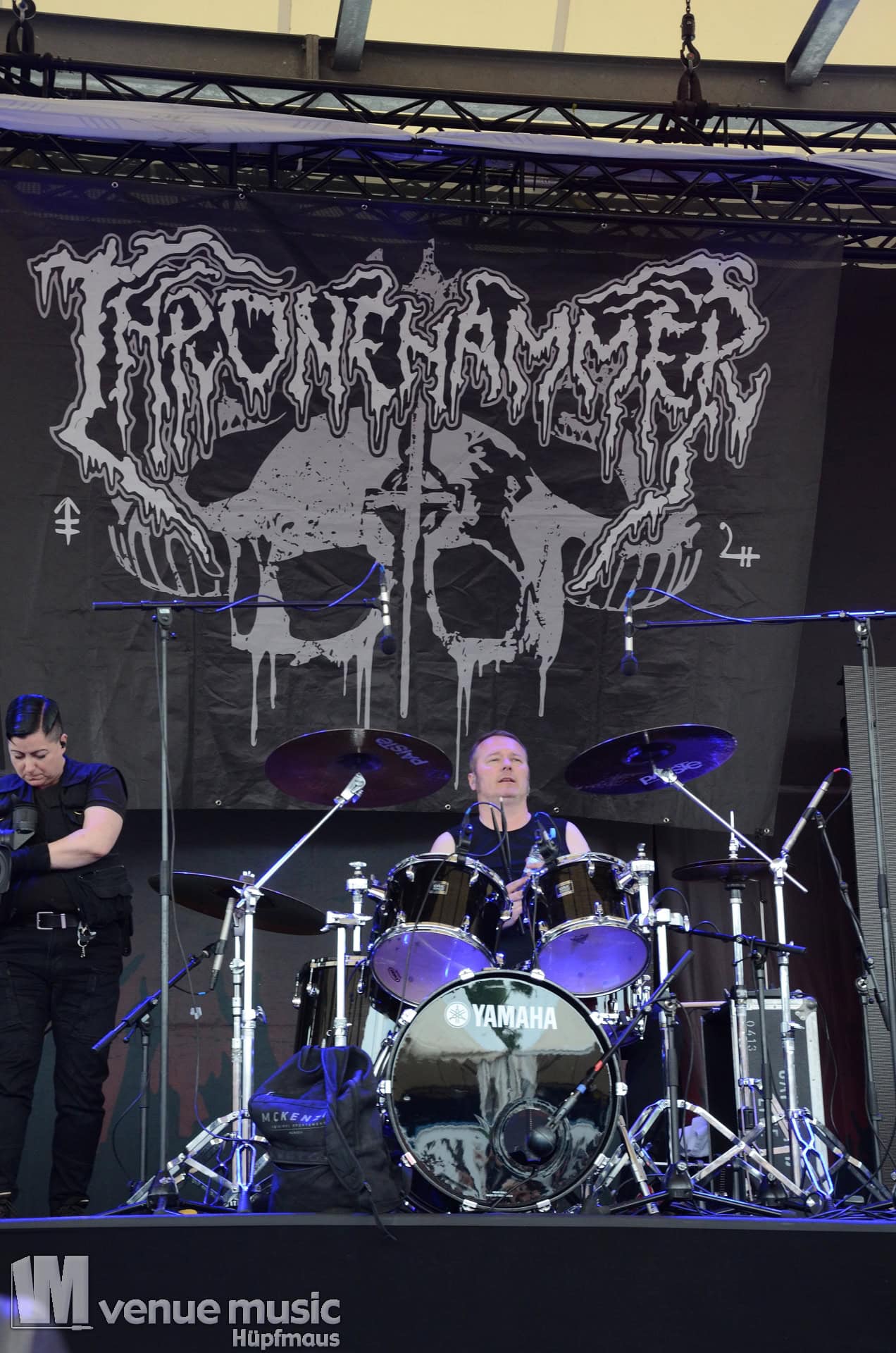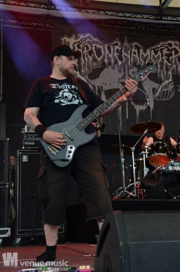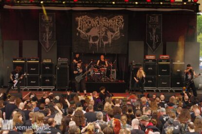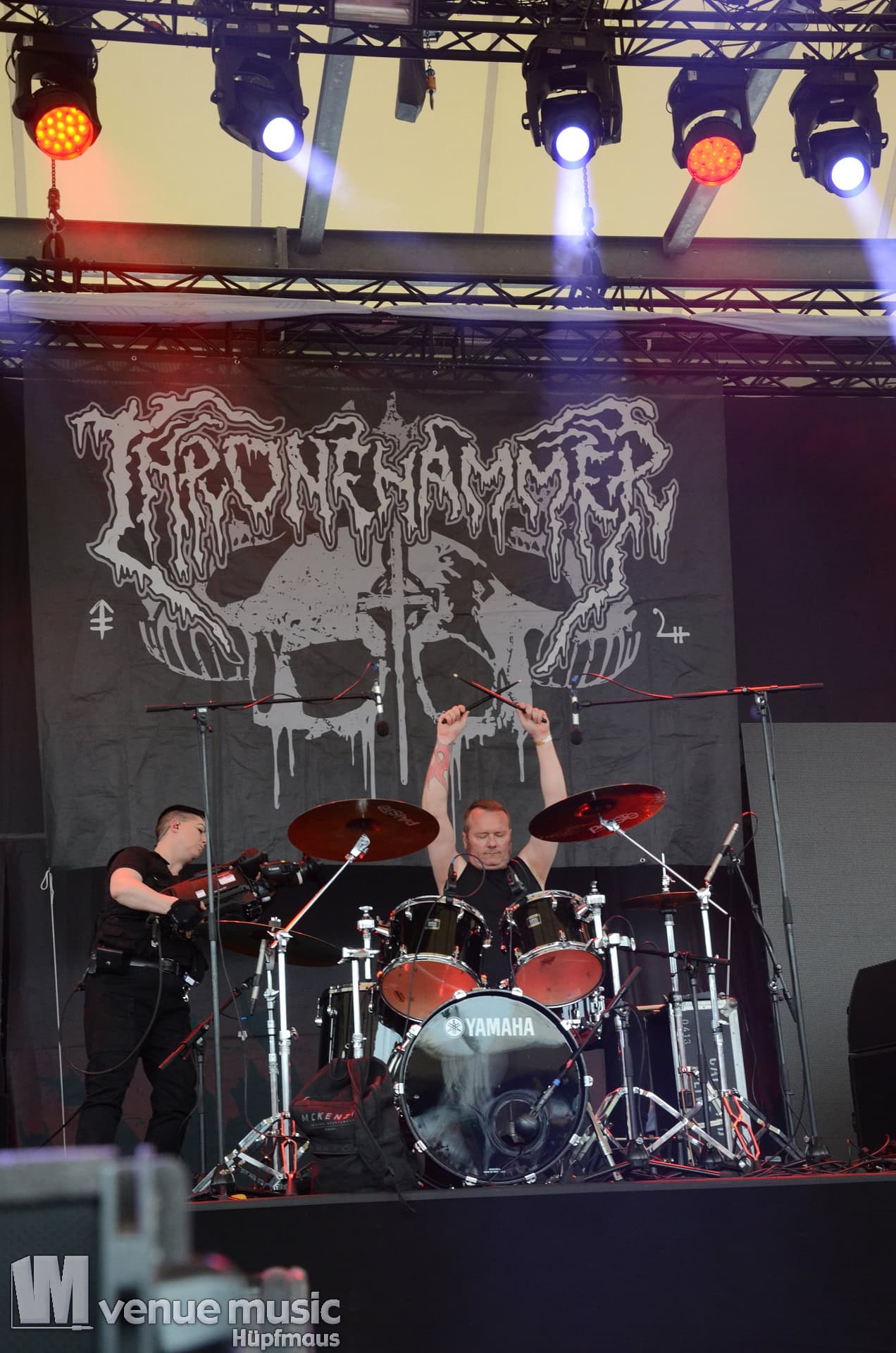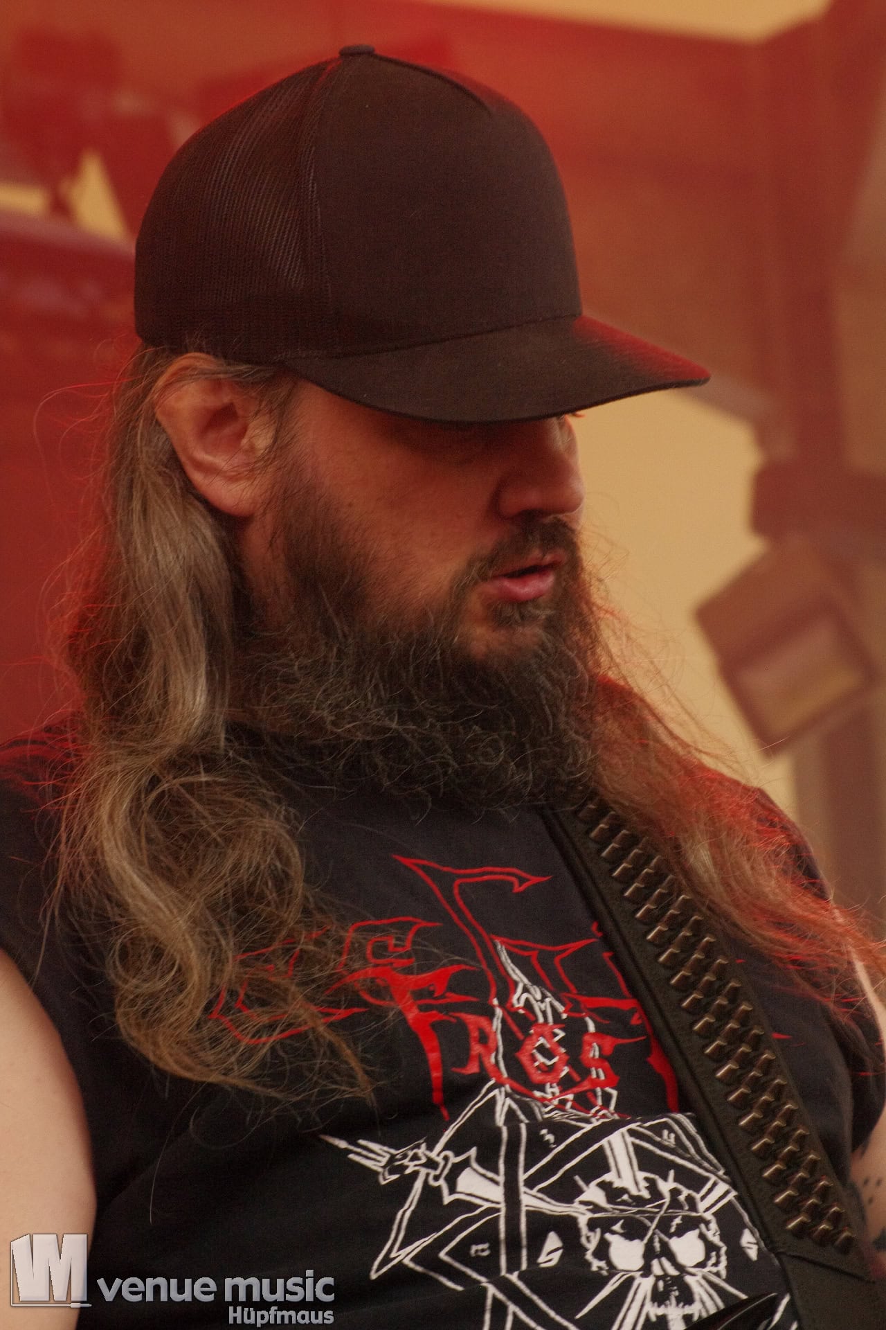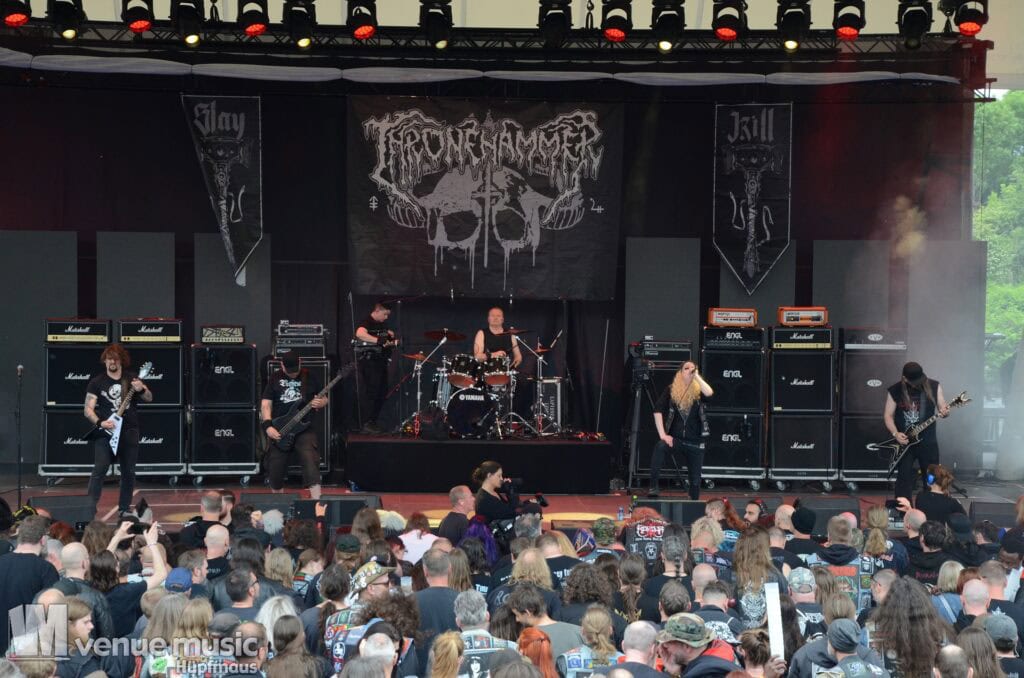 Als nächstes waren dann Thronehammer an der Reihe. Sie begannen ihr Set mit dem Titeltrack „Kingslayer“ des aktuellen Albums. Die Songs der Epic-Doom-Band sind doch länger als bei vielen anderen und so war bereits mit „Thronehammer“ nach insgesamt 4 Songs Schluß – dabei hatten sie die 40 Minuten Spielzeit fast ausgefüllt. Auch wenn Die Musik doch eher in die Dunkelheit gepasst hätte, konnten sie ihre Fans trotzdem begeistern.