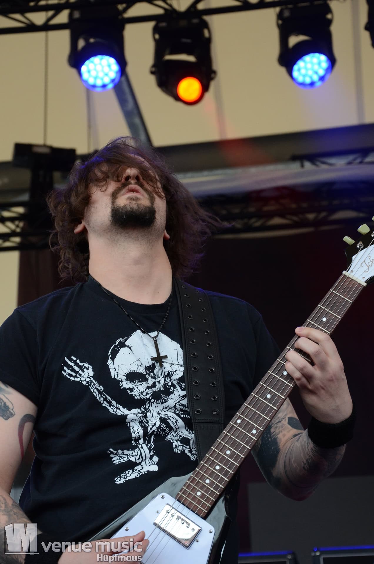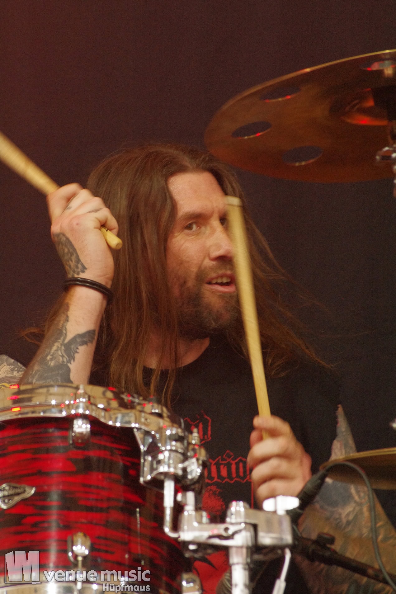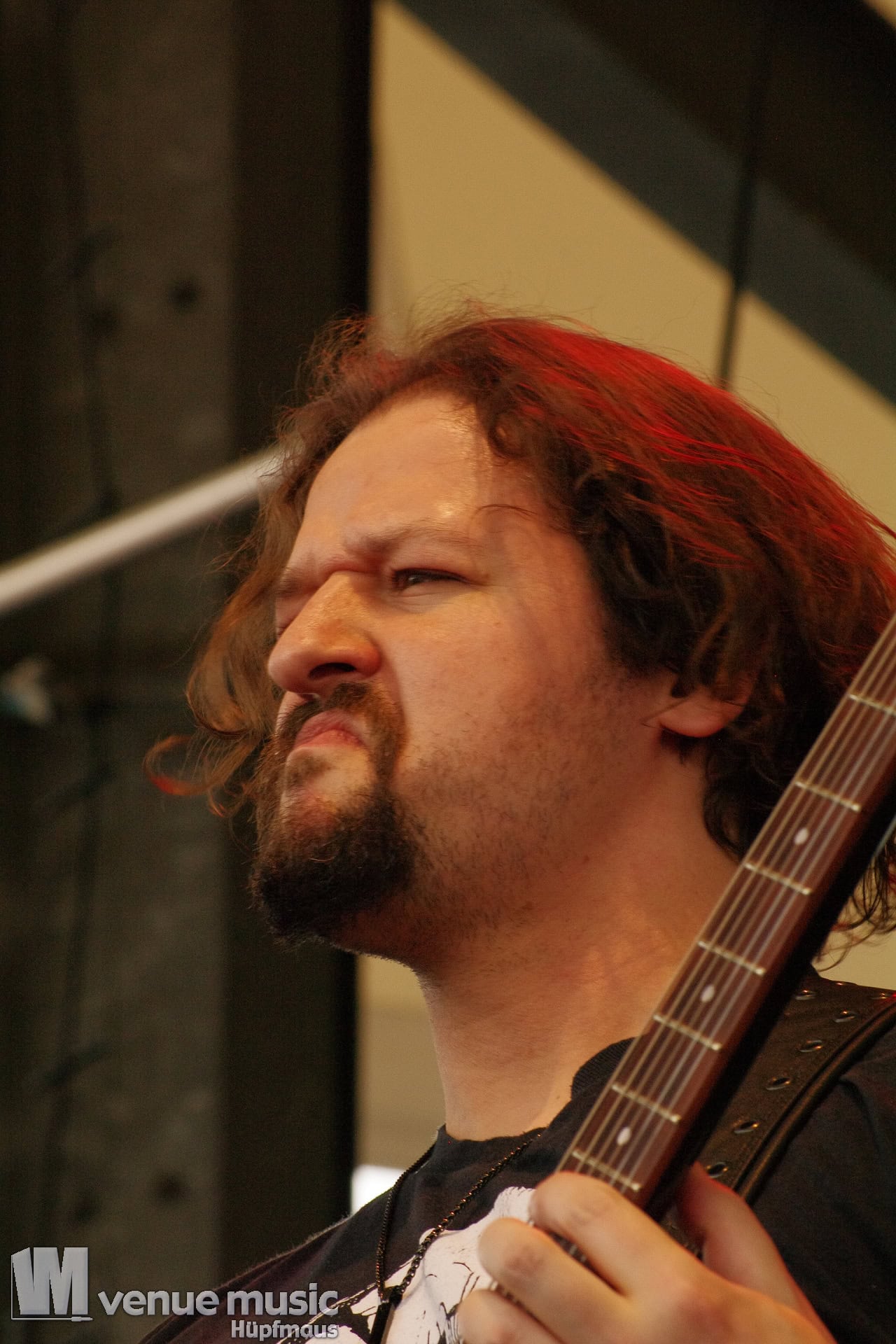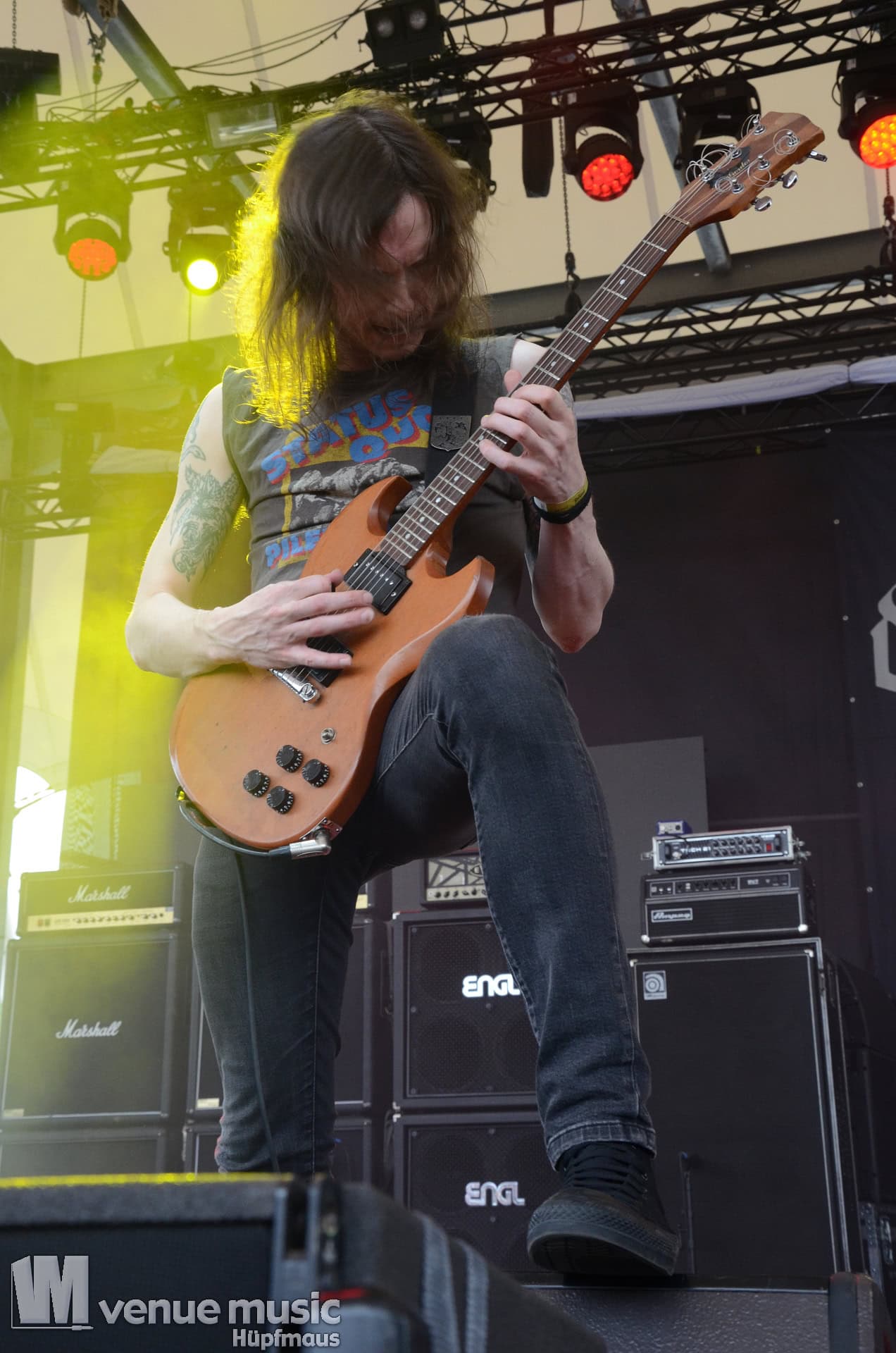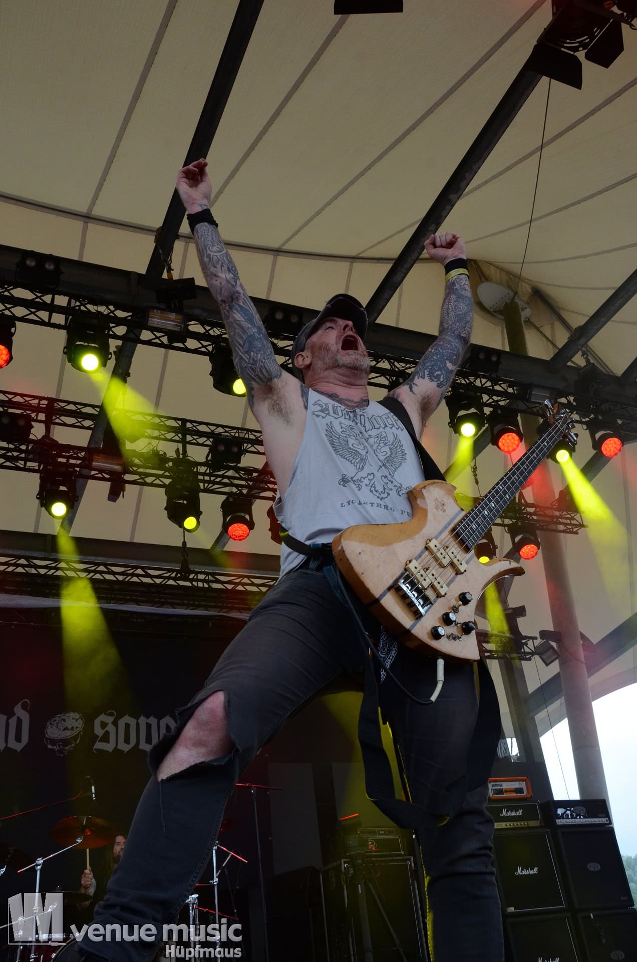 Als nächstes waren dann Thronehammer an der Reihe. Sie begannen ihr Set mit dem Titeltrack „Kingslayer“ des aktuellen Albums. Die Songs der Epic-Doom-Band sind doch länger als bei vielen anderen und so war bereits mit „Thronehammer“ nach insgesamt 4 Songs Schluß – dabei hatten sie die 40 Minuten Spielzeit fast ausgefüllt. Auch wenn Die Musik doch eher in die Dunkelheit gepasst hätte, konnten sie ihre Fans trotzdem begeistern.