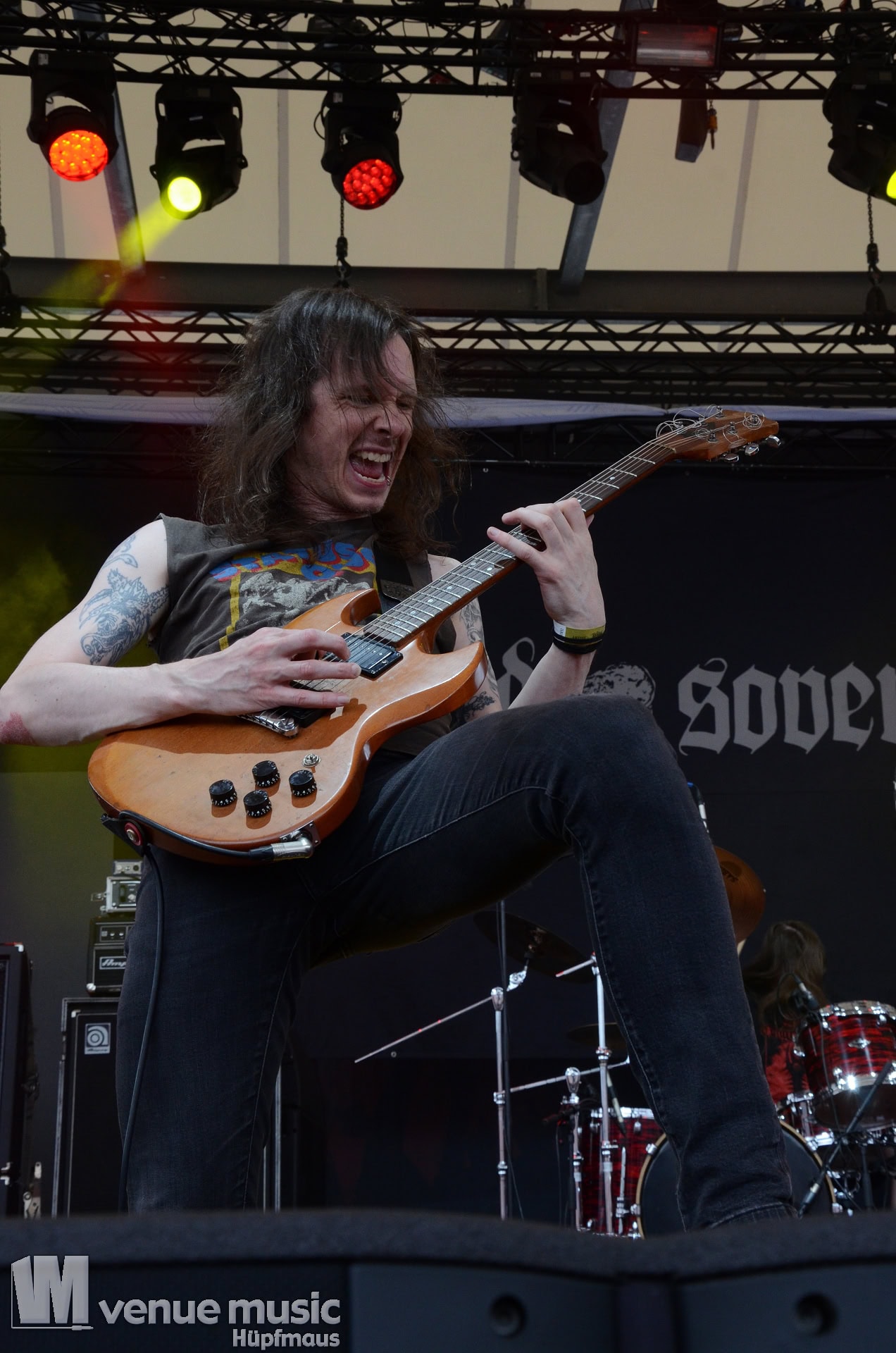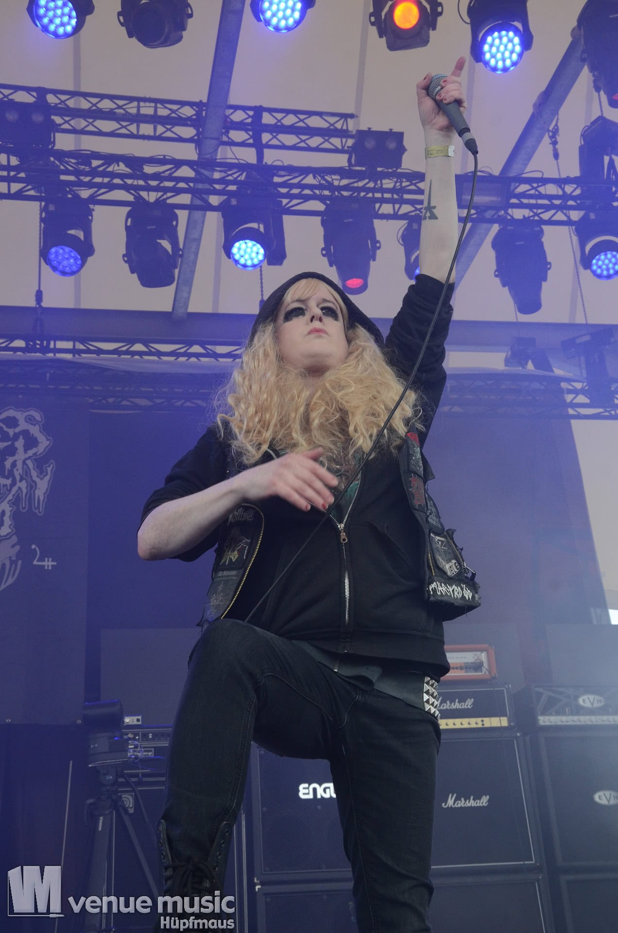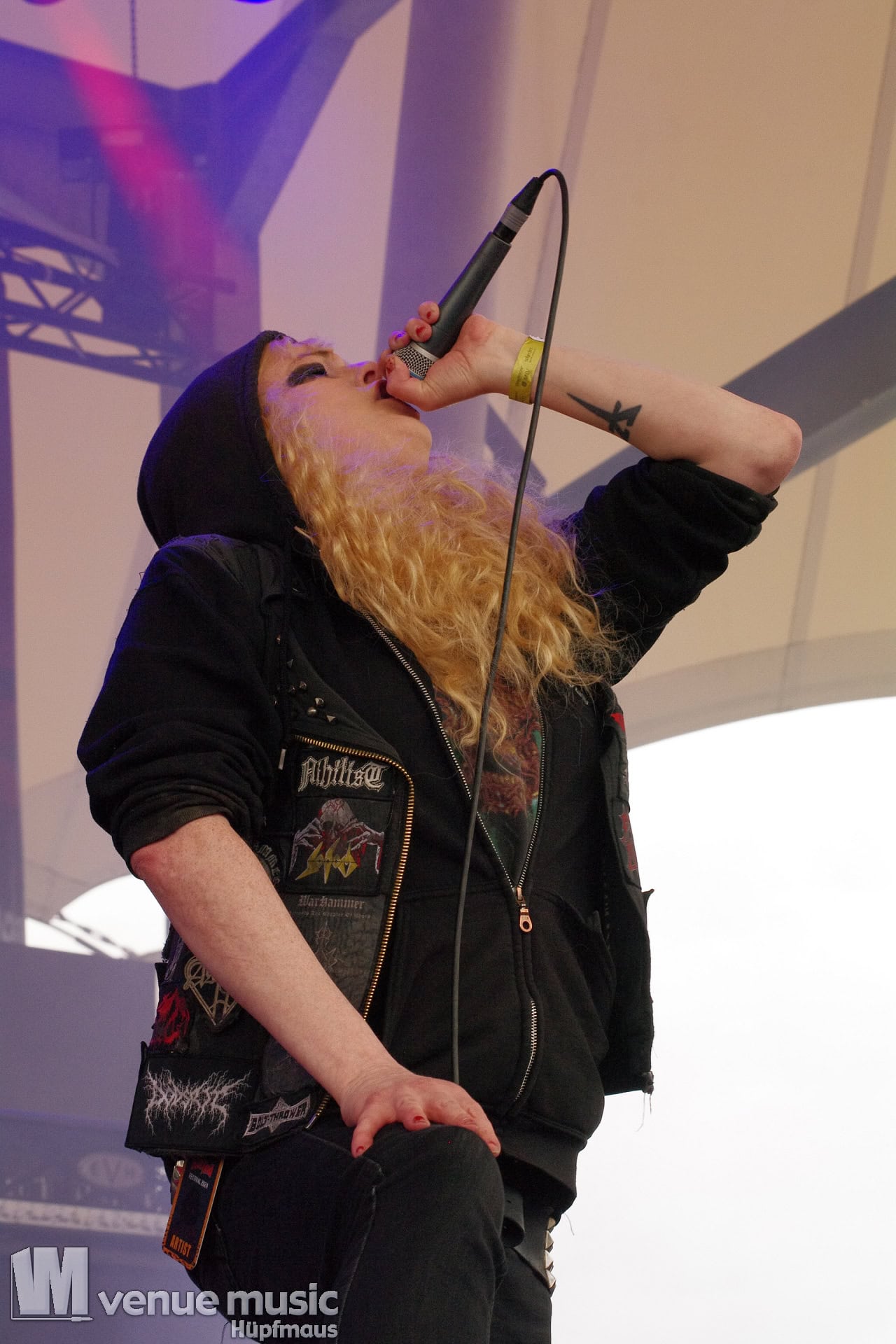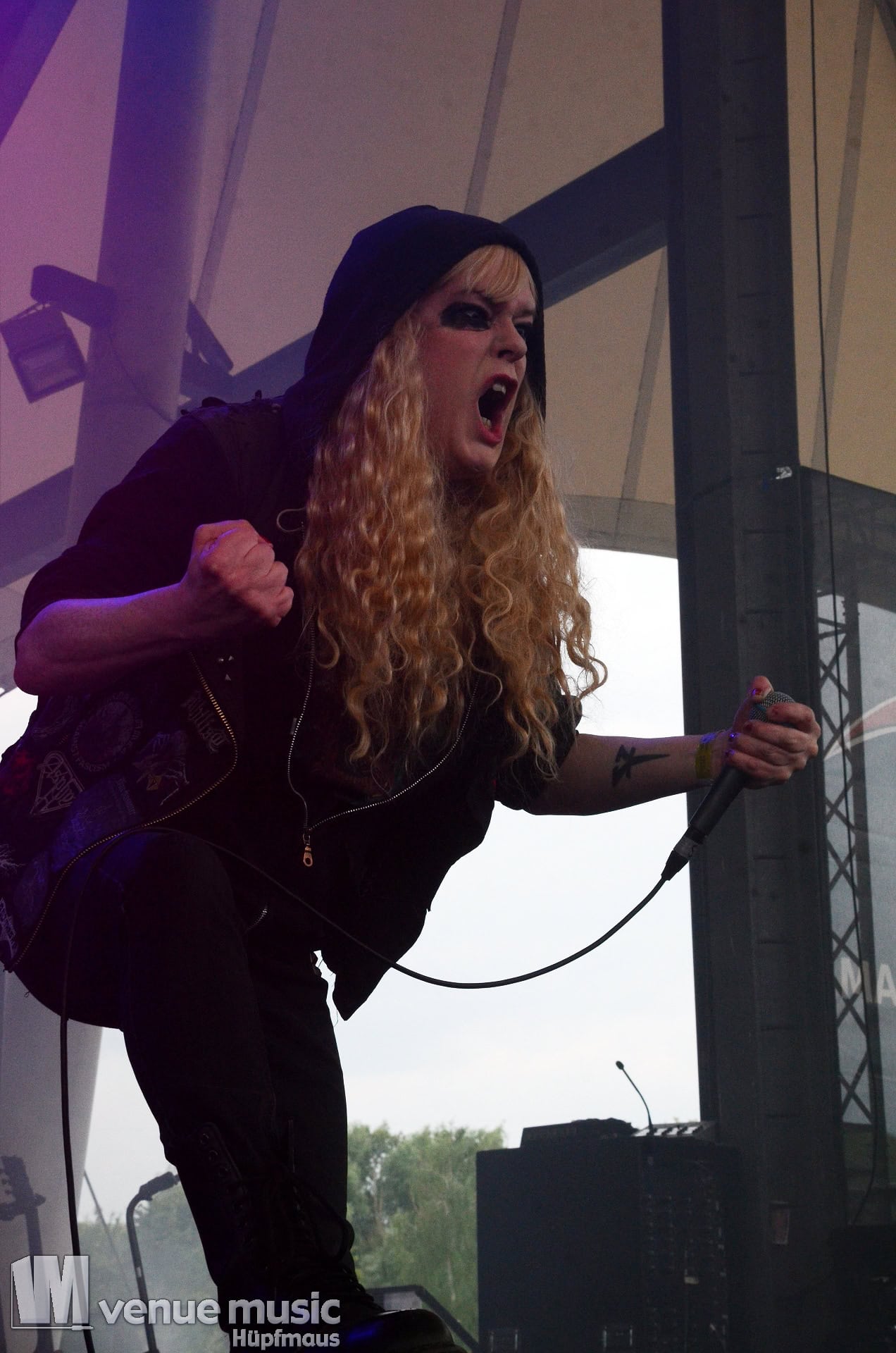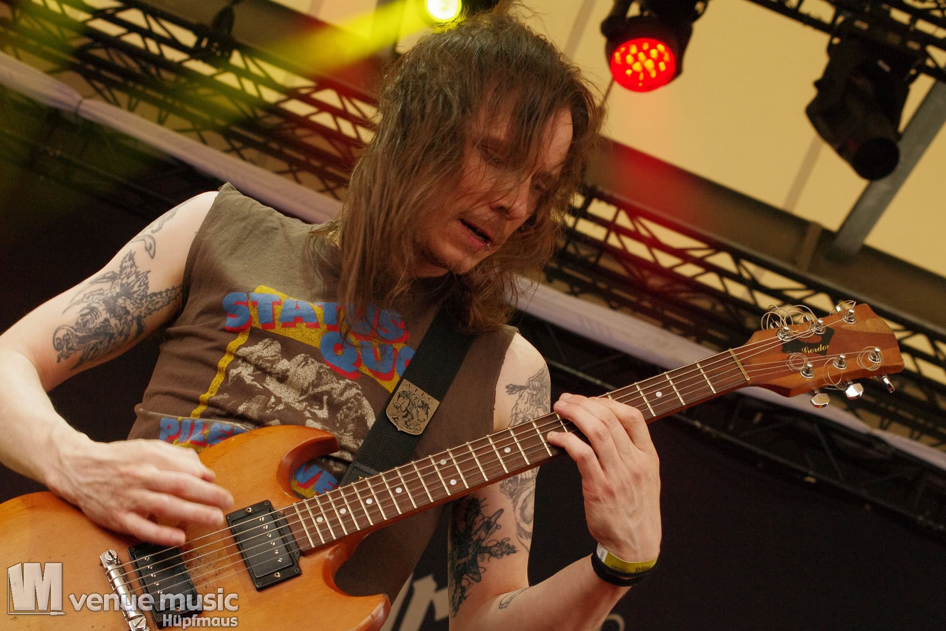 Als nächstes waren dann Thronehammer an der Reihe. Sie begannen ihr Set mit dem Titeltrack „Kingslayer“ des aktuellen Albums. Die Songs der Epic-Doom-Band sind doch länger als bei vielen anderen und so war bereits mit „Thronehammer“ nach insgesamt 4 Songs Schluß – dabei hatten sie die 40 Minuten Spielzeit fast ausgefüllt. Auch wenn Die Musik doch eher in die Dunkelheit gepasst hätte, konnten sie ihre Fans trotzdem begeistern.