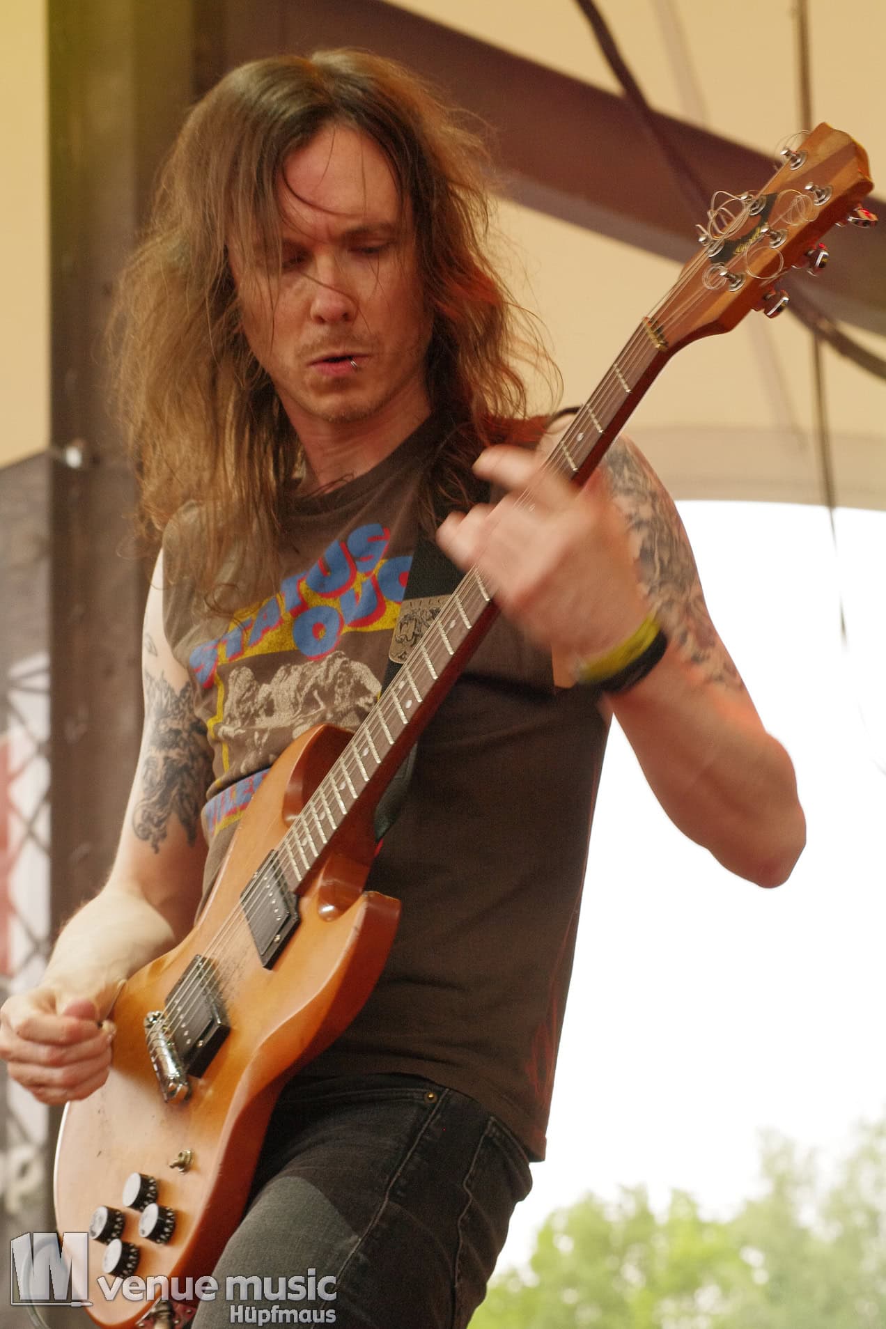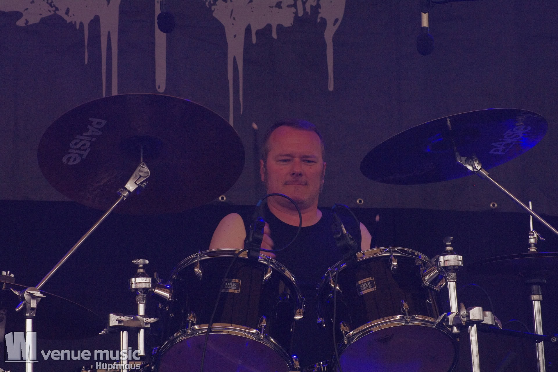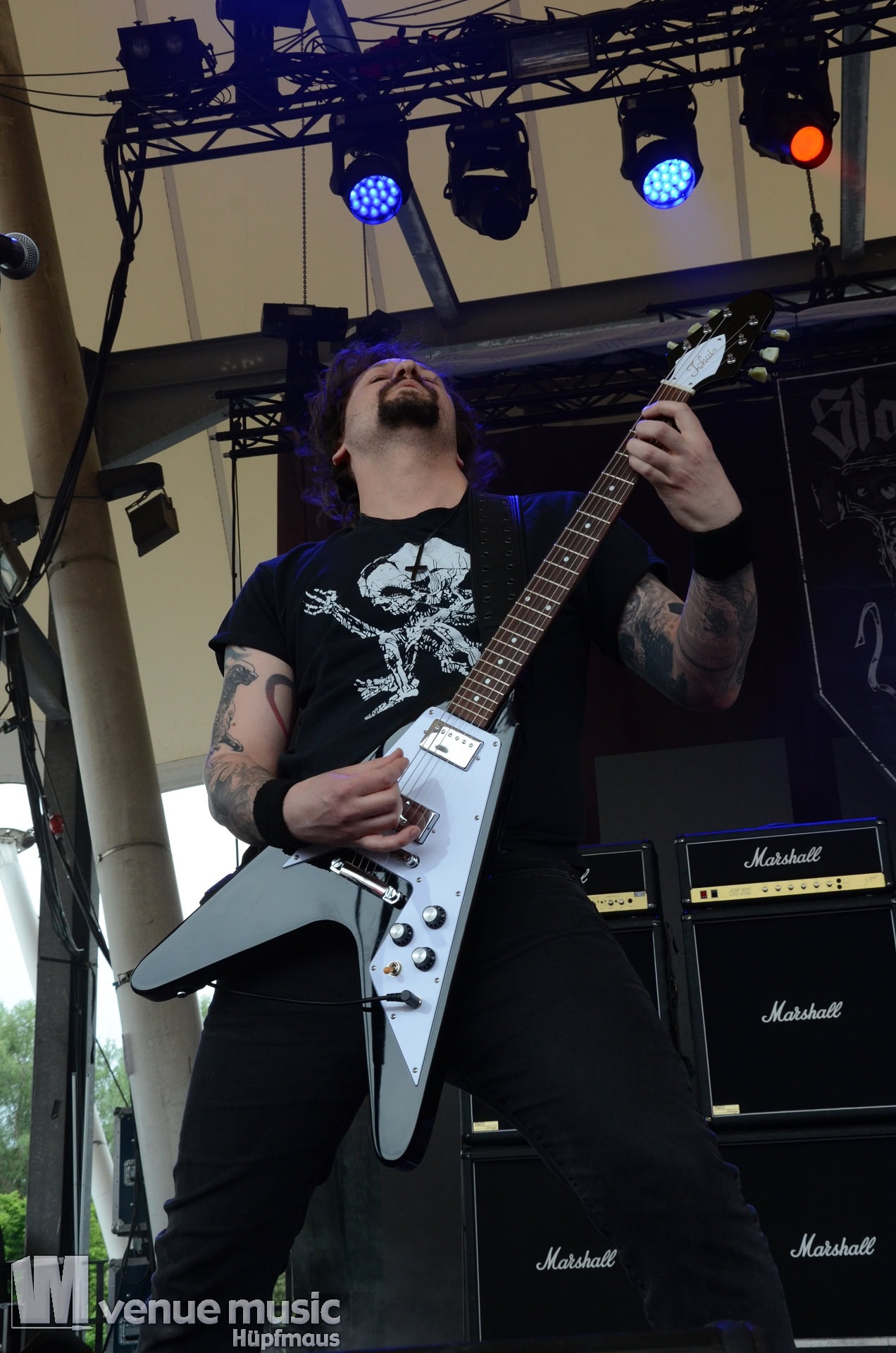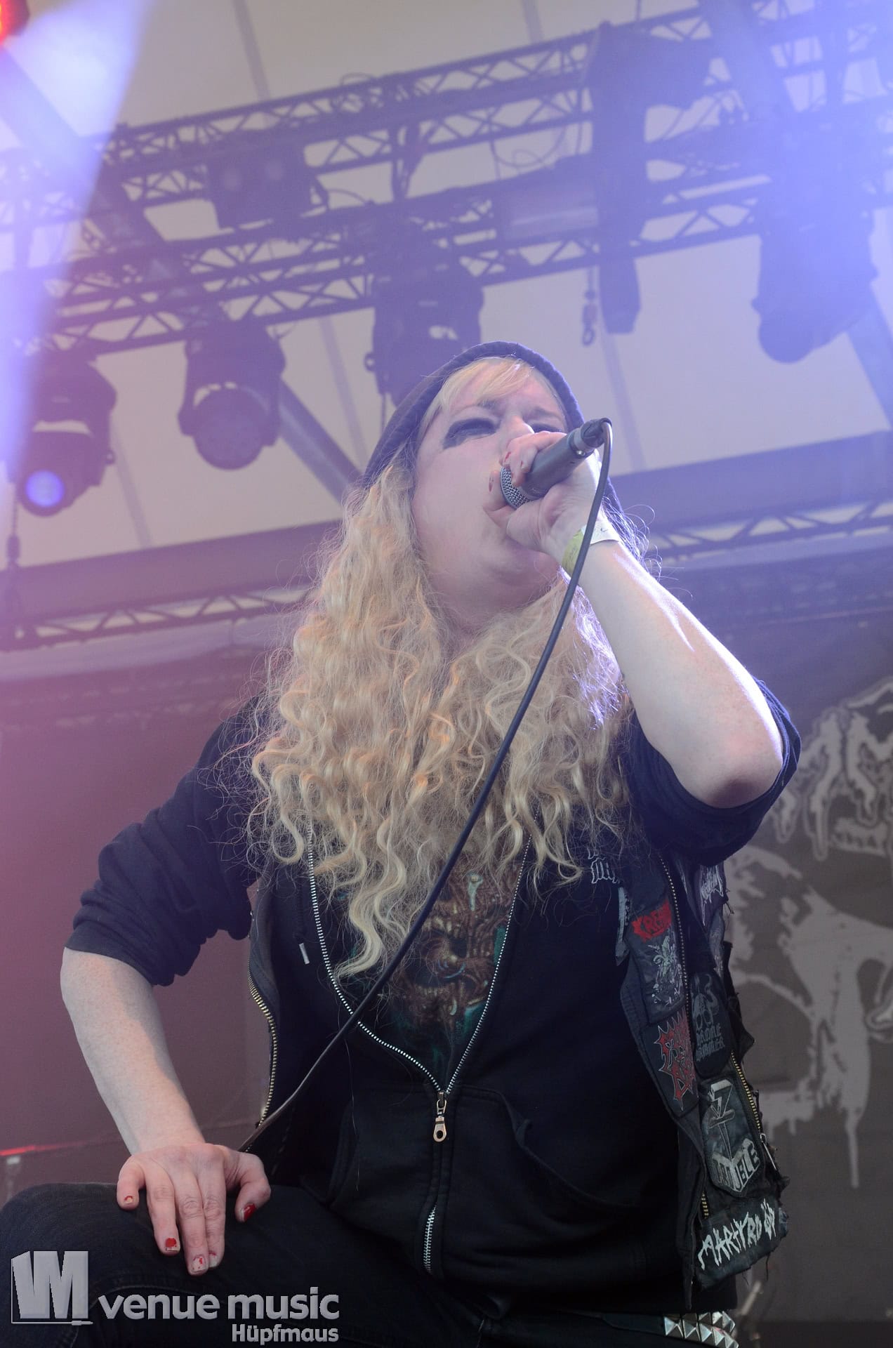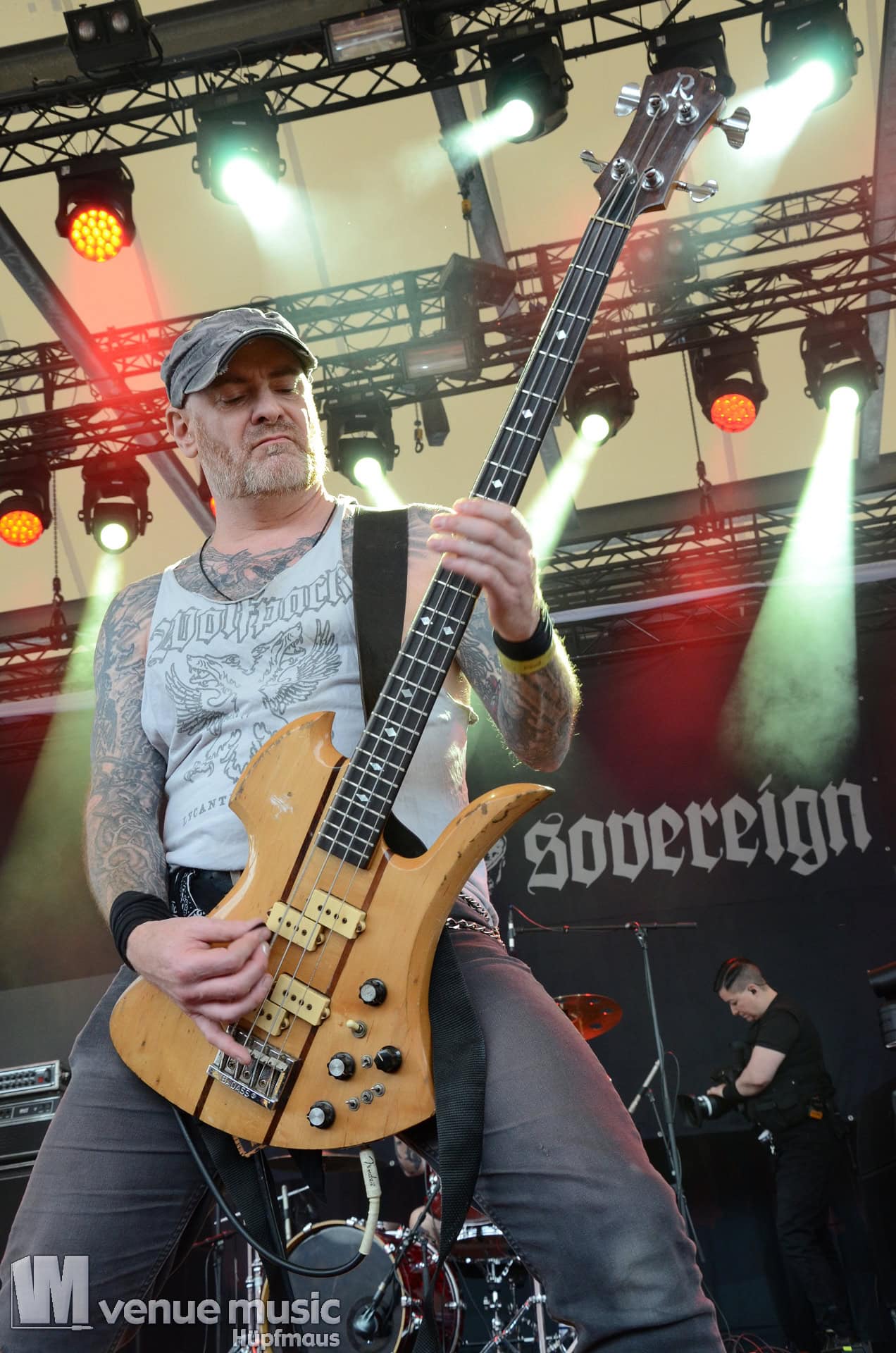 Als nächstes waren dann Thronehammer an der Reihe. Sie begannen ihr Set mit dem Titeltrack „Kingslayer“ des aktuellen Albums. Die Songs der Epic-Doom-Band sind doch länger als bei vielen anderen und so war bereits mit „Thronehammer“ nach insgesamt 4 Songs Schluß – dabei hatten sie die 40 Minuten Spielzeit fast ausgefüllt. Auch wenn Die Musik doch eher in die Dunkelheit gepasst hätte, konnten sie ihre Fans trotzdem begeistern.