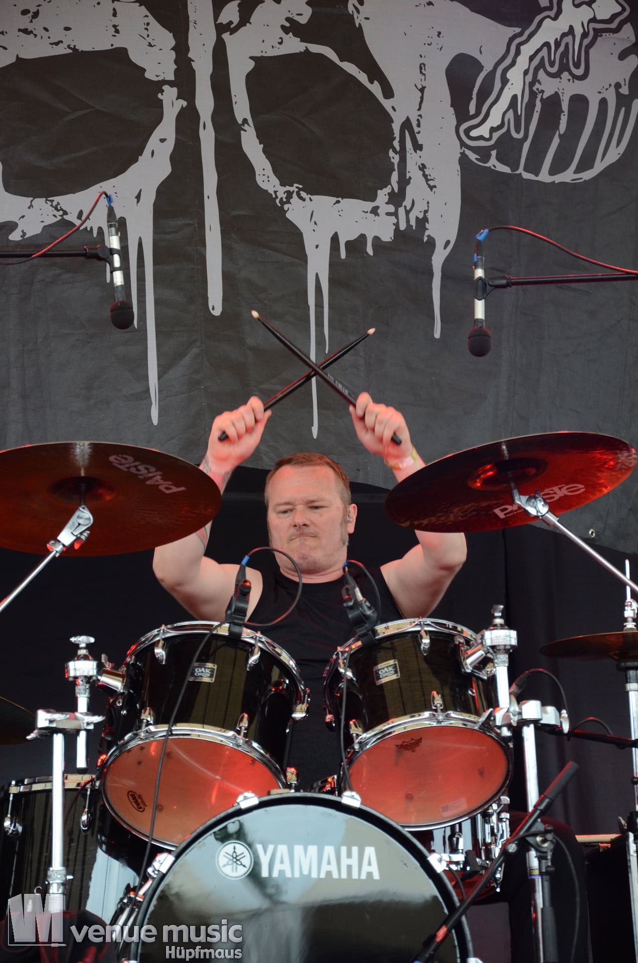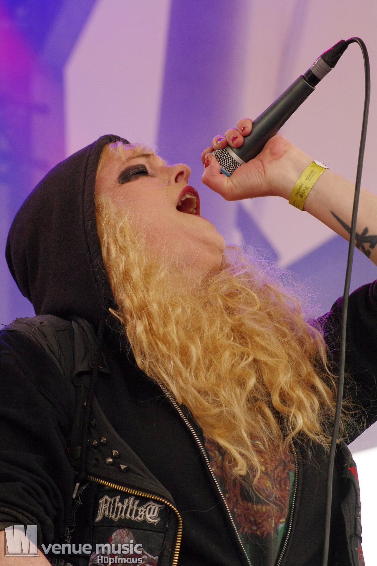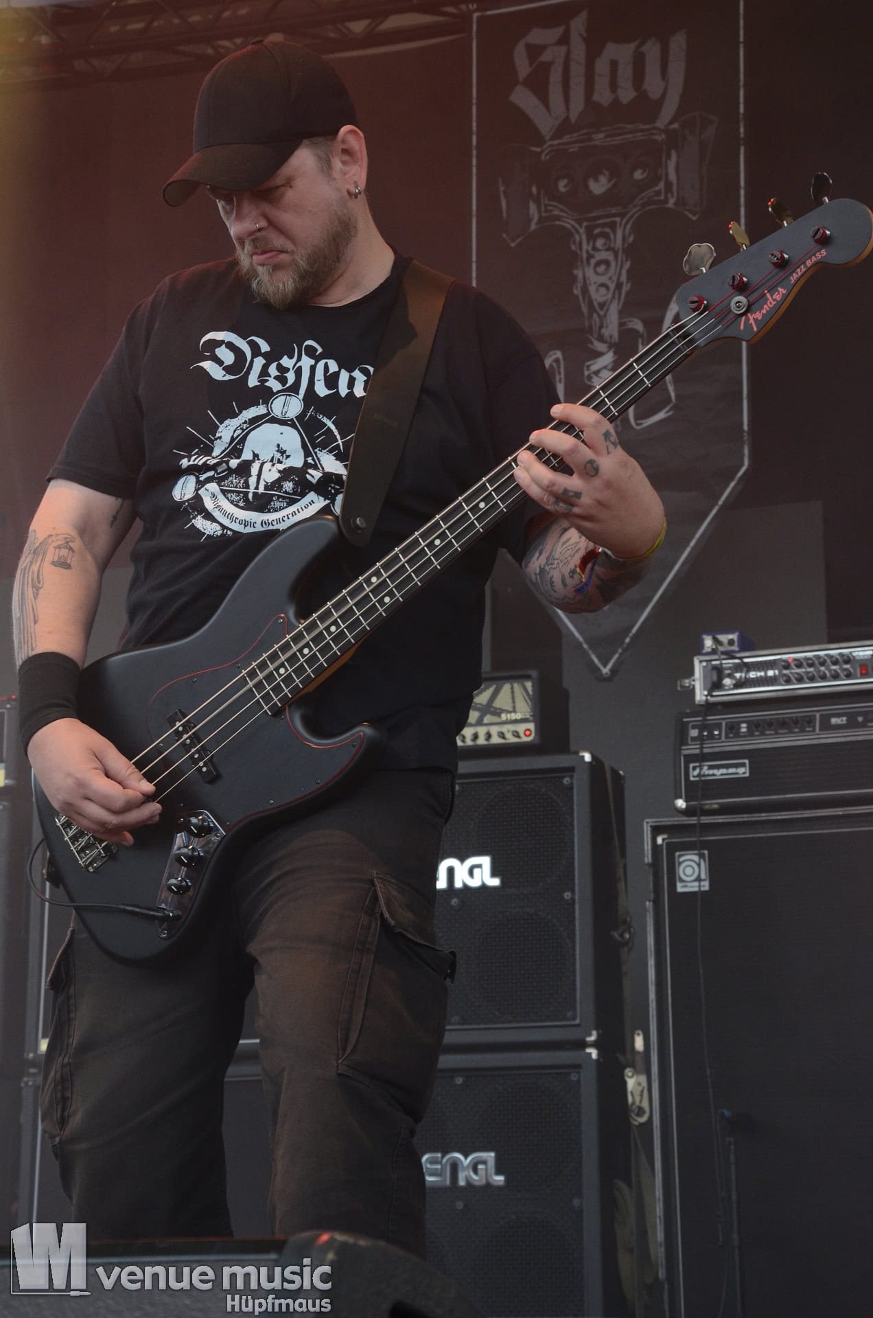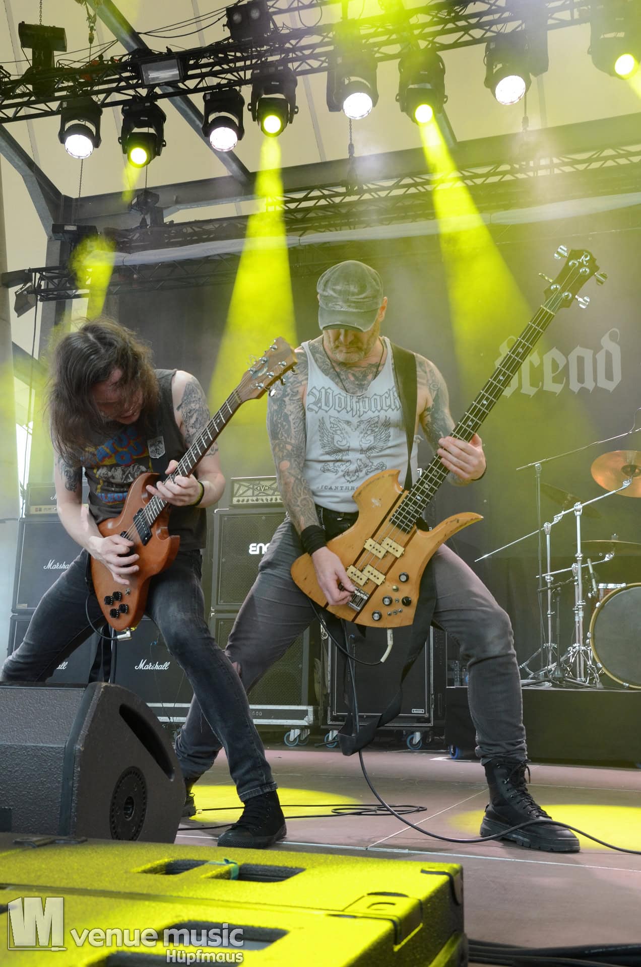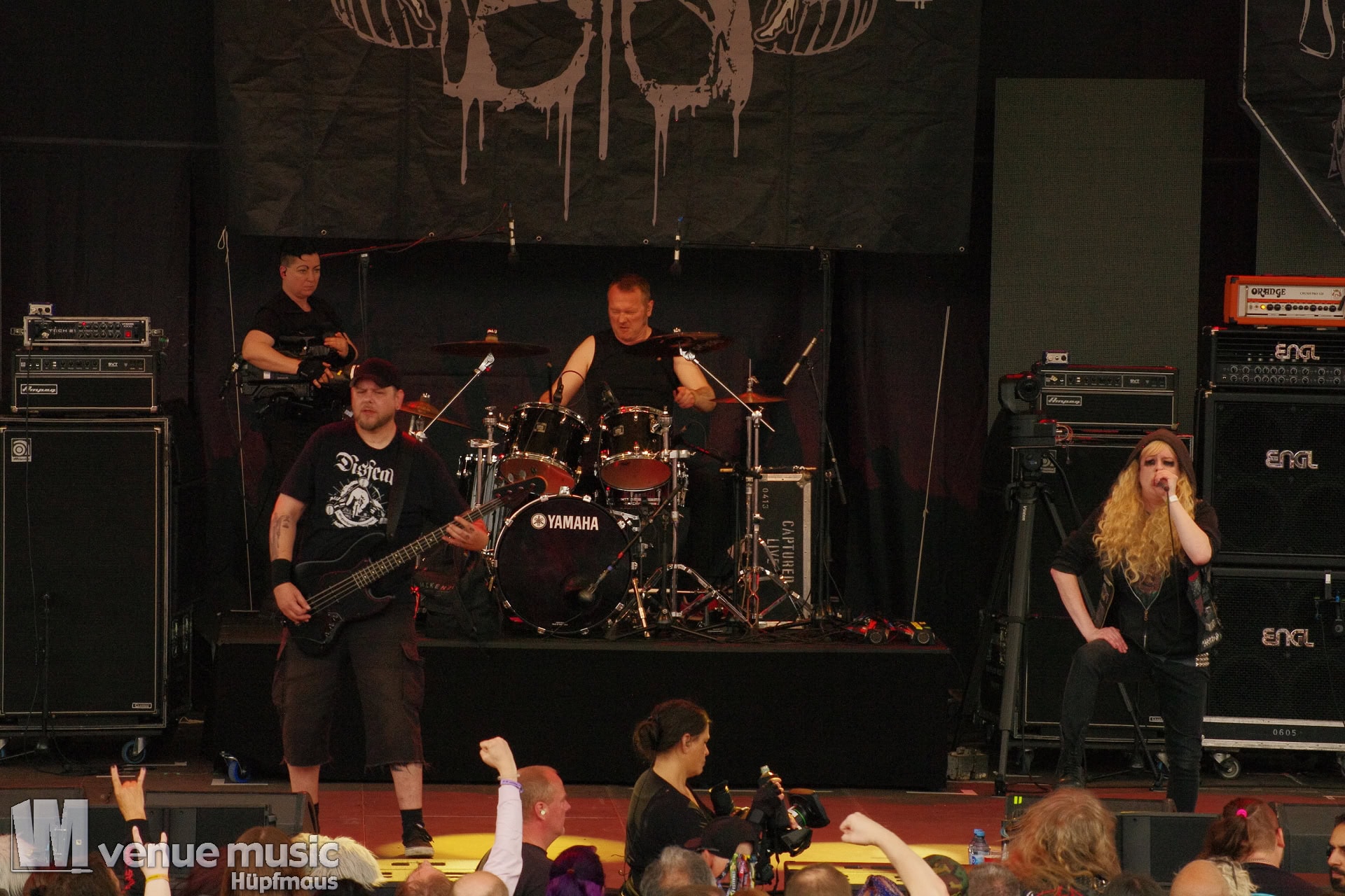Als nächstes waren dann Thronehammer an der Reihe. Sie begannen ihr Set mit dem Titeltrack „Kingslayer“ des aktuellen Albums. Die Songs der Epic-Doom-Band sind doch länger als bei vielen anderen und so war bereits mit „Thronehammer“ nach insgesamt 4 Songs Schluß – dabei hatten sie die 40 Minuten Spielzeit fast ausgefüllt. Auch wenn Die Musik doch eher in die Dunkelheit gepasst hätte, konnten sie ihre Fans trotzdem begeistern.