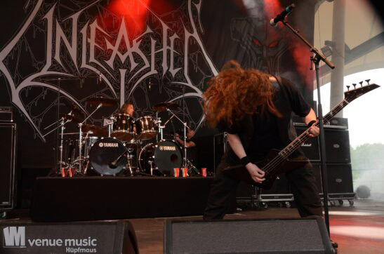 Als nächstes Waren Unleashed an der Reihe. Auf den Schwedischen Death-Metal hatten wir uns sehr gefreut. Und wie zu erwarten, lieferten Unleashed grandios ab. Seit über 30 Jahren stehen sie nun schon quasi in Urbesetzung auf der Bühne. Ihr letztes Album „No Sign of Life„(*) von 2021 war großartig – und lässt hoffen, dass es bald wieder Nachschub geben wird. Schließlich sind nun 3 Jahre rum ;)