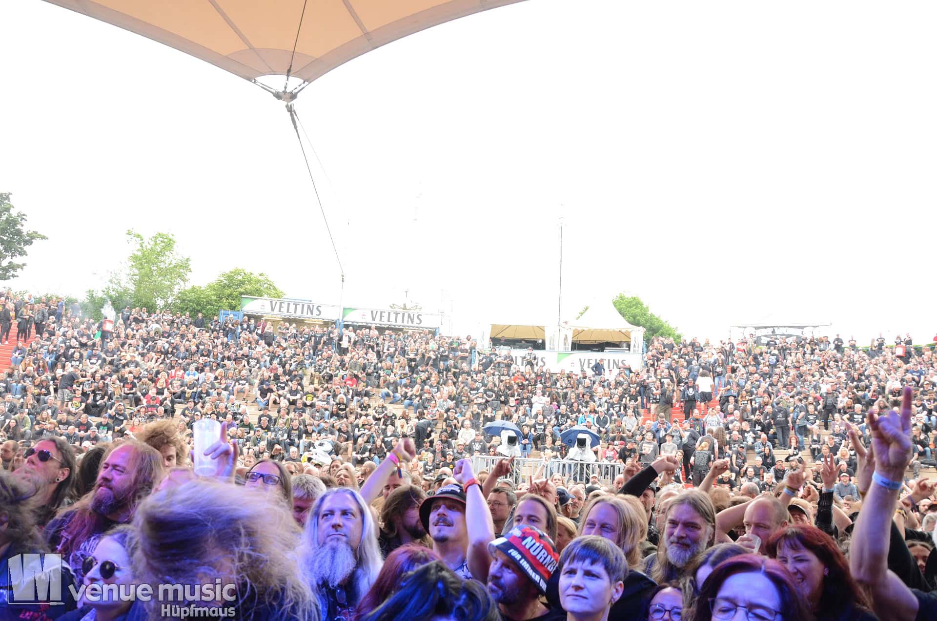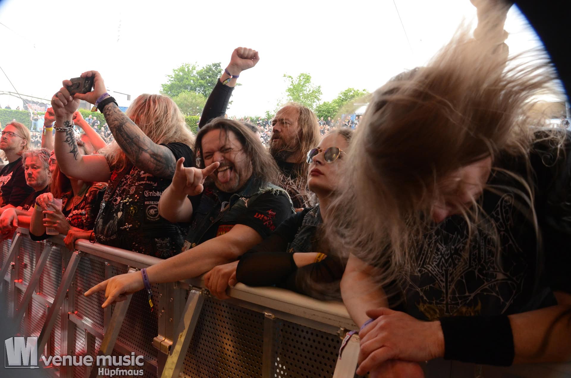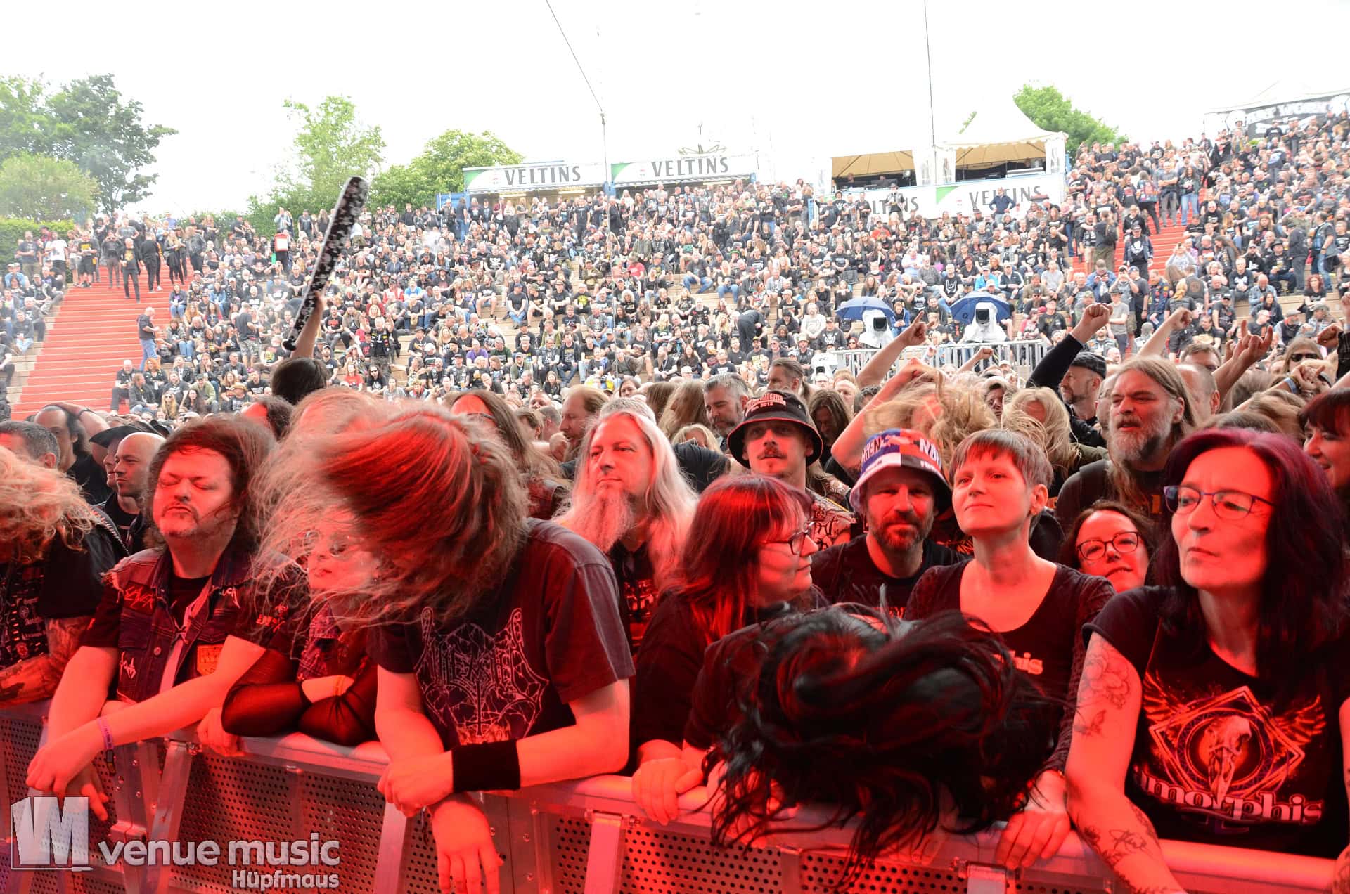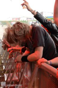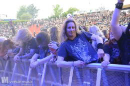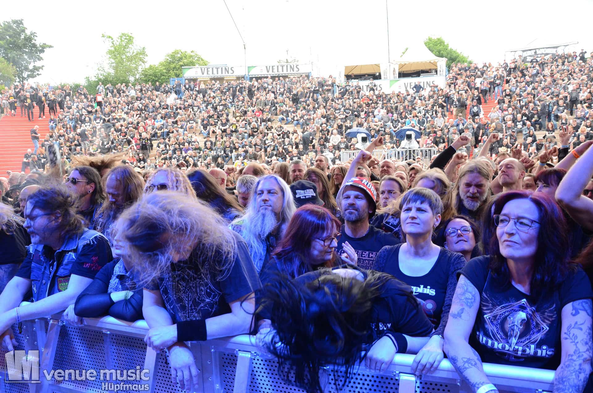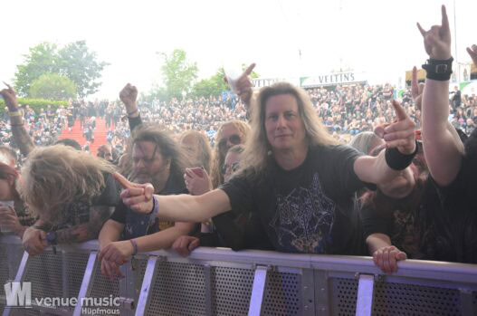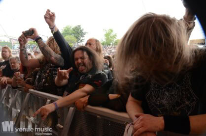 Glücklicherweise konnte ich meinen Kamerakram zumindest für die letzten 20 Minuten des Auftritts bei Bekannten auf der Tribüne lassen (danke dafür, da sieht man sich 15 Jahre quasi nicht und dann sitzt man durch Zufall quasi nebeneinander bei Unleashed) und mich ins Getümmel stürzen. Schließlich ist mittendrin statt nur dabei einfach geiler ;) Es gab nun auch den einen oder anderen Crowdsurfer und mächtig Bewegung im Publikum. So muss das sein. Geile Stimmung auf und vor der Bühne!