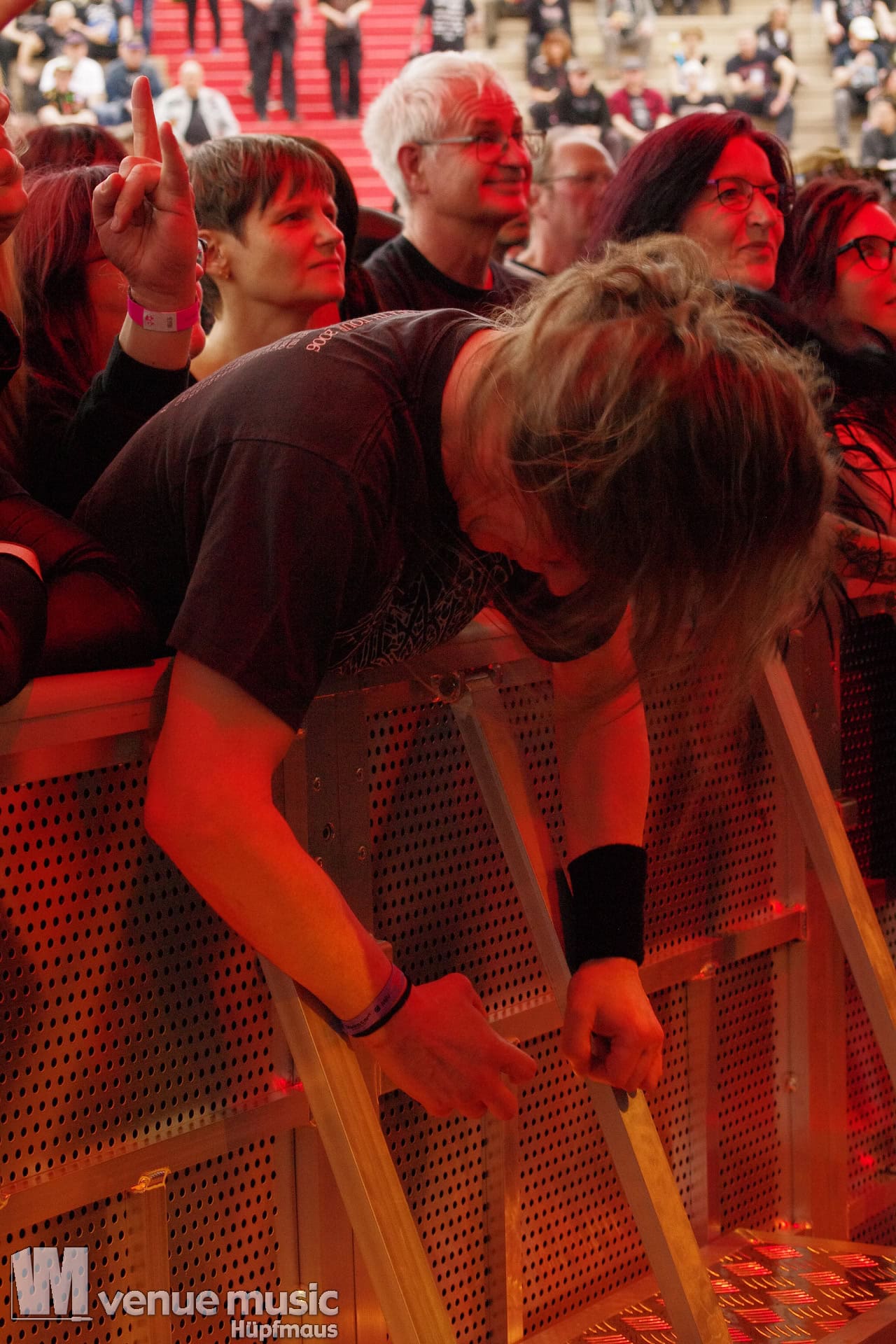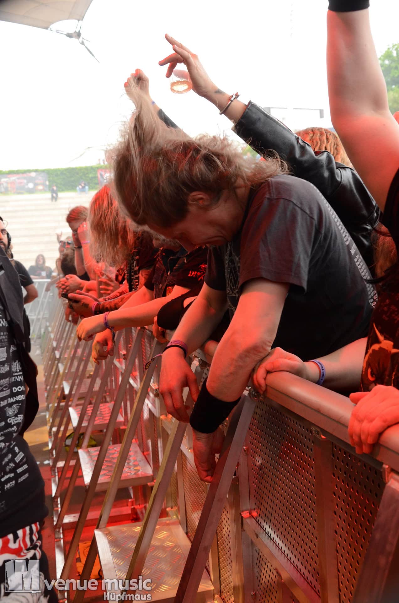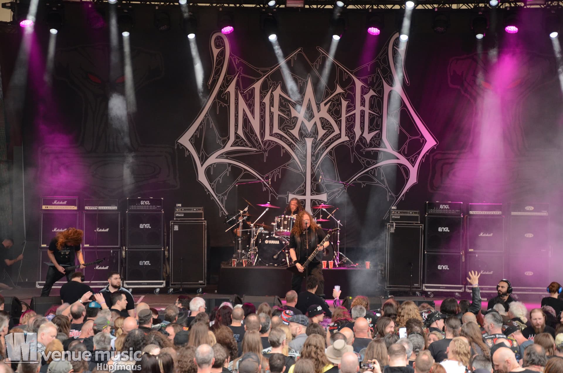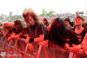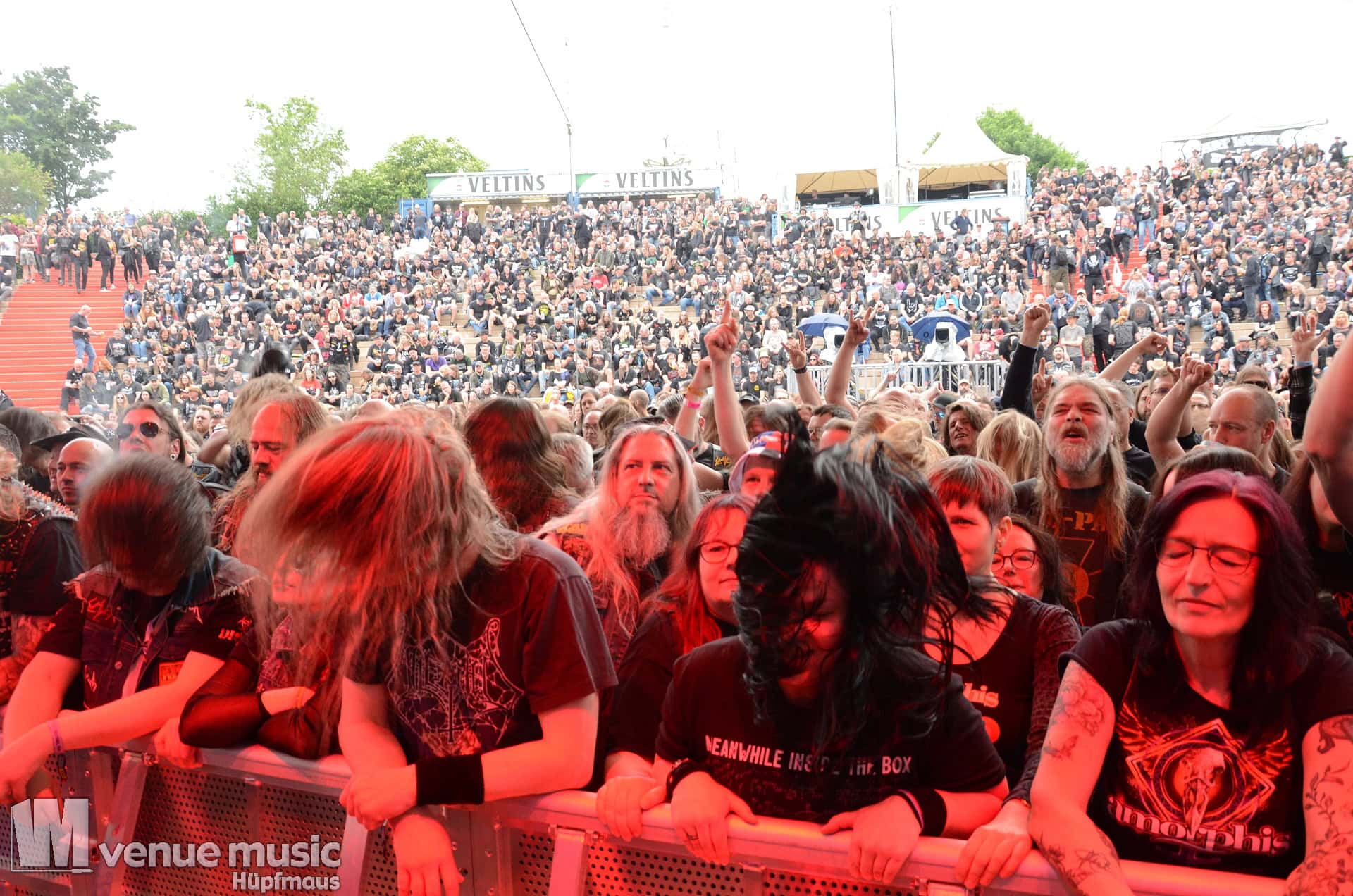Glücklicherweise konnte ich meinen Kamerakram zumindest für die letzten 20 Minuten des Auftritts bei Bekannten auf der Tribüne lassen (danke dafür, da sieht man sich 15 Jahre quasi nicht und dann sitzt man durch Zufall quasi nebeneinander bei Unleashed) und mich ins Getümmel stürzen. Schließlich ist mittendrin statt nur dabei einfach geiler ;) Es gab nun auch den einen oder anderen Crowdsurfer und mächtig Bewegung im Publikum. So muss das sein. Geile Stimmung auf und vor der Bühne!