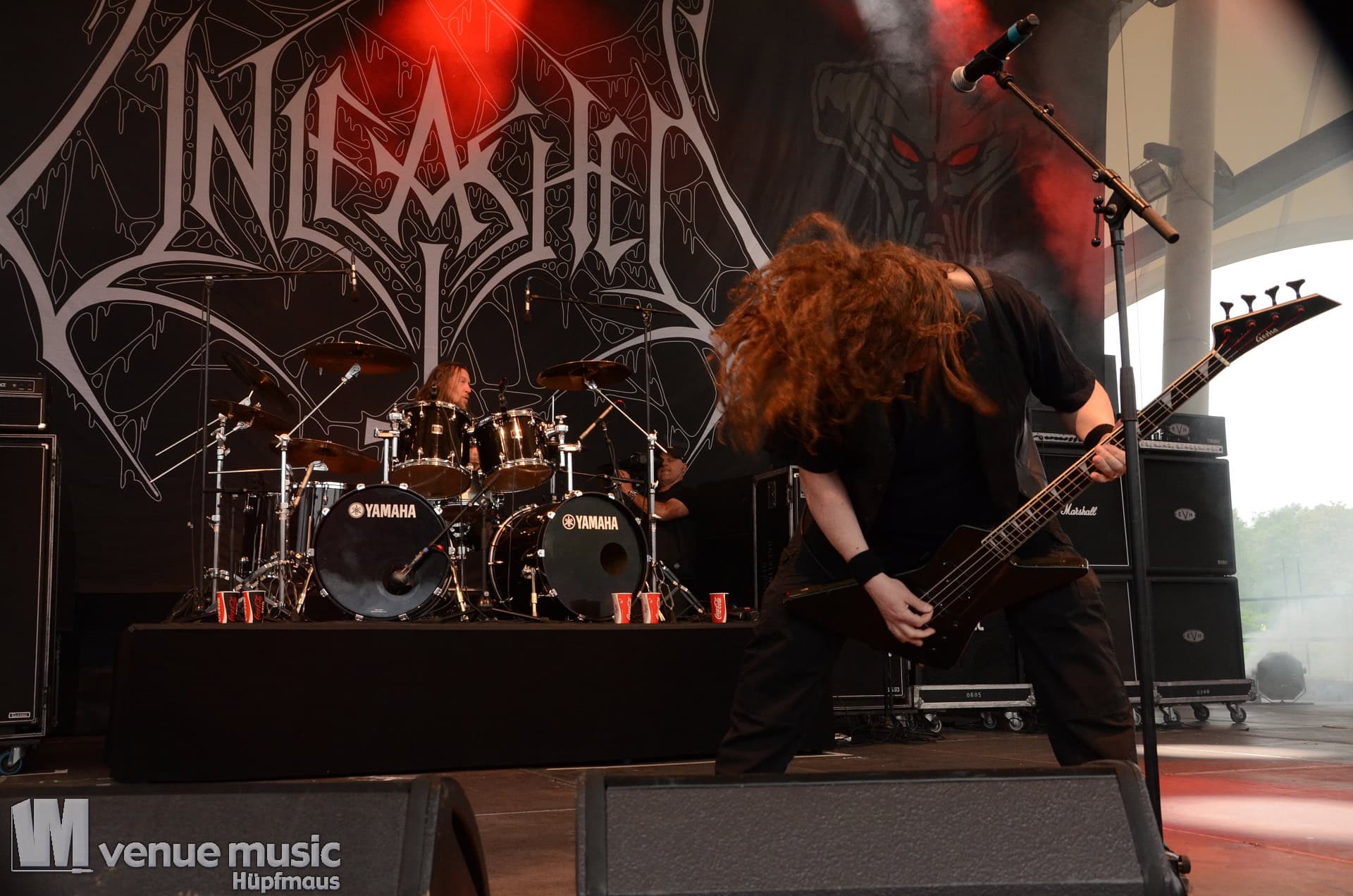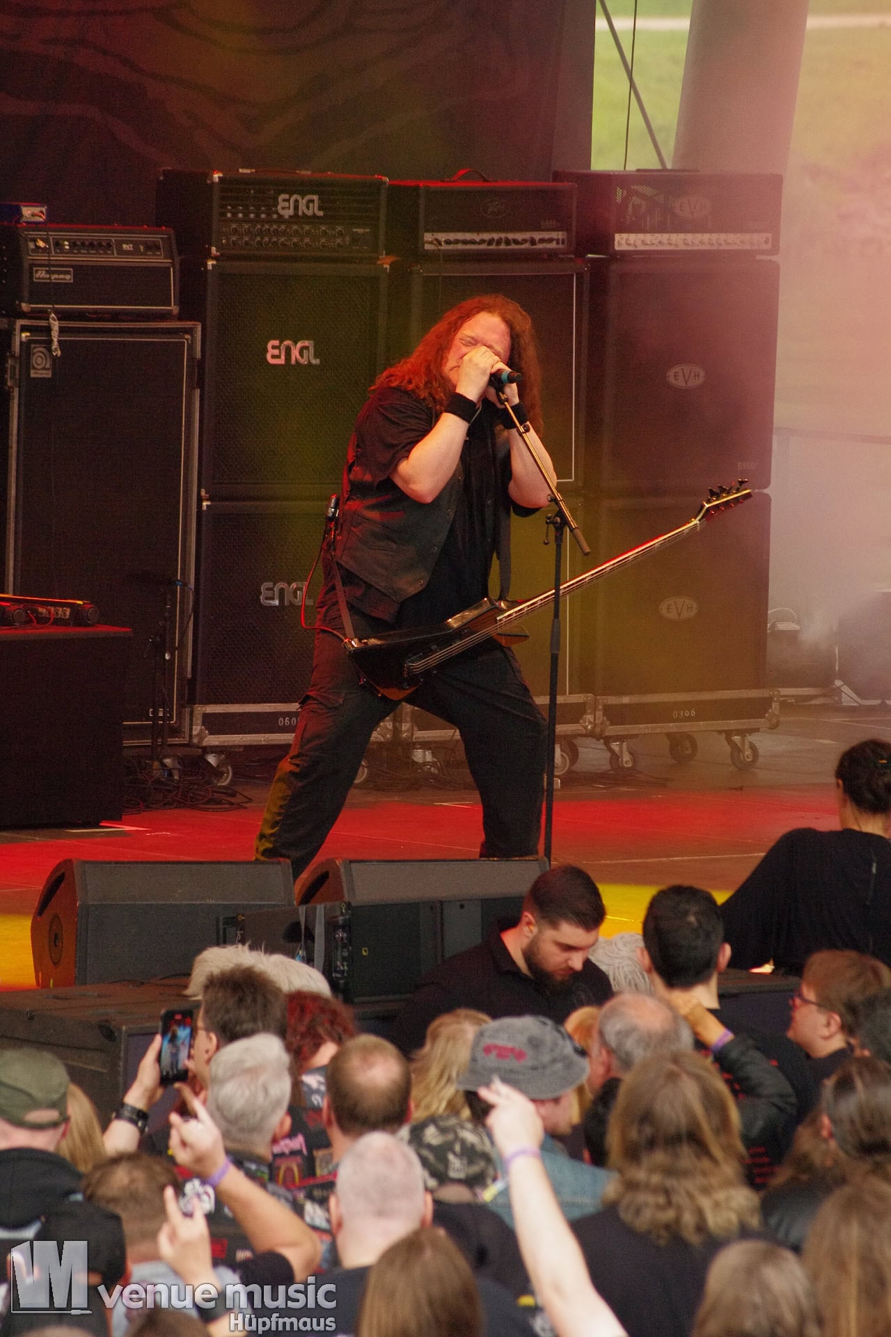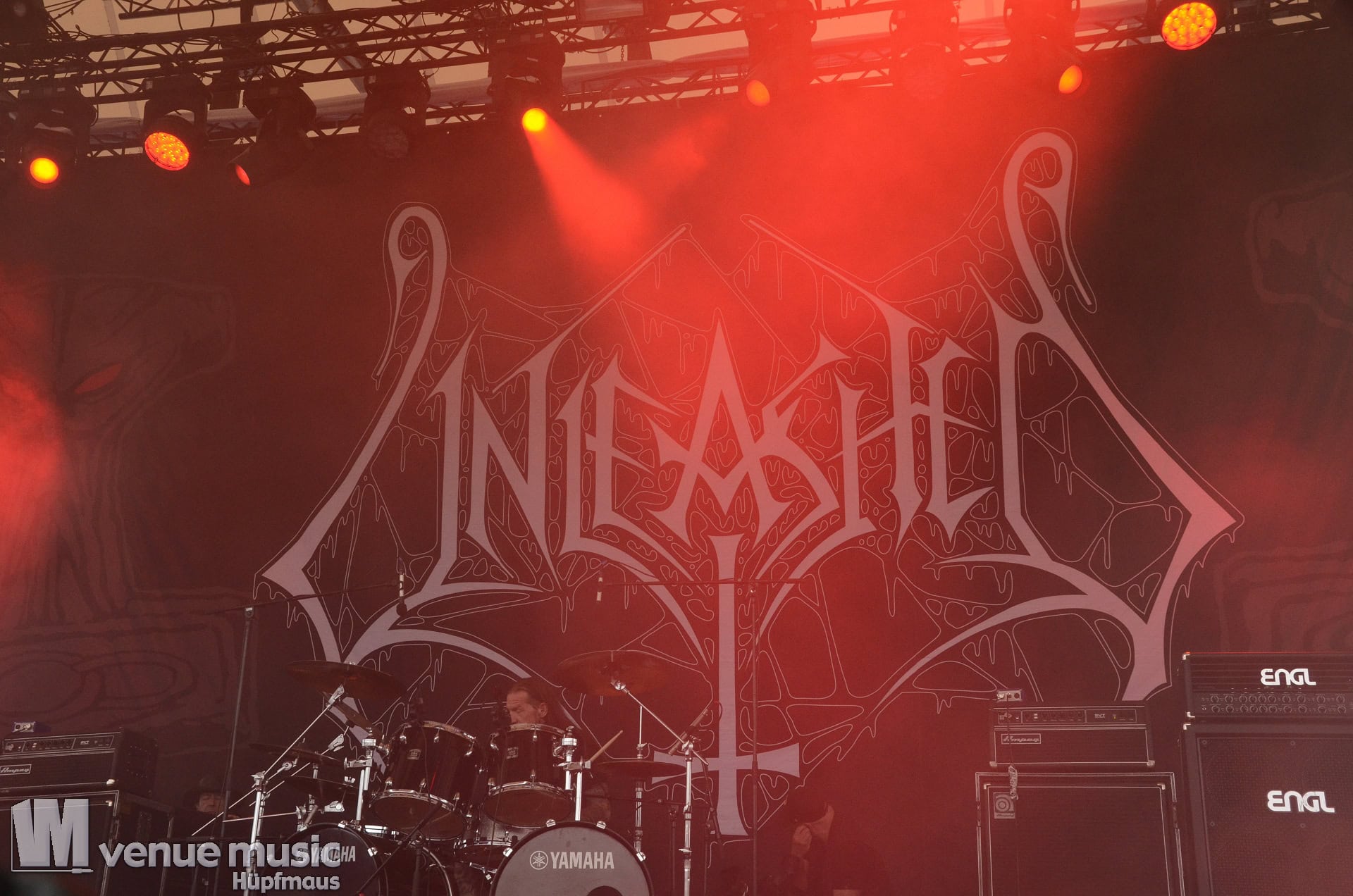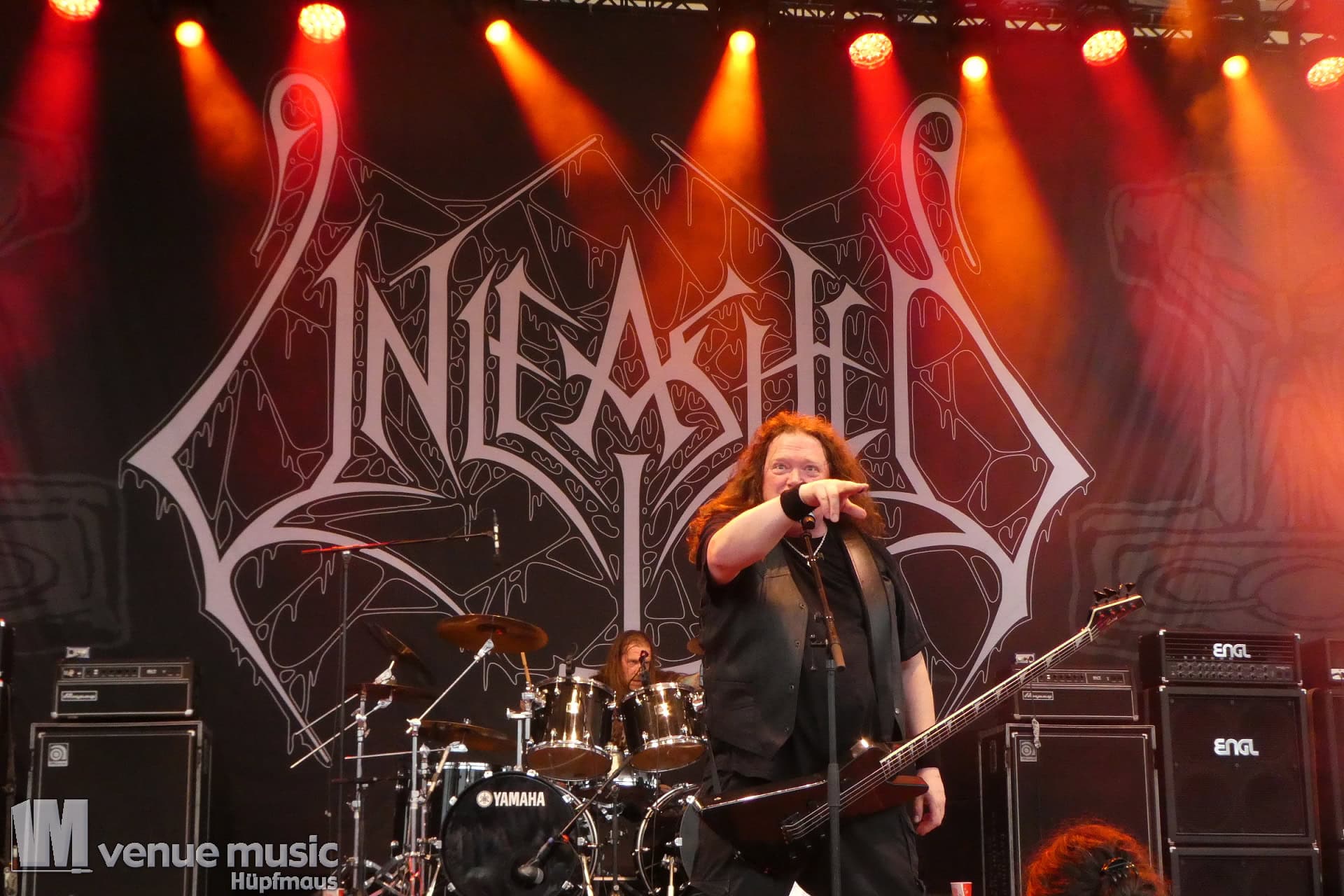 Glücklicherweise konnte ich meinen Kamerakram zumindest für die letzten 20 Minuten des Auftritts bei Bekannten auf der Tribüne lassen (danke dafür, da sieht man sich 15 Jahre quasi nicht und dann sitzt man durch Zufall quasi nebeneinander bei Unleashed) und mich ins Getümmel stürzen. Schließlich ist mittendrin statt nur dabei einfach geiler ;) Es gab nun auch den einen oder anderen Crowdsurfer und mächtig Bewegung im Publikum. So muss das sein. Geile Stimmung auf und vor der Bühne!