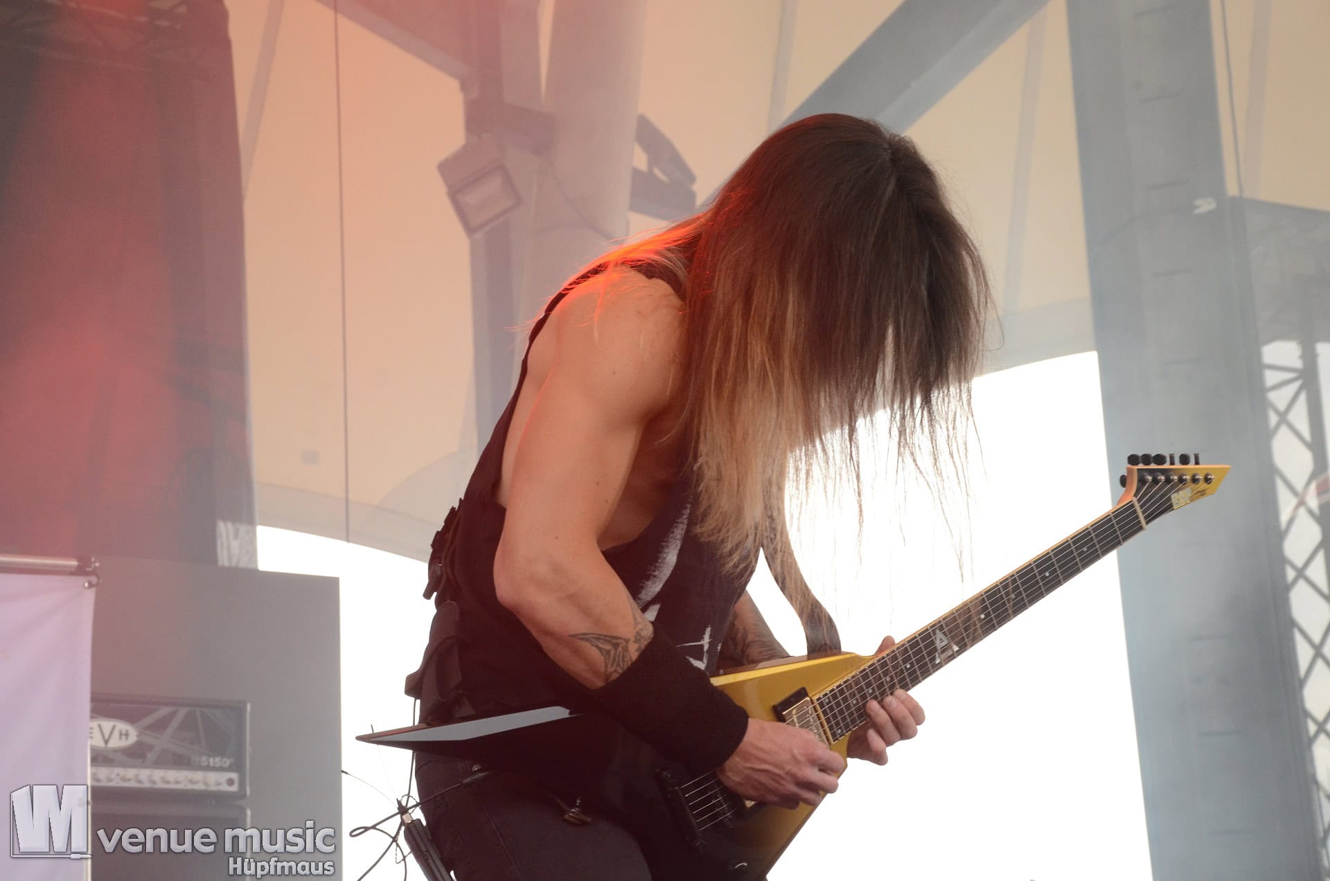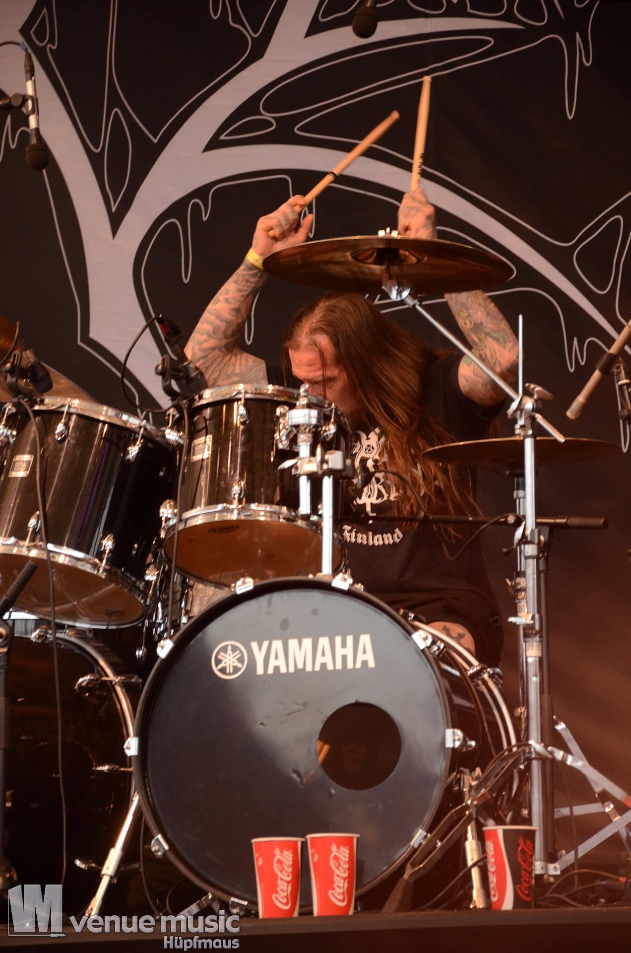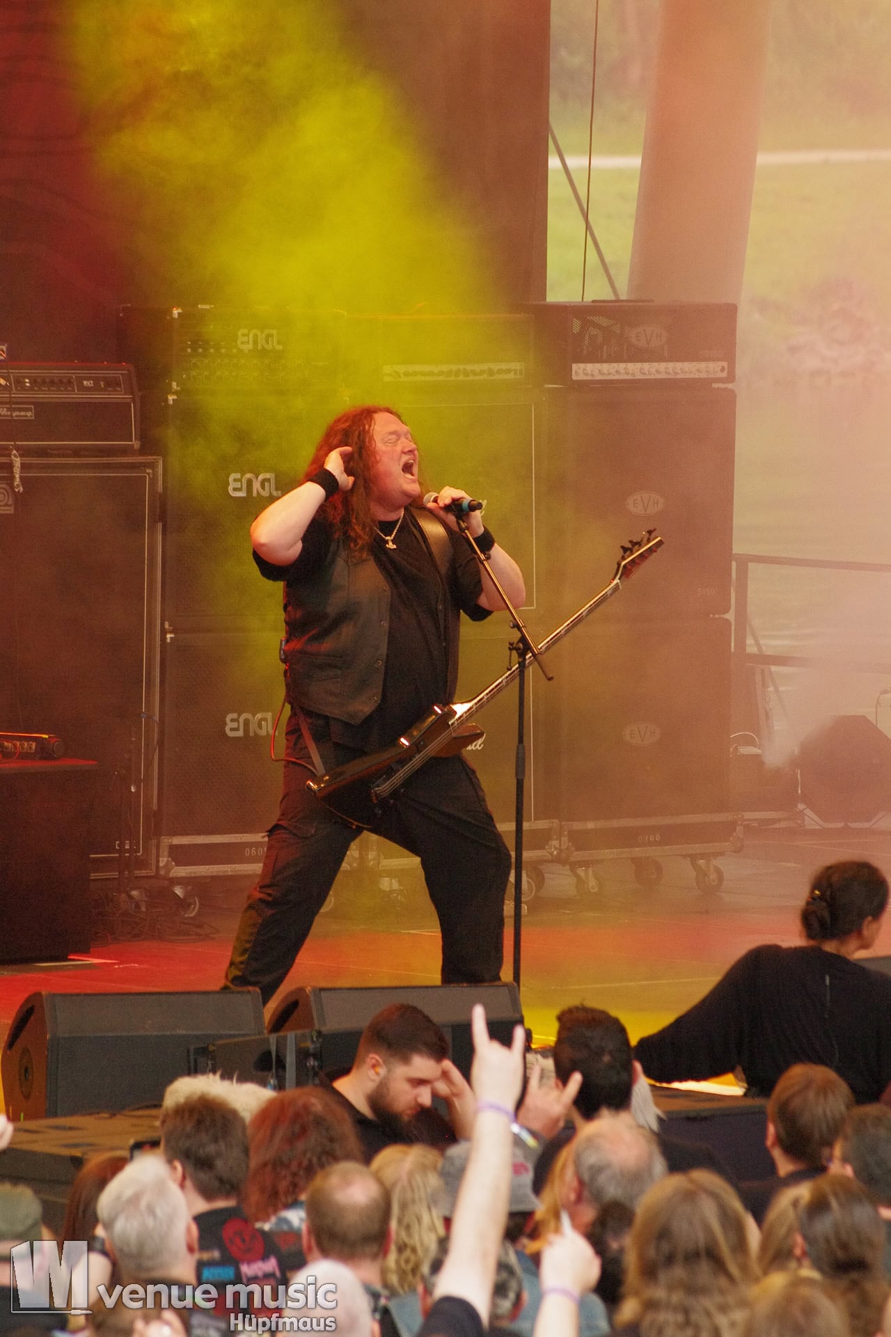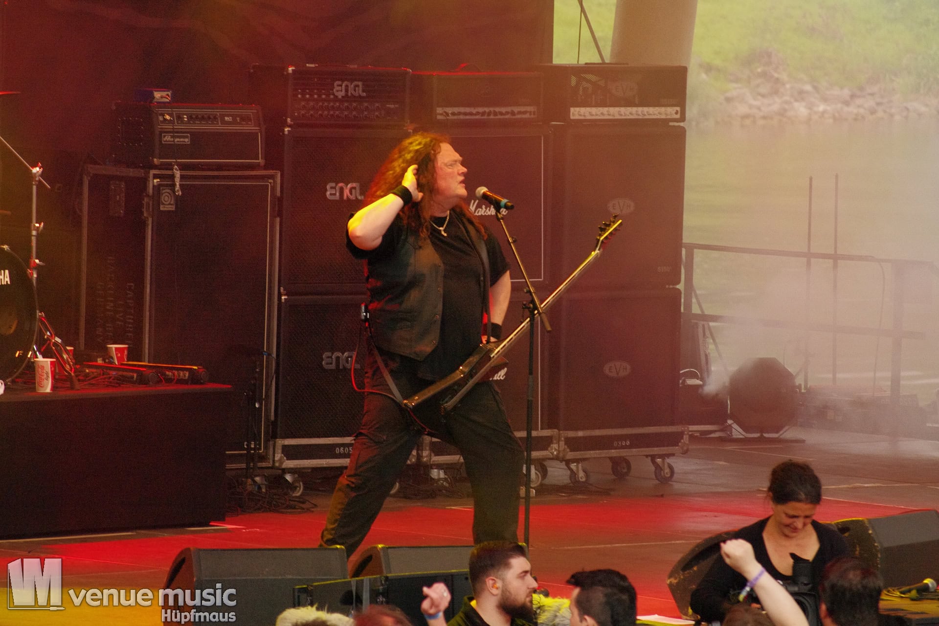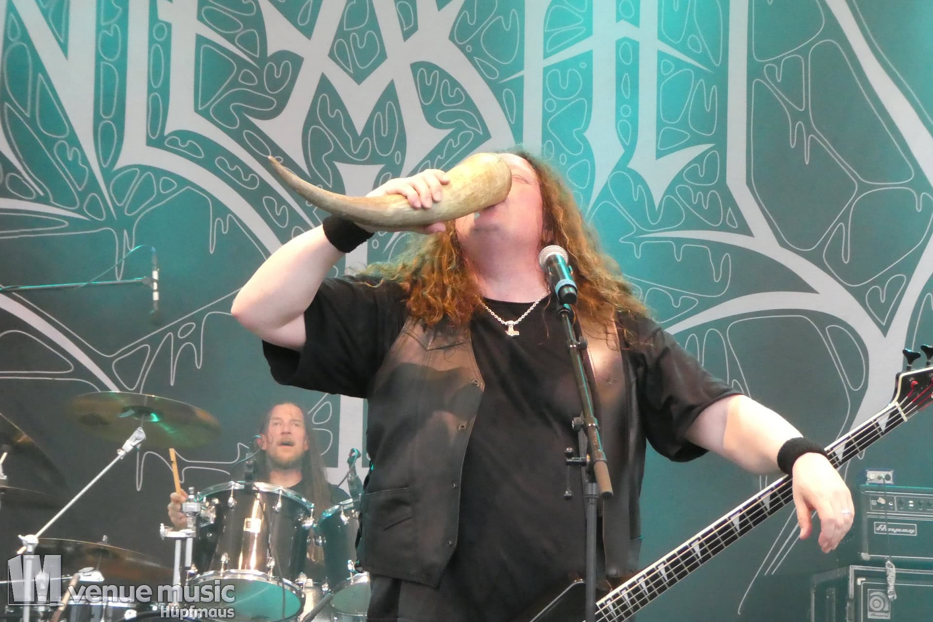 Glücklicherweise konnte ich meinen Kamerakram zumindest für die letzten 20 Minuten des Auftritts bei Bekannten auf der Tribüne lassen (danke dafür, da sieht man sich 15 Jahre quasi nicht und dann sitzt man durch Zufall quasi nebeneinander bei Unleashed) und mich ins Getümmel stürzen. Schließlich ist mittendrin statt nur dabei einfach geiler ;) Es gab nun auch den einen oder anderen Crowdsurfer und mächtig Bewegung im Publikum. So muss das sein. Geile Stimmung auf und vor der Bühne!