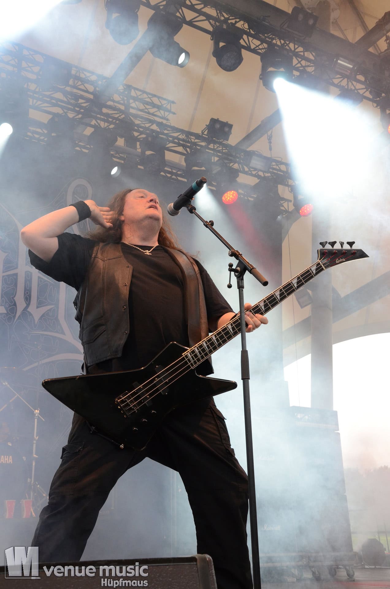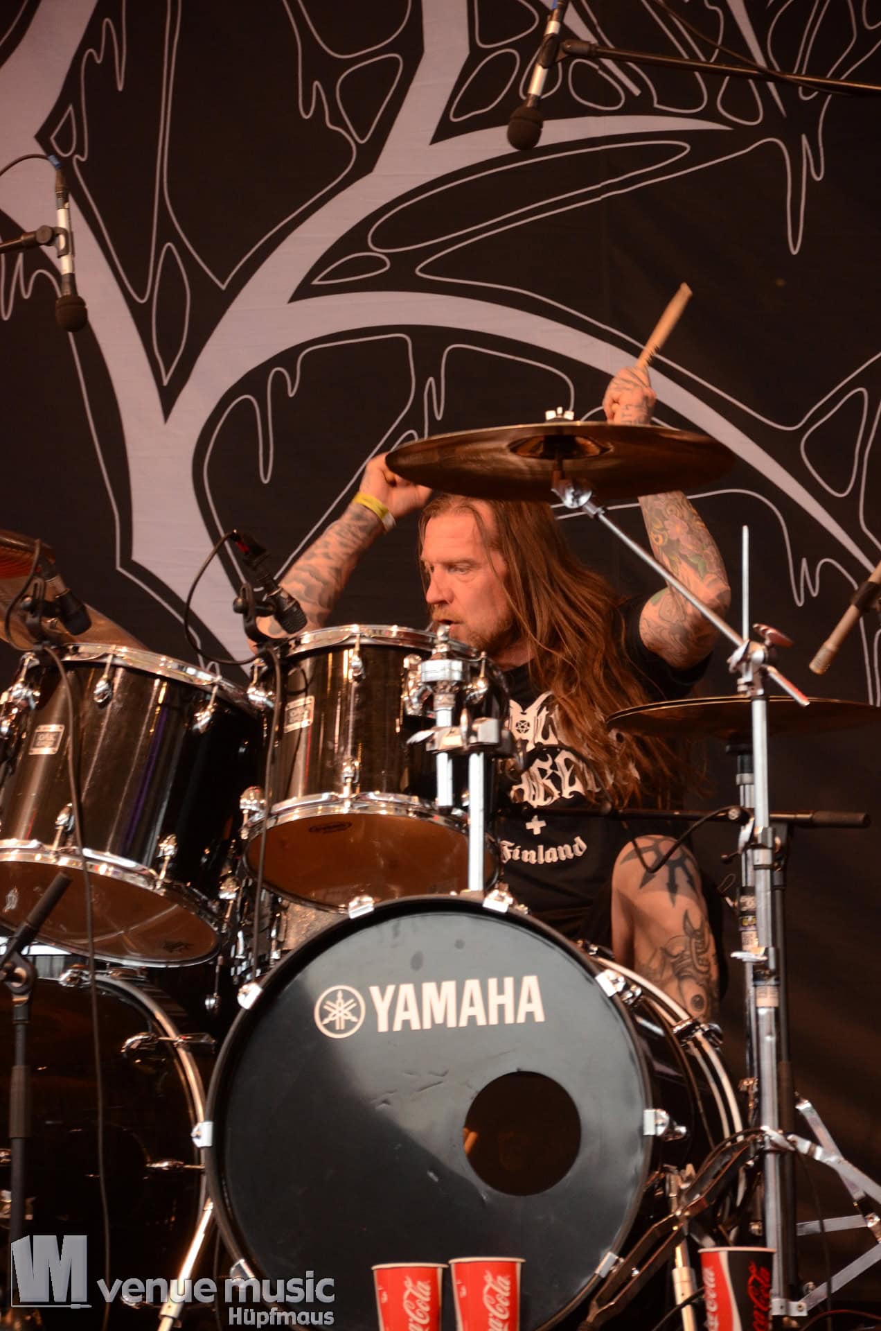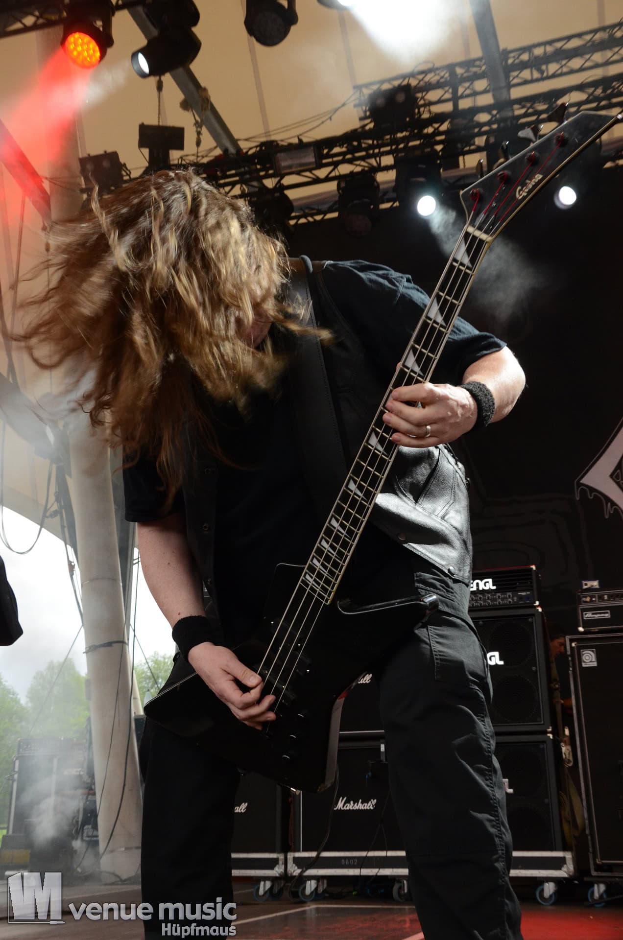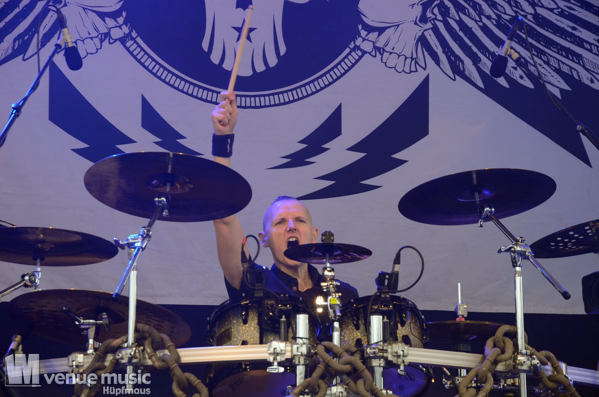 Glücklicherweise konnte ich meinen Kamerakram zumindest für die letzten 20 Minuten des Auftritts bei Bekannten auf der Tribüne lassen (danke dafür, da sieht man sich 15 Jahre quasi nicht und dann sitzt man durch Zufall quasi nebeneinander bei Unleashed) und mich ins Getümmel stürzen. Schließlich ist mittendrin statt nur dabei einfach geiler ;) Es gab nun auch den einen oder anderen Crowdsurfer und mächtig Bewegung im Publikum. So muss das sein. Geile Stimmung auf und vor der Bühne!