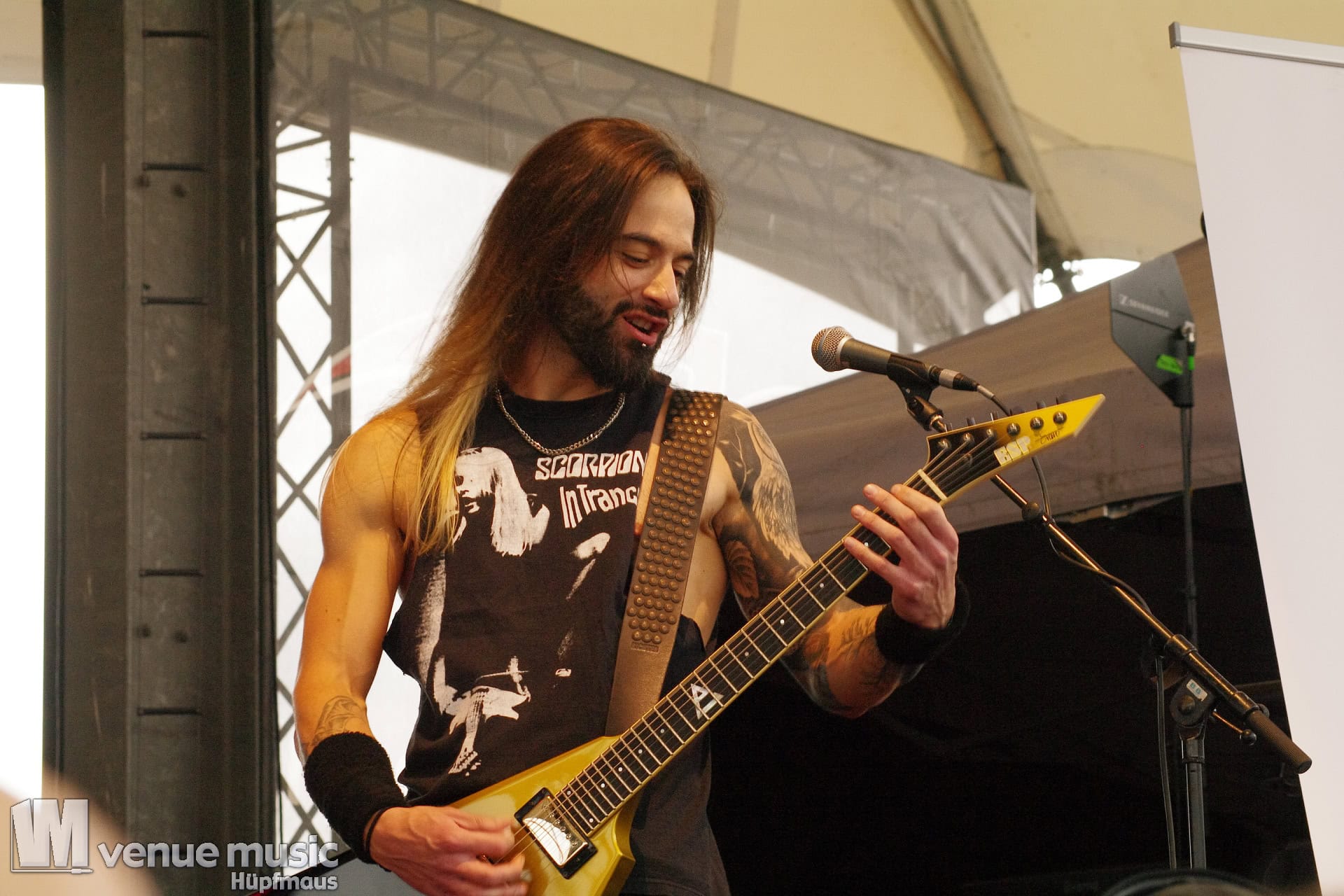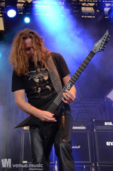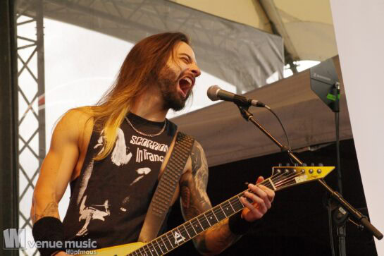 Aber schon bei ihrer Autogrammstunde dachte ich irgendwie „hmm… also den Bart, die Haare, irgendwie haste den doch schon mal gesehen??“ Die Rede ist von Markus Pohl an der Gitarre. Und auch die kam mir verdächtig bekannt vor. Hätte ich doch bloß mal was gesagt bei der Autogrammstunde.. Also dann flott gegoogelt und tatsächlich: hatte ich ihn als Crusader bei Warkings doch erst vor kurzem im Turock gesehen. So ein Mist, da hätte ich mir schön Bilder von unterschreiben lassen können. (Bei Warkings gabs leider nachher keine Autogramme mehr) Aber dass er dort auch spielt, das wusste ich leider nicht vorher. Wieder was gelernt ;)