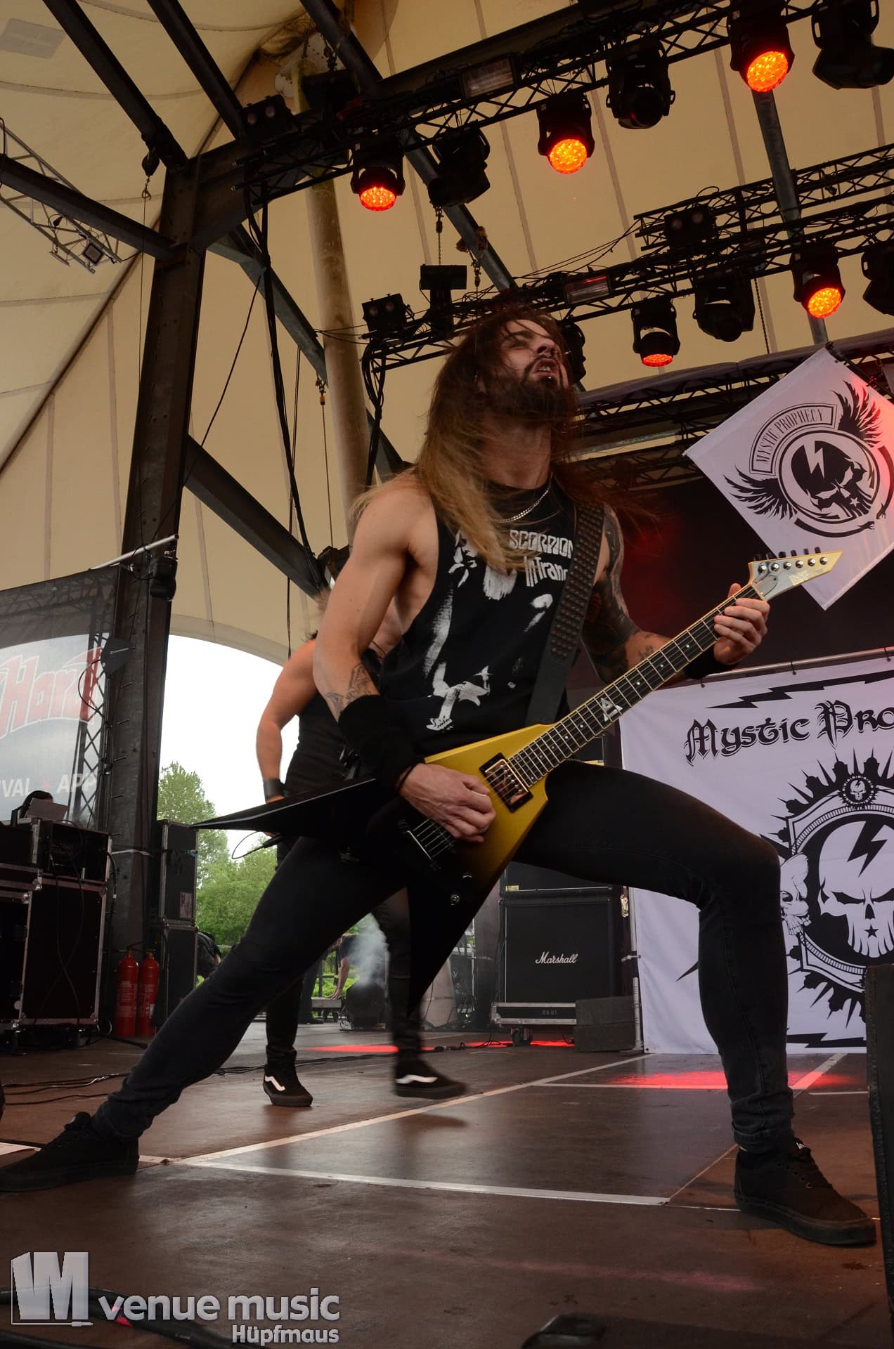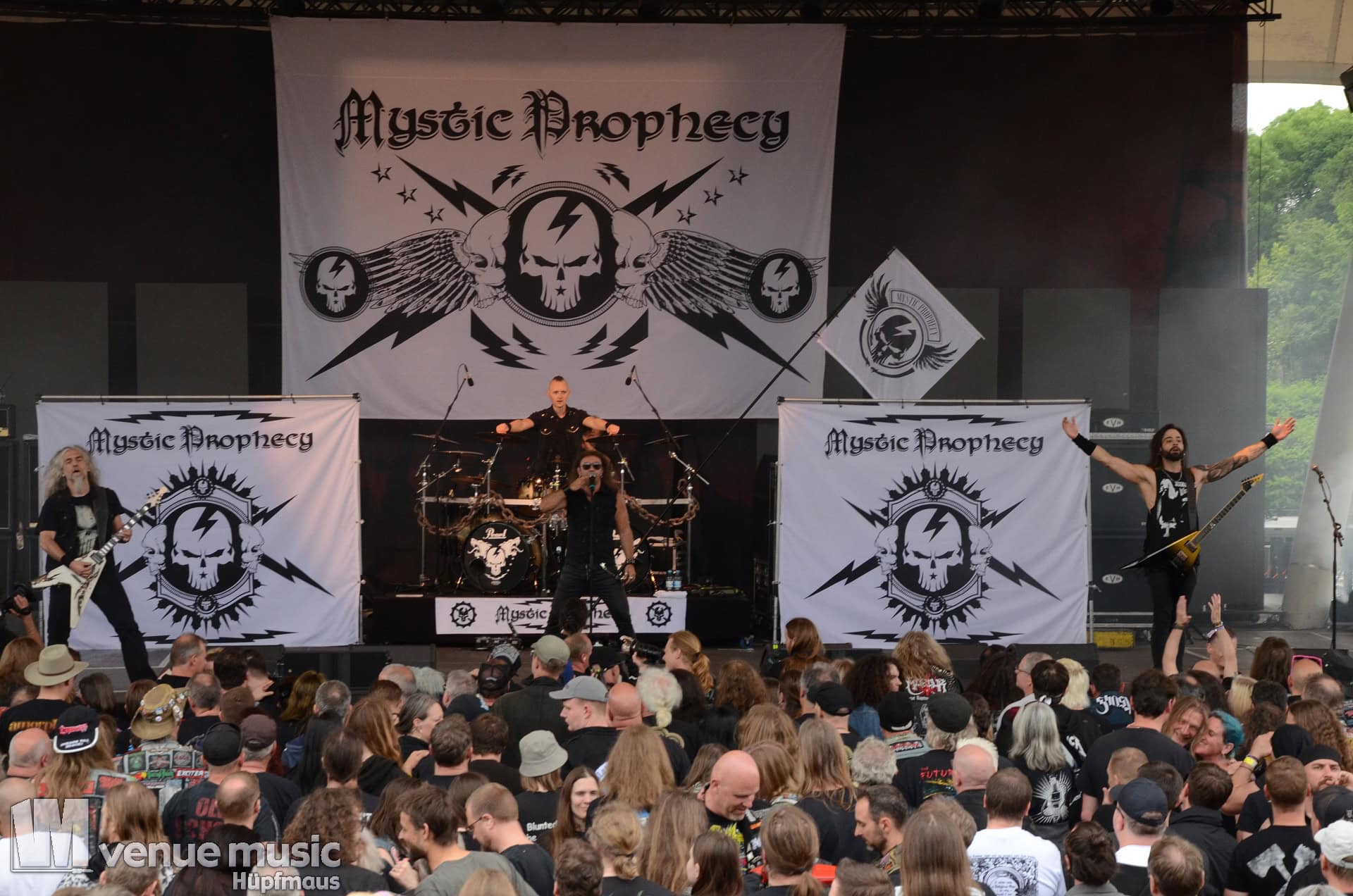 Weiter ging es auf dem Rock Hard Festival mit Mystic Prophecy. Die deutschen Power-Metaller stehen schon (mit einigen Line-Up Wechseln) seit 2001 auf der Bühne und haben 2023 mit „Hellriot„(*) ihr zwölftes Studioalbum veröffentlicht.