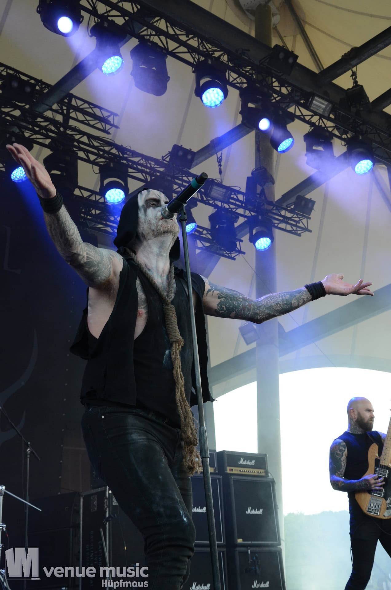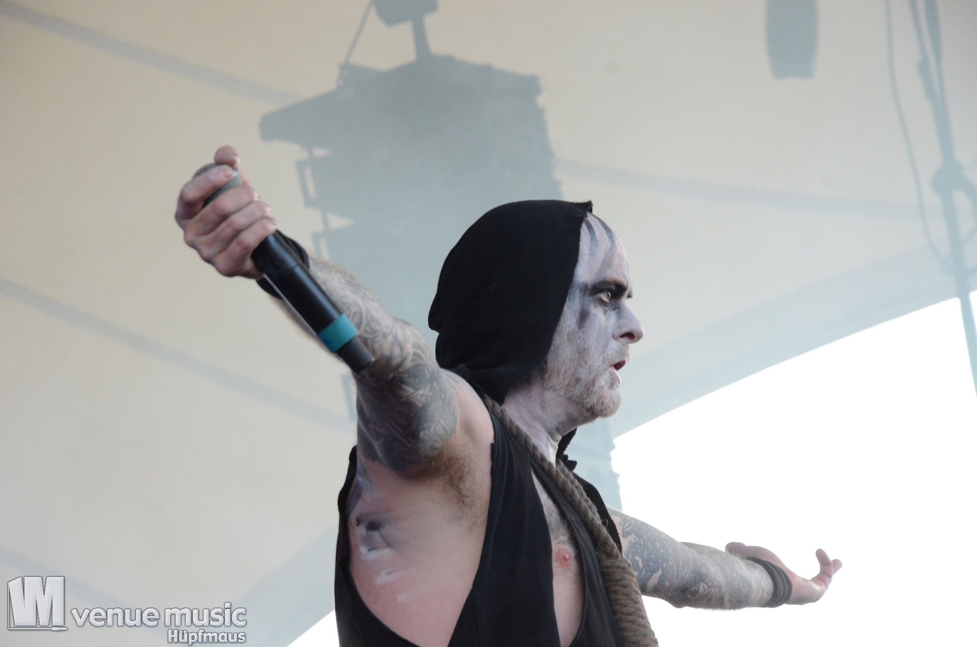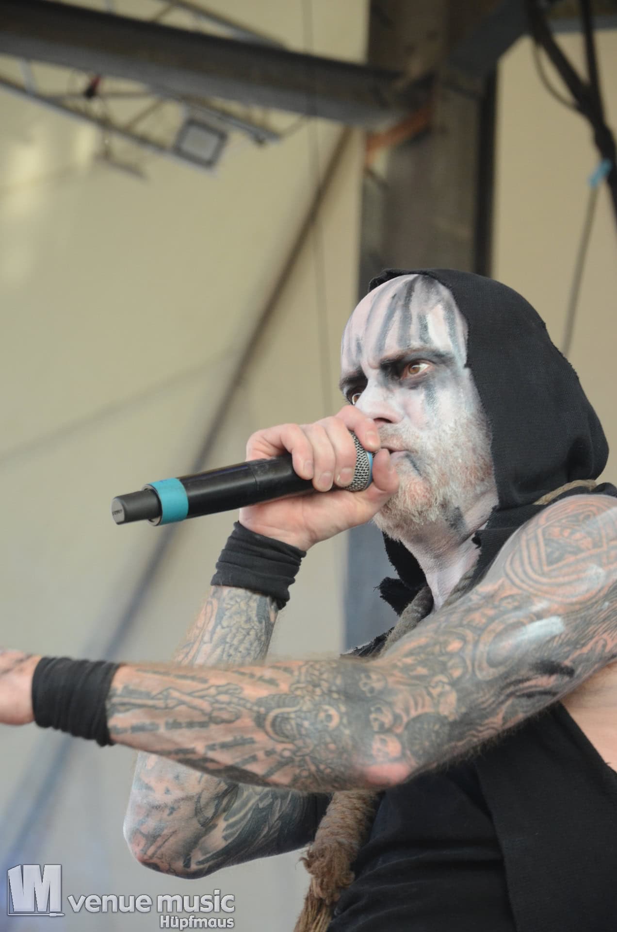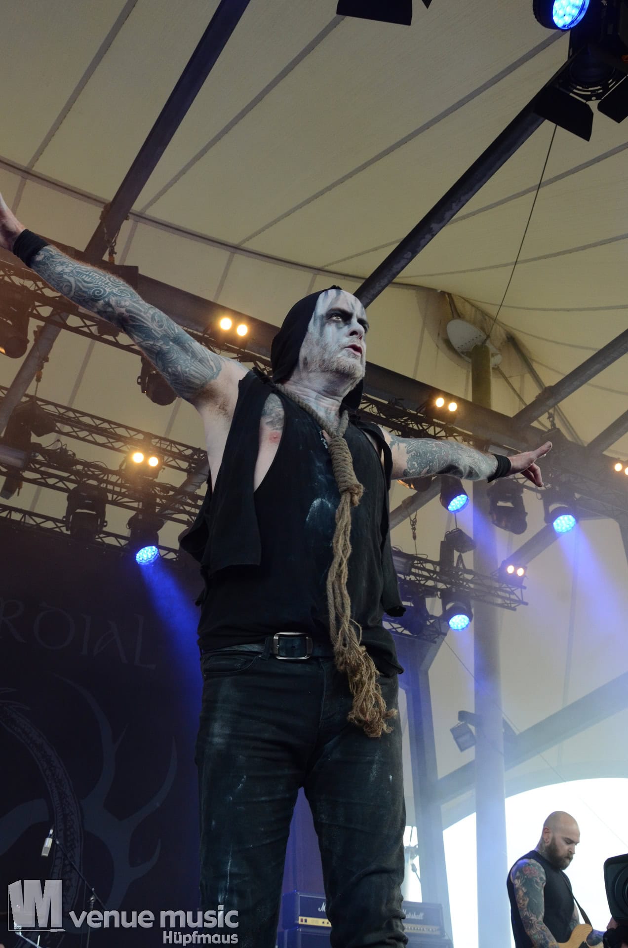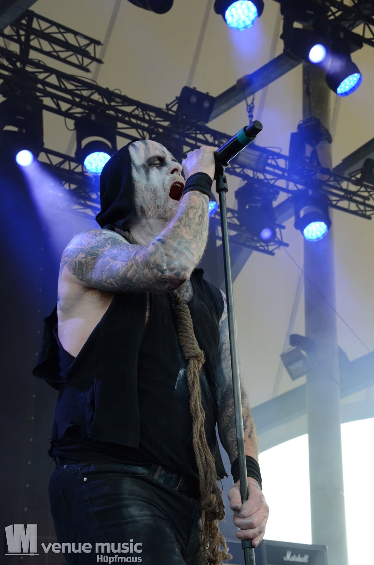 Für Primordial war es eigentlich noch viel zu früh am Tag, hätte die Musik stimmungsmäßig doch eher in die Abendstunden gepasst. Doch davon ließen sich die Iren nicht abschrecken und glänzten mit ihrer Mischung aus Black, Doom, Folk und einer Portion Düsternis. Warm gesungen hatte sich Alan „Naihmass Nemtheanga“ Averill ja bereits am Vortag mit seiner Band Dread Sovereign. Eine Stunde wussten sie gekonnt das Publikum mit Songs wie „As Rome Burns“, „Empire Falls“ oder „To Hell Or The Hangman“ (und das auch noch sehr symbolisch) zu überzeugen.