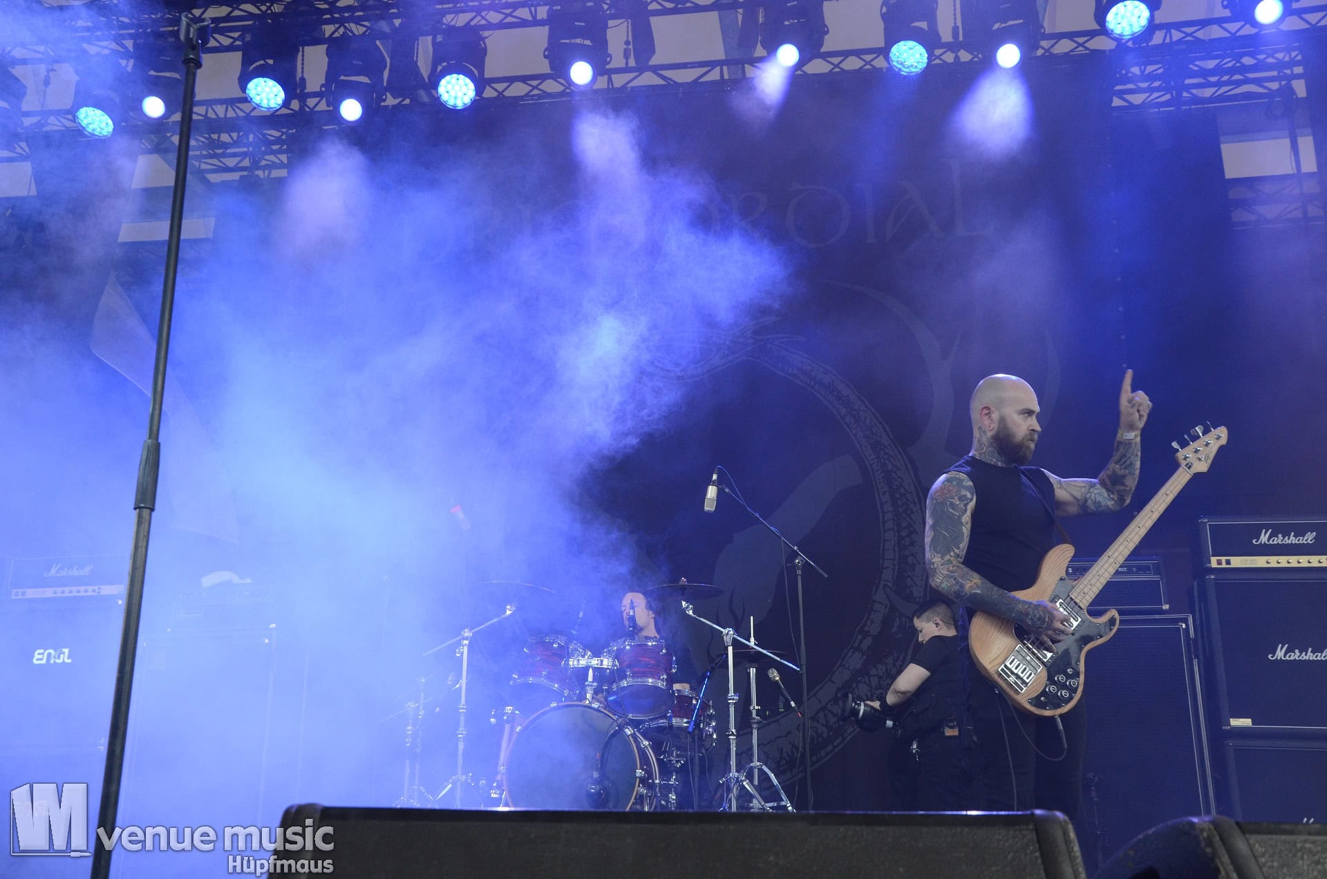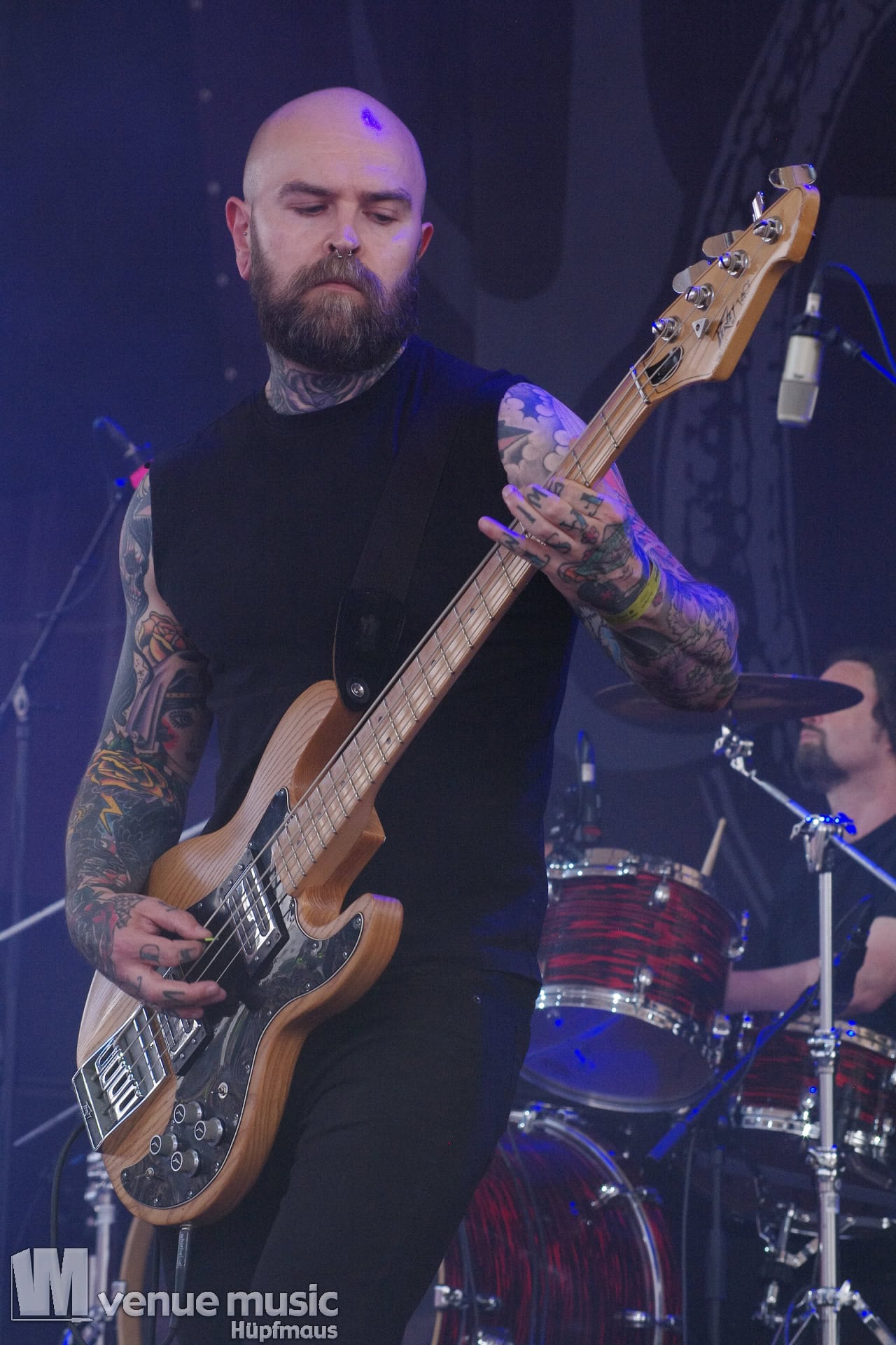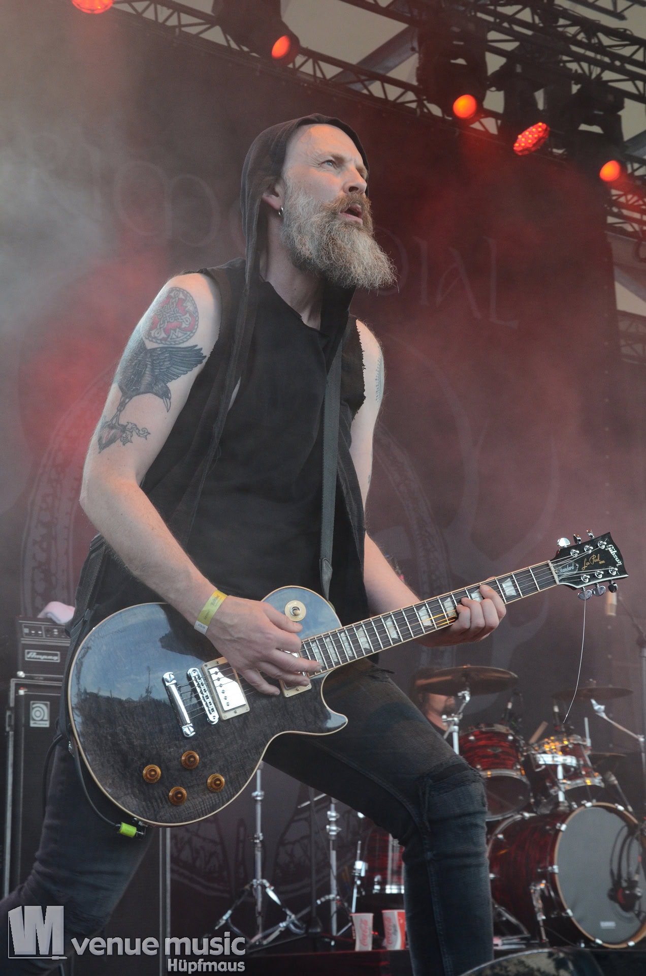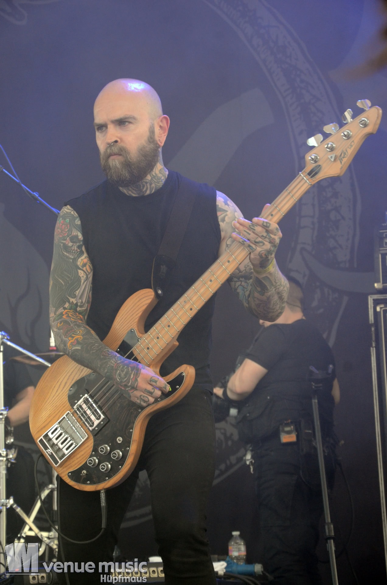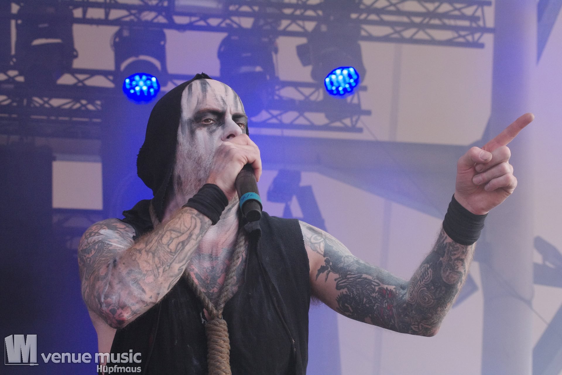Für Primordial war es eigentlich noch viel zu früh am Tag, hätte die Musik stimmungsmäßig doch eher in die Abendstunden gepasst. Doch davon ließen sich die Iren nicht abschrecken und glänzten mit ihrer Mischung aus Black, Doom, Folk und einer Portion Düsternis. Warm gesungen hatte sich Alan „Naihmass Nemtheanga“ Averill ja bereits am Vortag mit seiner Band Dread Sovereign. Eine Stunde wussten sie gekonnt das Publikum mit Songs wie „As Rome Burns“, „Empire Falls“ oder „To Hell Or The Hangman“ (und das auch noch sehr symbolisch) zu überzeugen.