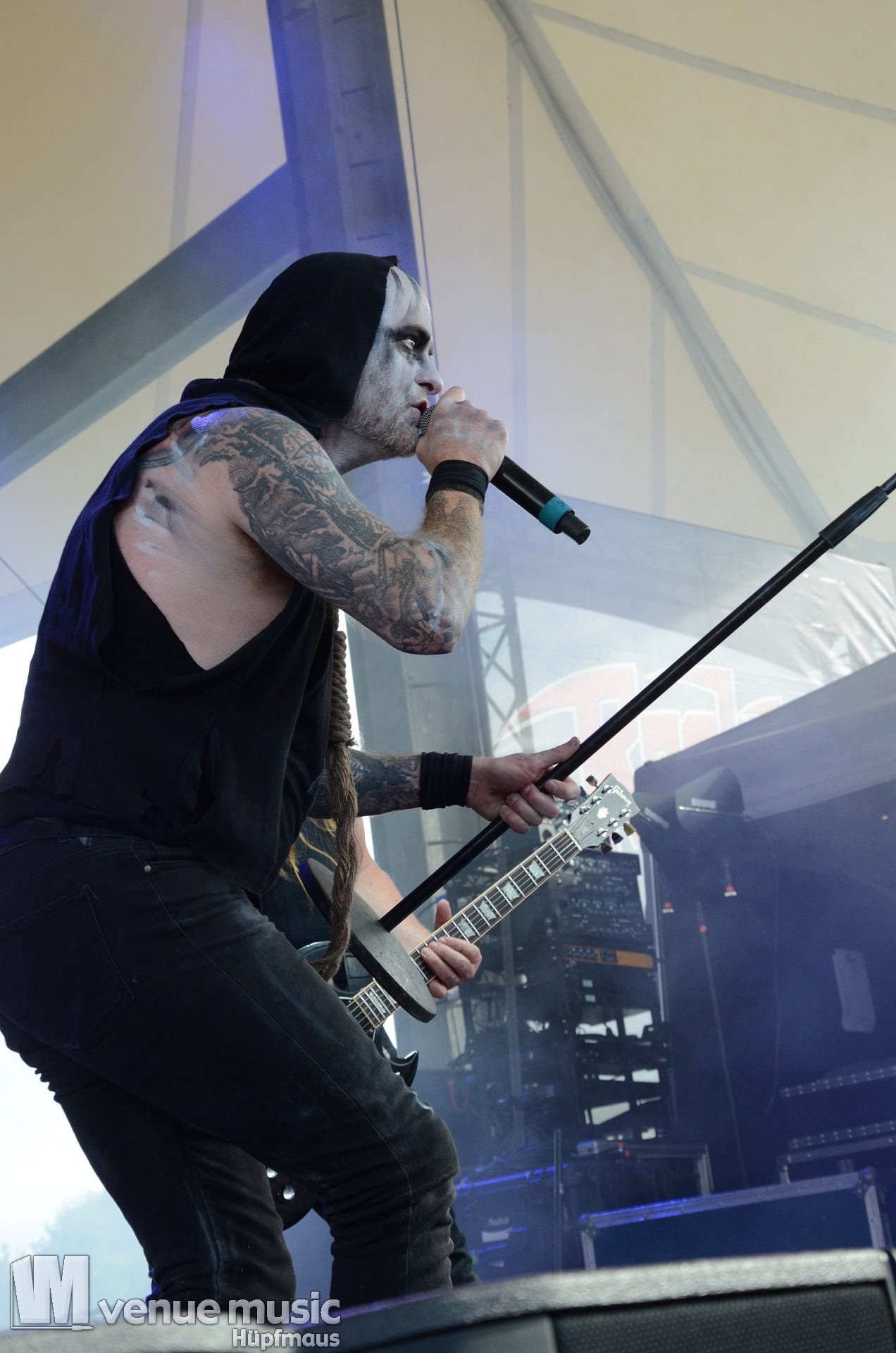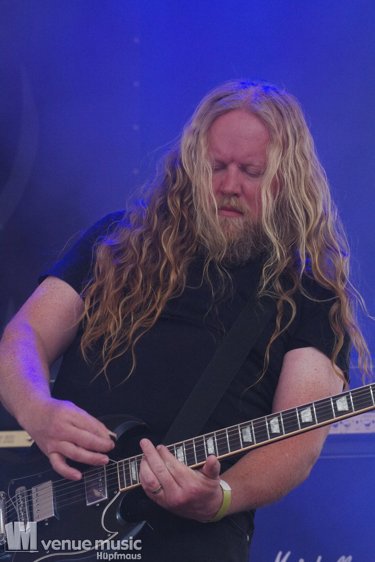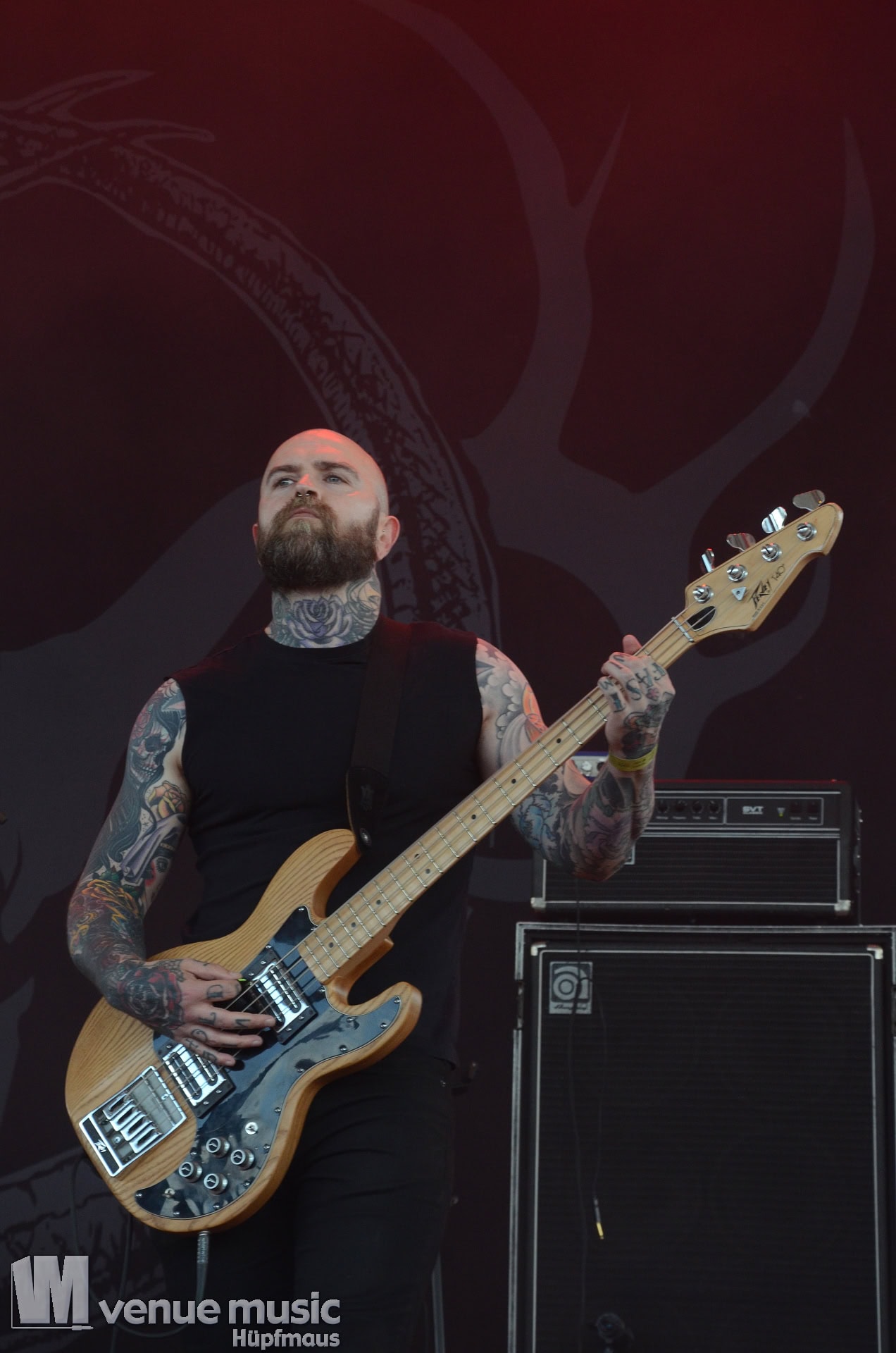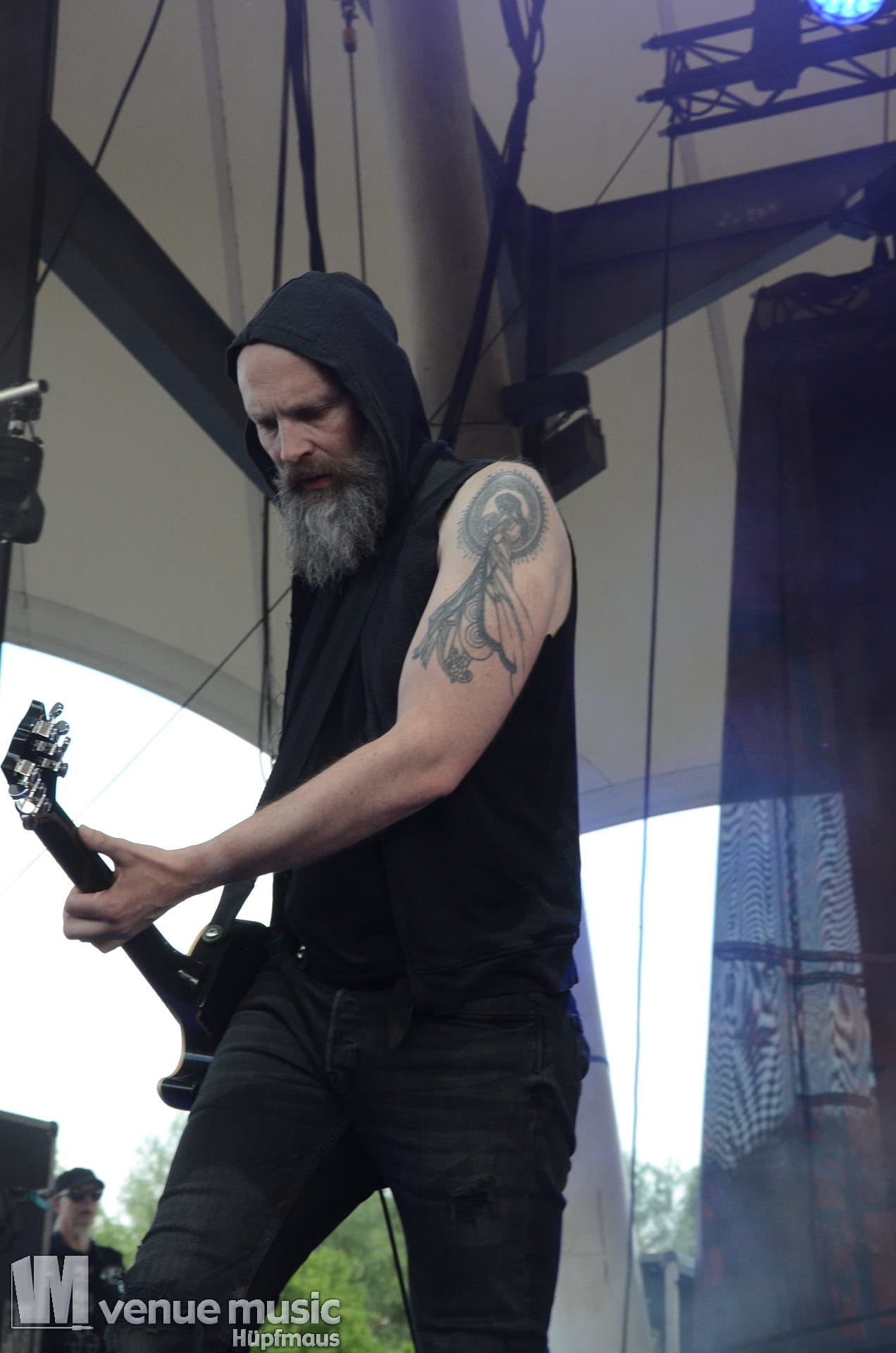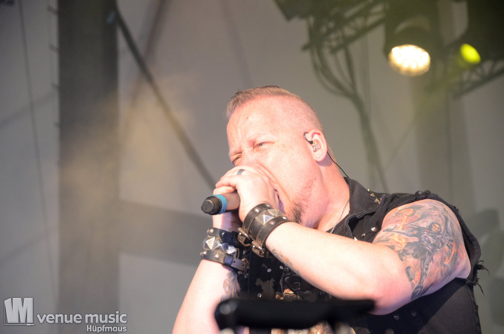 Für Primordial war es eigentlich noch viel zu früh am Tag, hätte die Musik stimmungsmäßig doch eher in die Abendstunden gepasst. Doch davon ließen sich die Iren nicht abschrecken und glänzten mit ihrer Mischung aus Black, Doom, Folk und einer Portion Düsternis. Warm gesungen hatte sich Alan „Naihmass Nemtheanga“ Averill ja bereits am Vortag mit seiner Band Dread Sovereign. Eine Stunde wussten sie gekonnt das Publikum mit Songs wie „As Rome Burns“, „Empire Falls“ oder „To Hell Or The Hangman“ (und das auch noch sehr symbolisch) zu überzeugen.