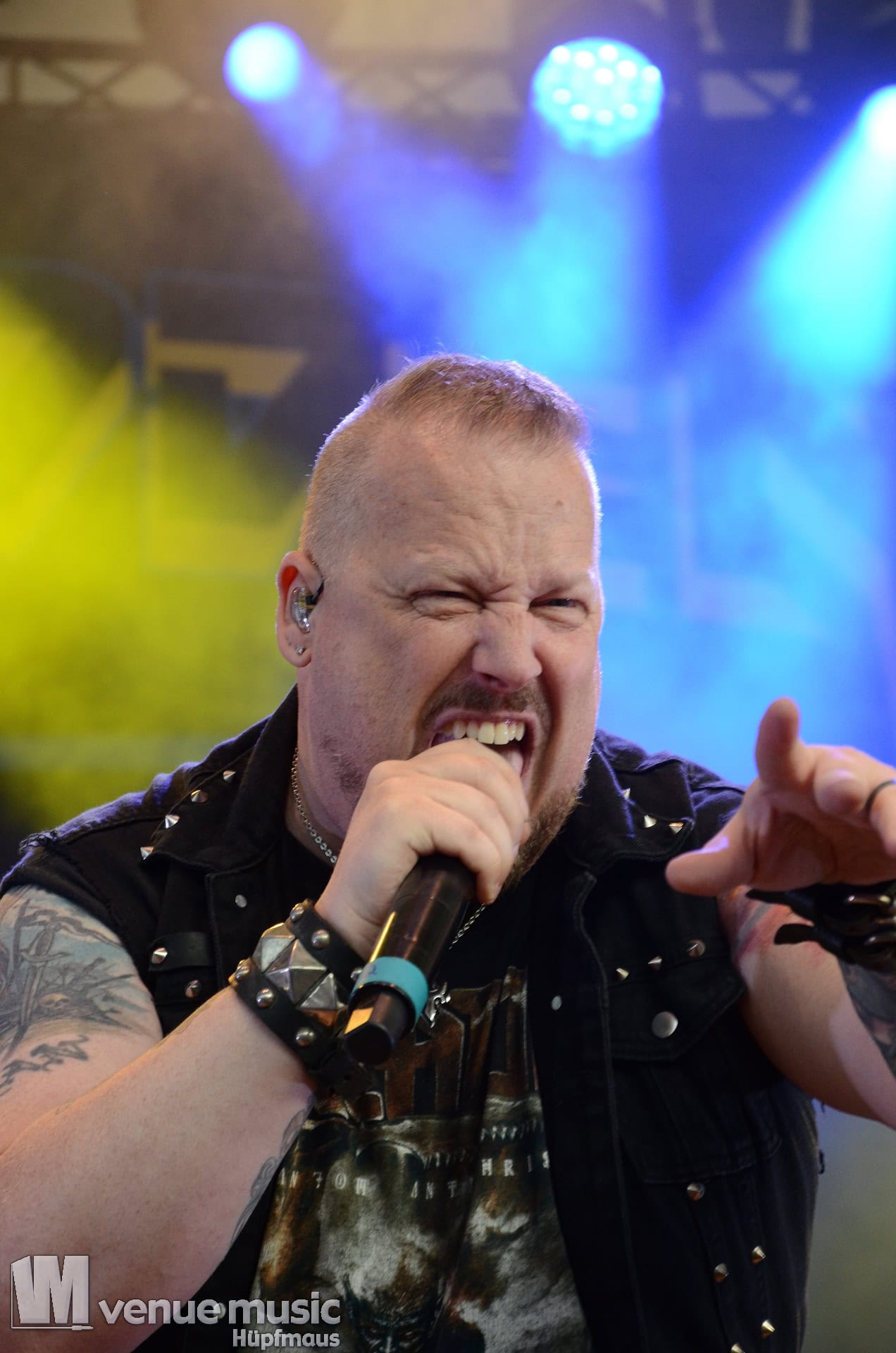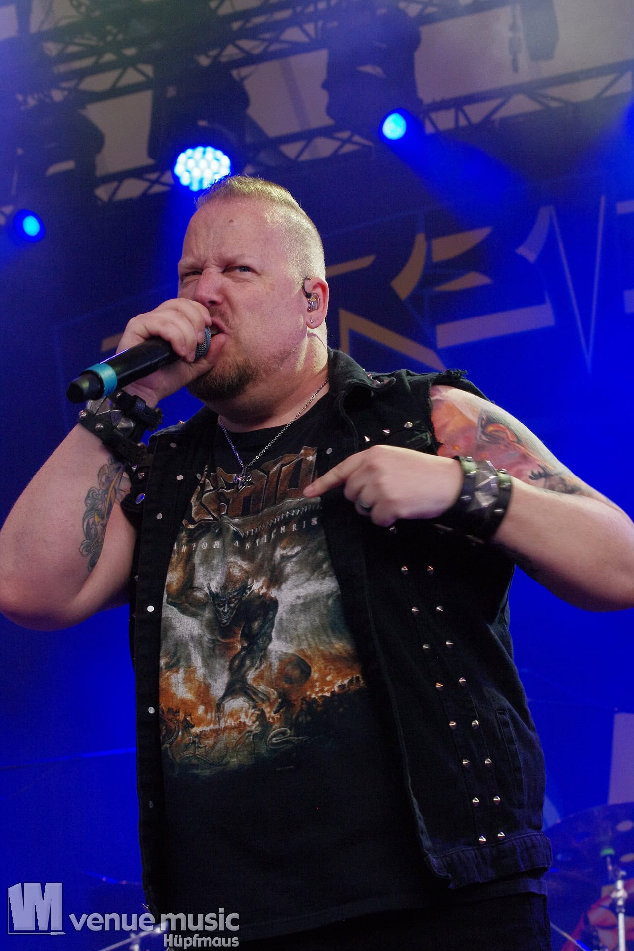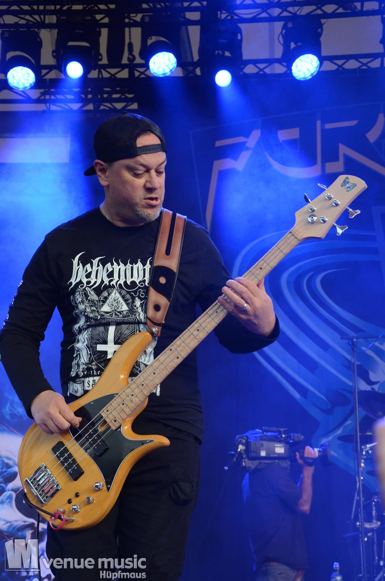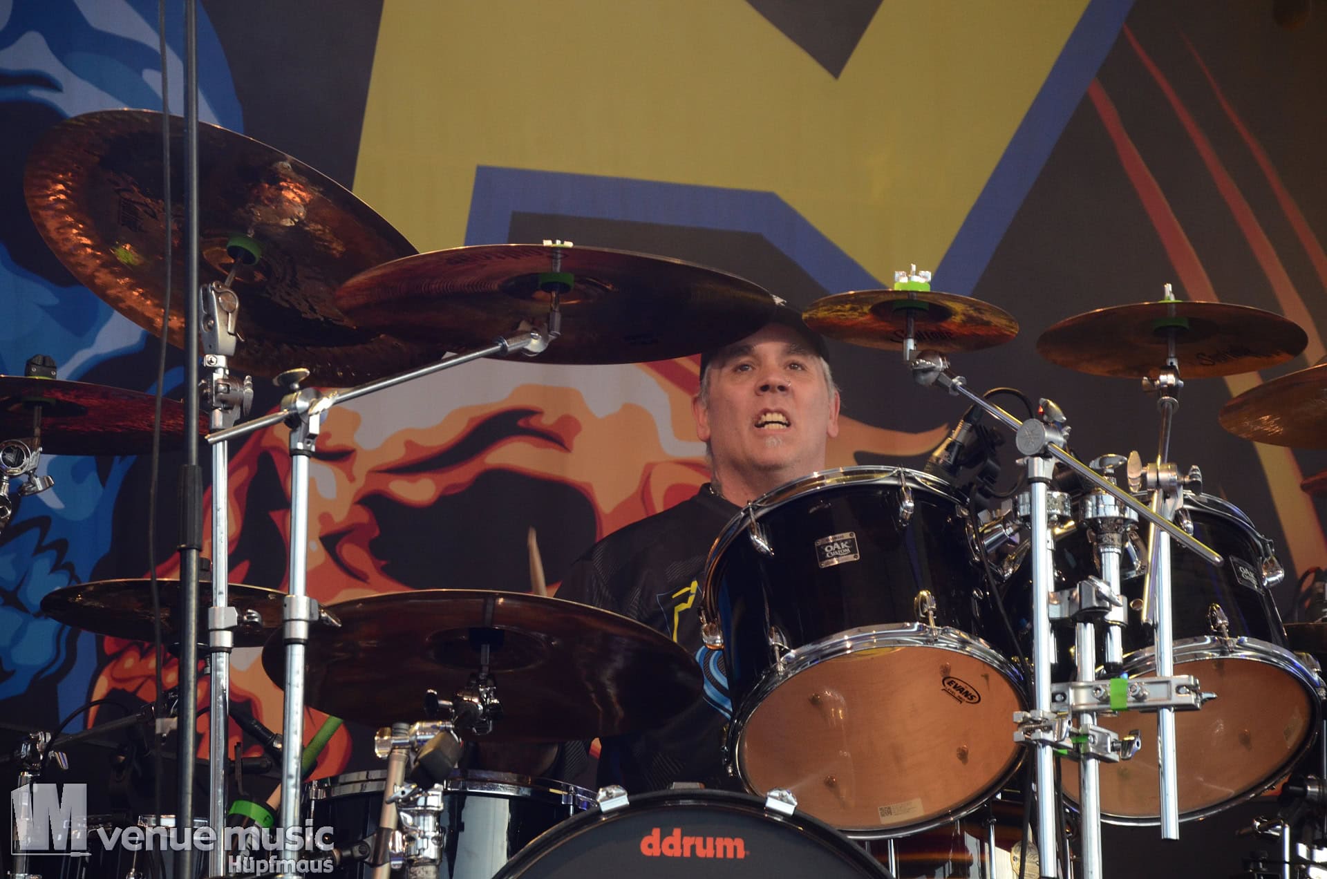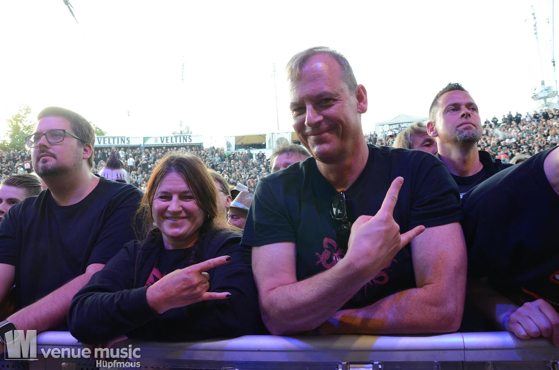 Als nächstes war dann eine der Bands dran, auf die wir uns sehr gefreut hatten: Forbidden. Grade erst wieder aktiv und mit zwei frischen Kräften an Drums und Vocals gaben sie auf der Bühne so richtig Gas. Thrash Metal aus der Bay Area vom Feinsten! Gelten doch auch ihre ersten beiden Alben „Forbidden Evil“ und „Twisted into Form“ aus den Jahren 1988 bzw. 1990 als Genre-Klassiker. Spätestens jetzt gab es im Publikum kein Halten mehr, das Amphitheater wurde zum Hexenkessel und die Graben-Security hatte ihre Mühe mit den Crowdsurfern. Denn leider muss man sagen, waren das auch alles keine Graben-Spezialisten um es mal gelinde auszudrücken. Glücklicherweise gab es bei den meisten Bands kaum Crowdsurfer. Doch hier mussten sie richtig ran.