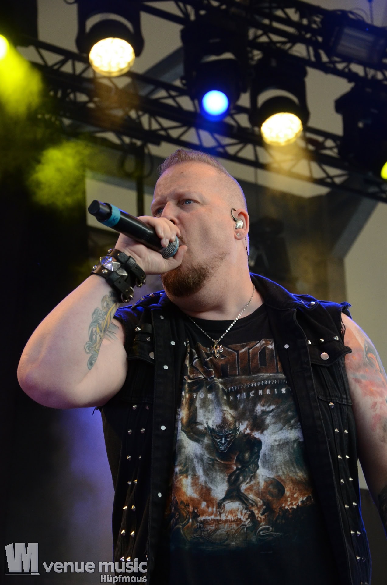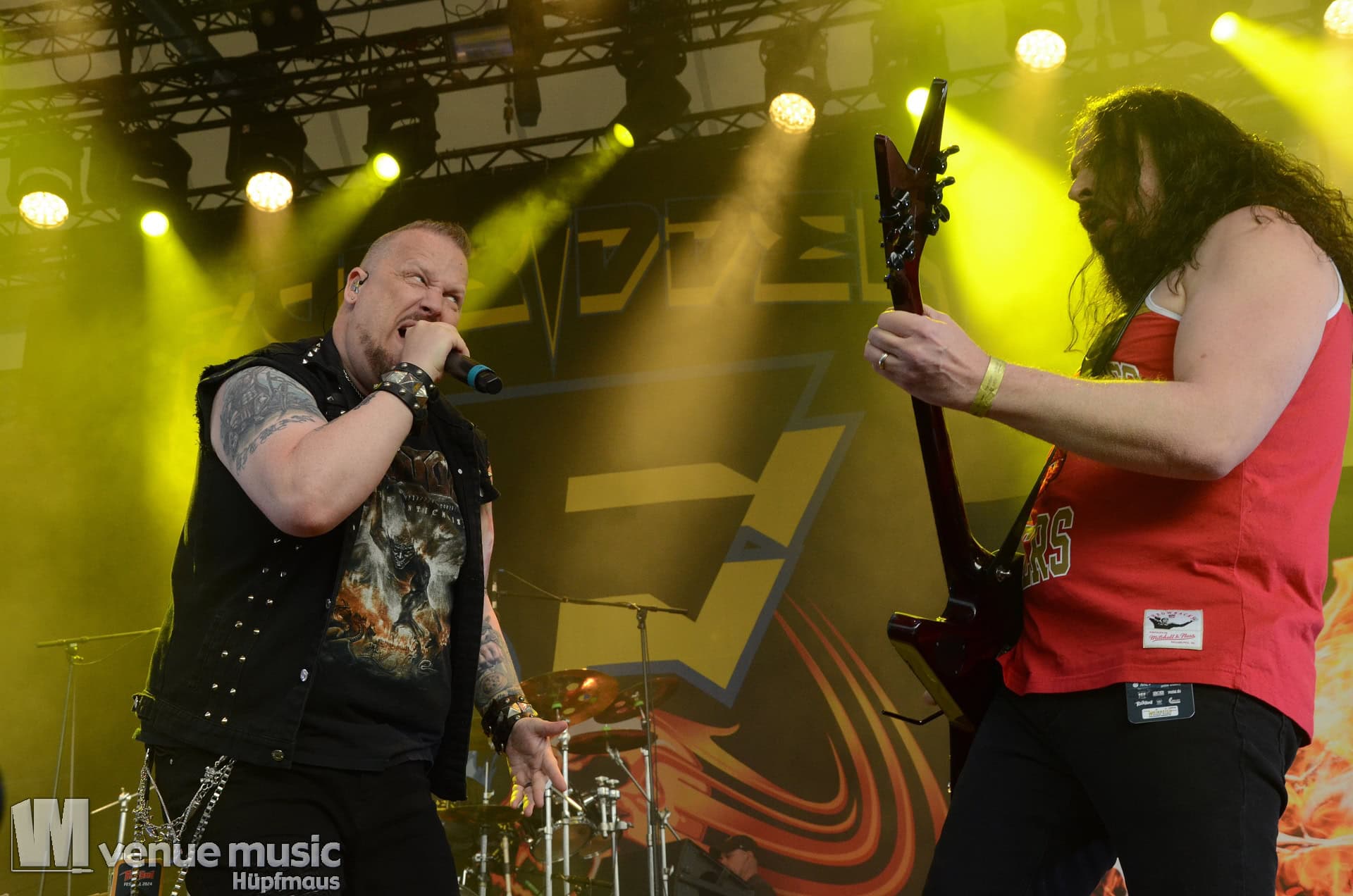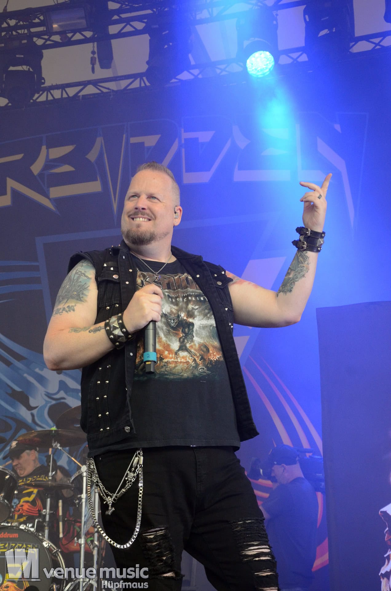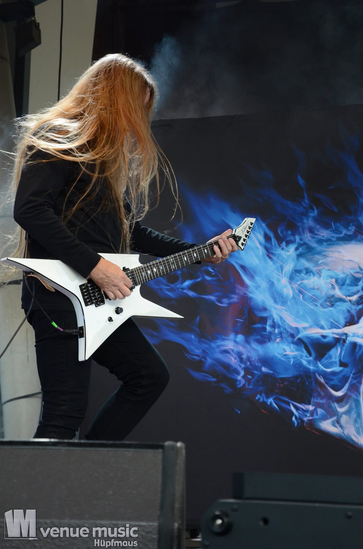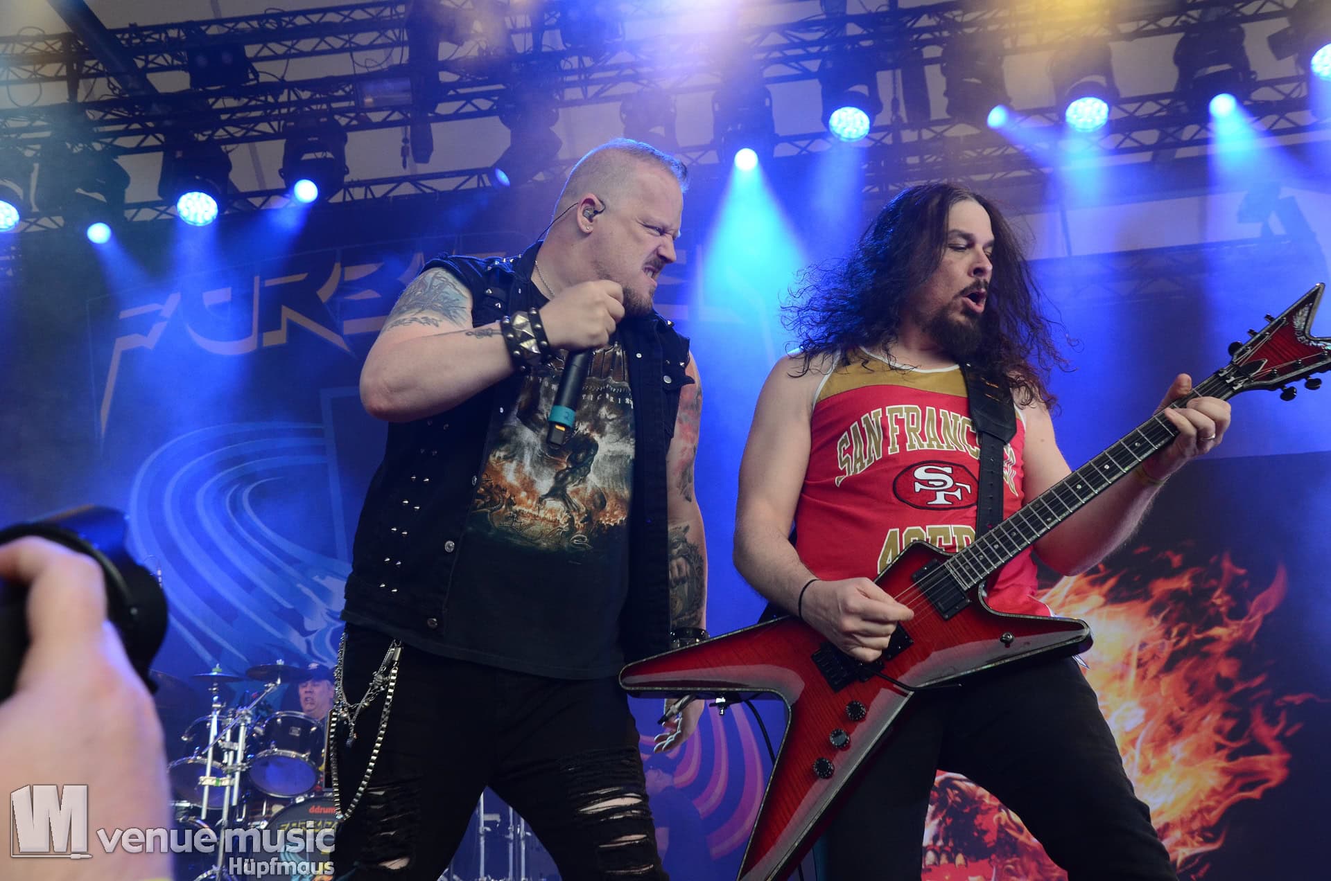 Als nächstes war dann eine der Bands dran, auf die wir uns sehr gefreut hatten: Forbidden. Grade erst wieder aktiv und mit zwei frischen Kräften an Drums und Vocals gaben sie auf der Bühne so richtig Gas. Thrash Metal aus der Bay Area vom Feinsten! Gelten doch auch ihre ersten beiden Alben „Forbidden Evil“ und „Twisted into Form“ aus den Jahren 1988 bzw. 1990 als Genre-Klassiker. Spätestens jetzt gab es im Publikum kein Halten mehr, das Amphitheater wurde zum Hexenkessel und die Graben-Security hatte ihre Mühe mit den Crowdsurfern. Denn leider muss man sagen, waren das auch alles keine Graben-Spezialisten um es mal gelinde auszudrücken. Glücklicherweise gab es bei den meisten Bands kaum Crowdsurfer. Doch hier mussten sie richtig ran.