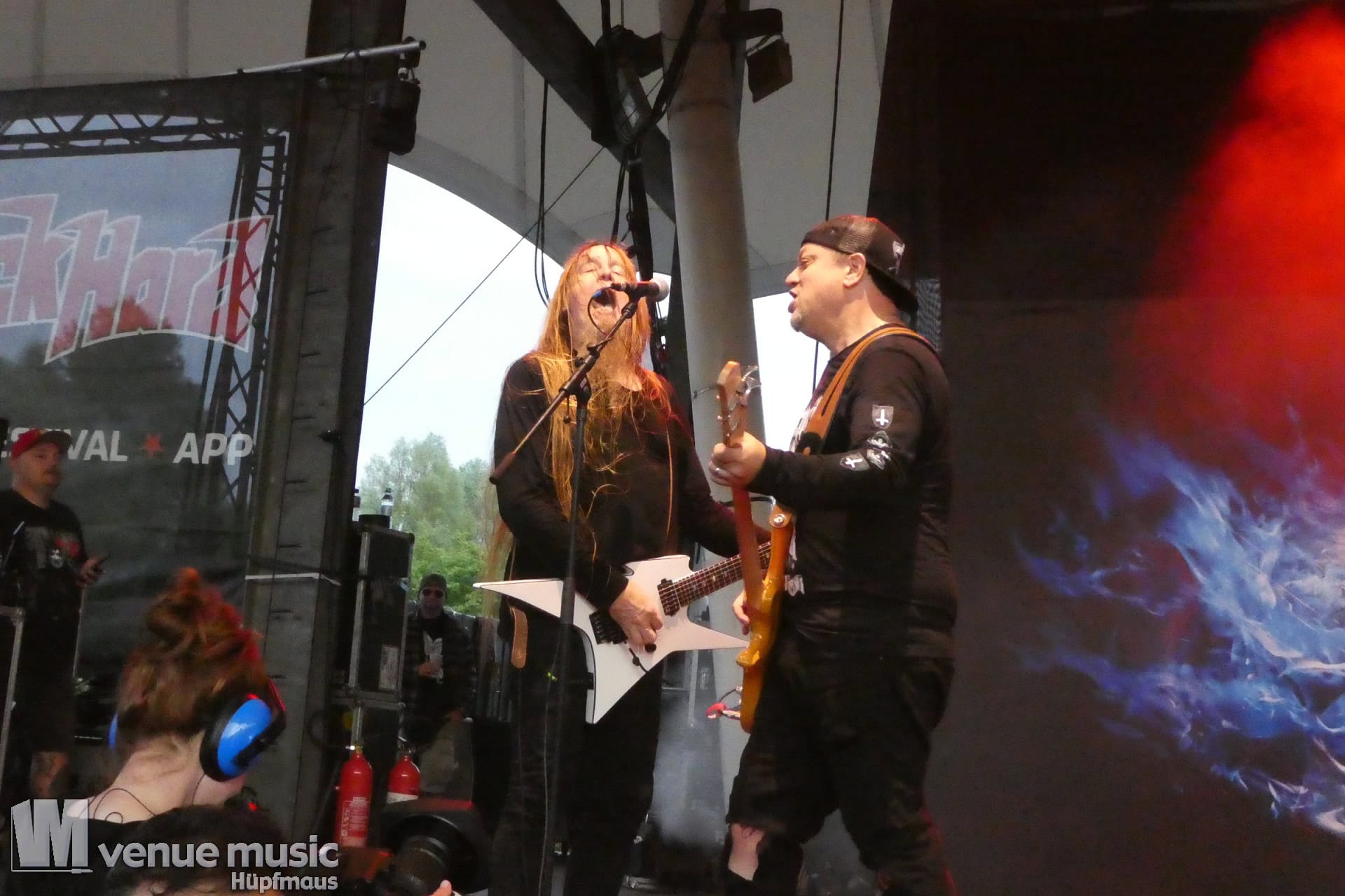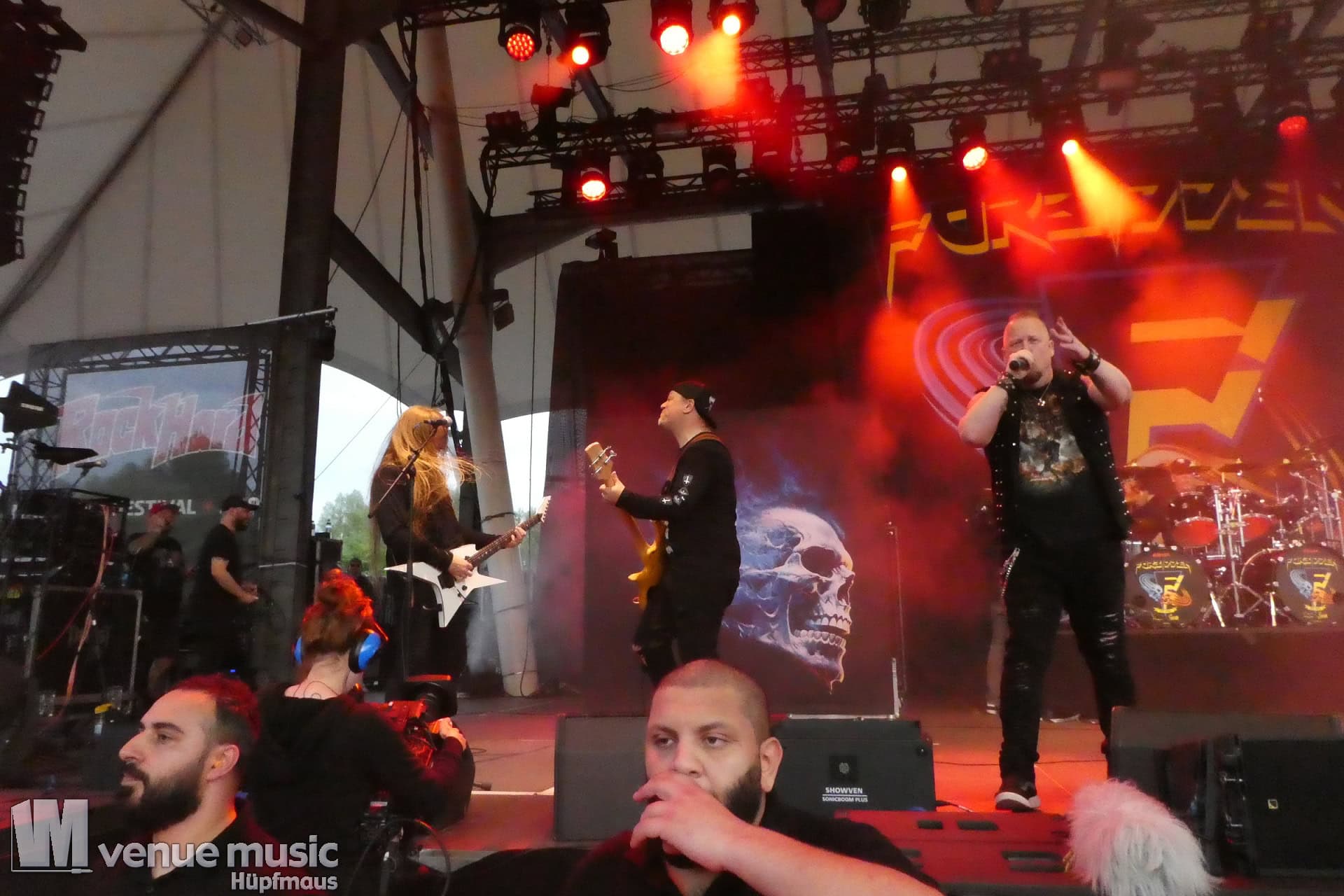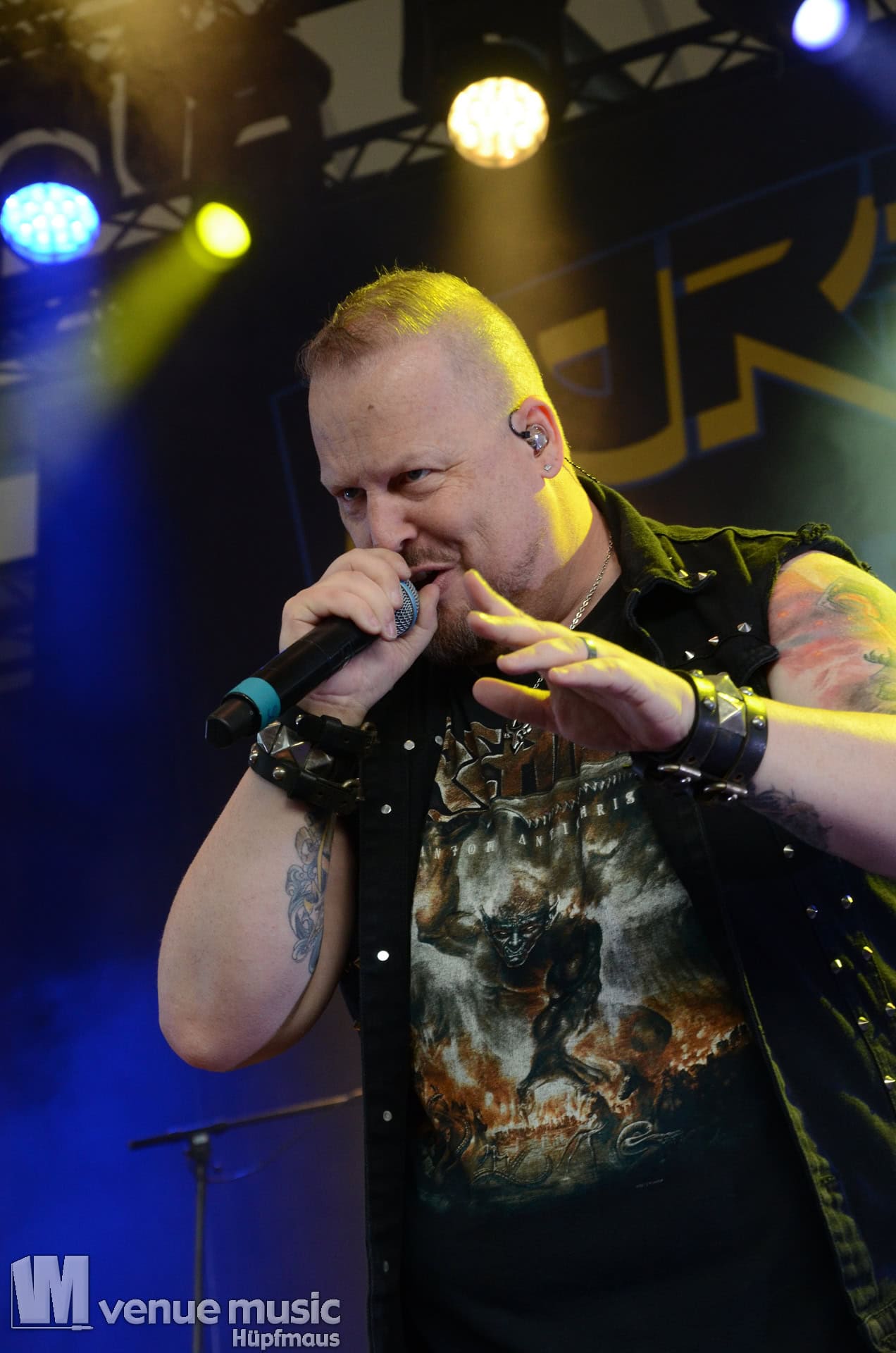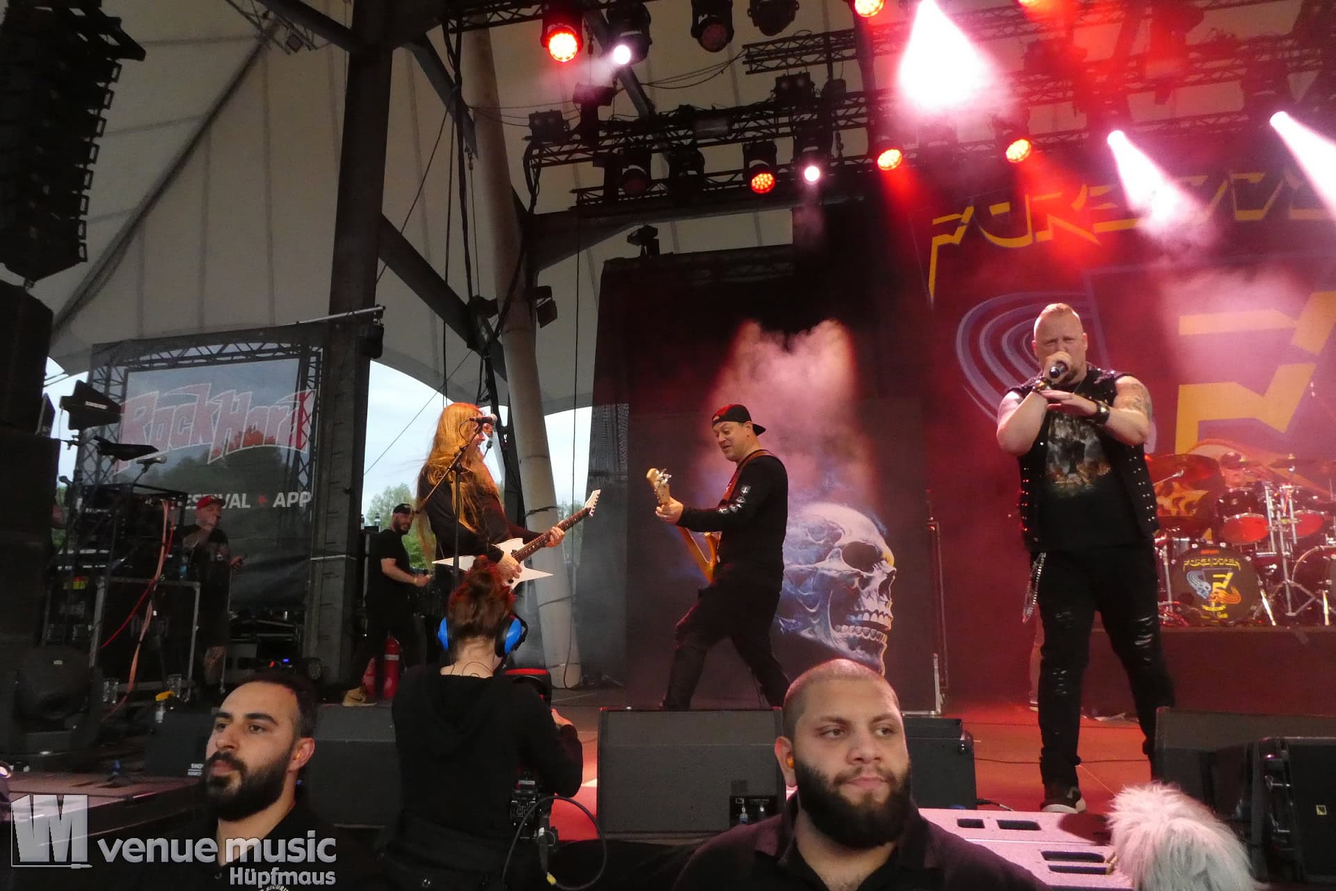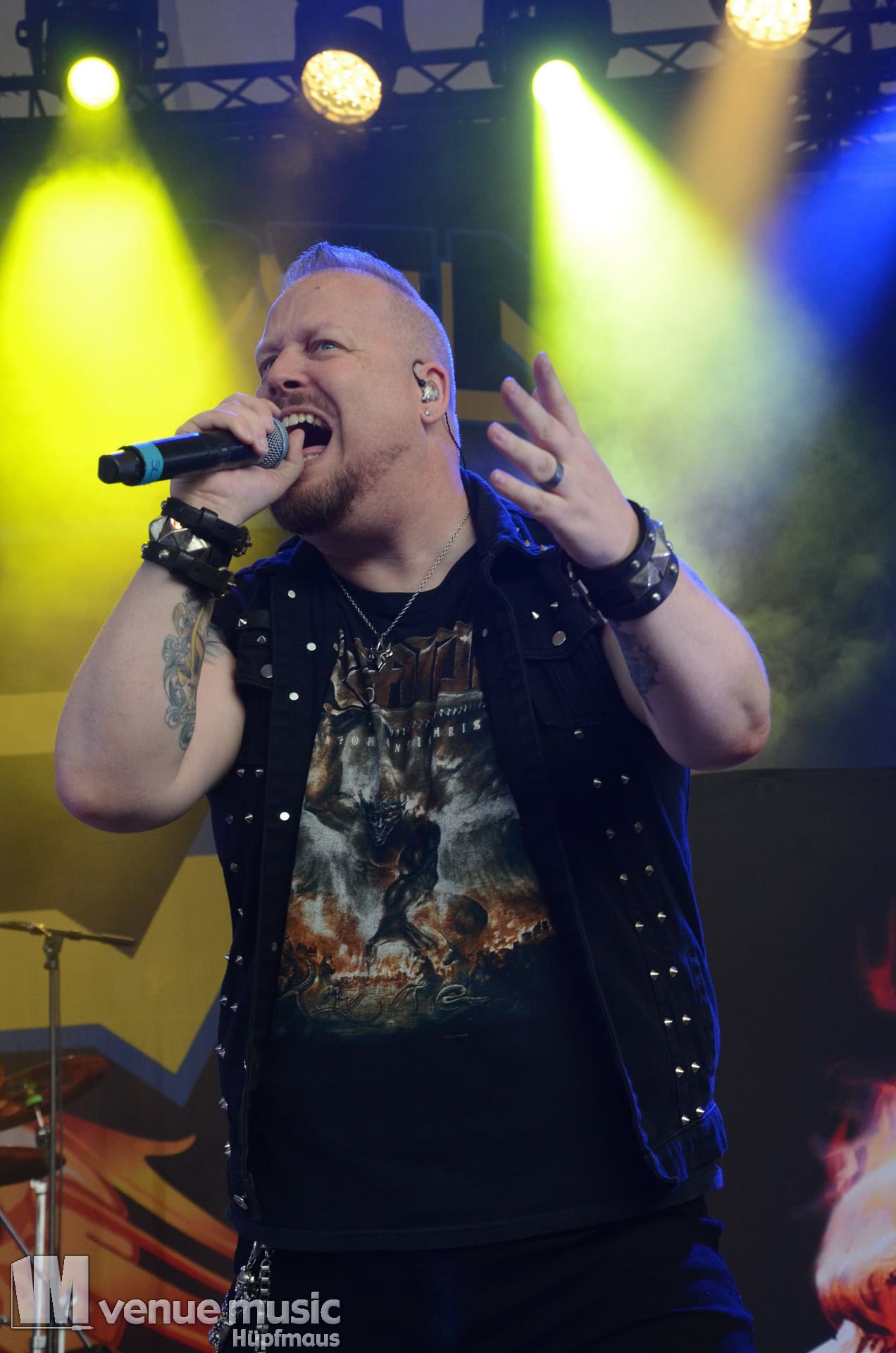Als nächstes war dann eine der Bands dran, auf die wir uns sehr gefreut hatten: Forbidden. Grade erst wieder aktiv und mit zwei frischen Kräften an Drums und Vocals gaben sie auf der Bühne so richtig Gas. Thrash Metal aus der Bay Area vom Feinsten! Gelten doch auch ihre ersten beiden Alben „Forbidden Evil“ und „Twisted into Form“ aus den Jahren 1988 bzw. 1990 als Genre-Klassiker. Spätestens jetzt gab es im Publikum kein Halten mehr, das Amphitheater wurde zum Hexenkessel und die Graben-Security hatte ihre Mühe mit den Crowdsurfern. Denn leider muss man sagen, waren das auch alles keine Graben-Spezialisten um es mal gelinde auszudrücken. Glücklicherweise gab es bei den meisten Bands kaum Crowdsurfer. Doch hier mussten sie richtig ran.