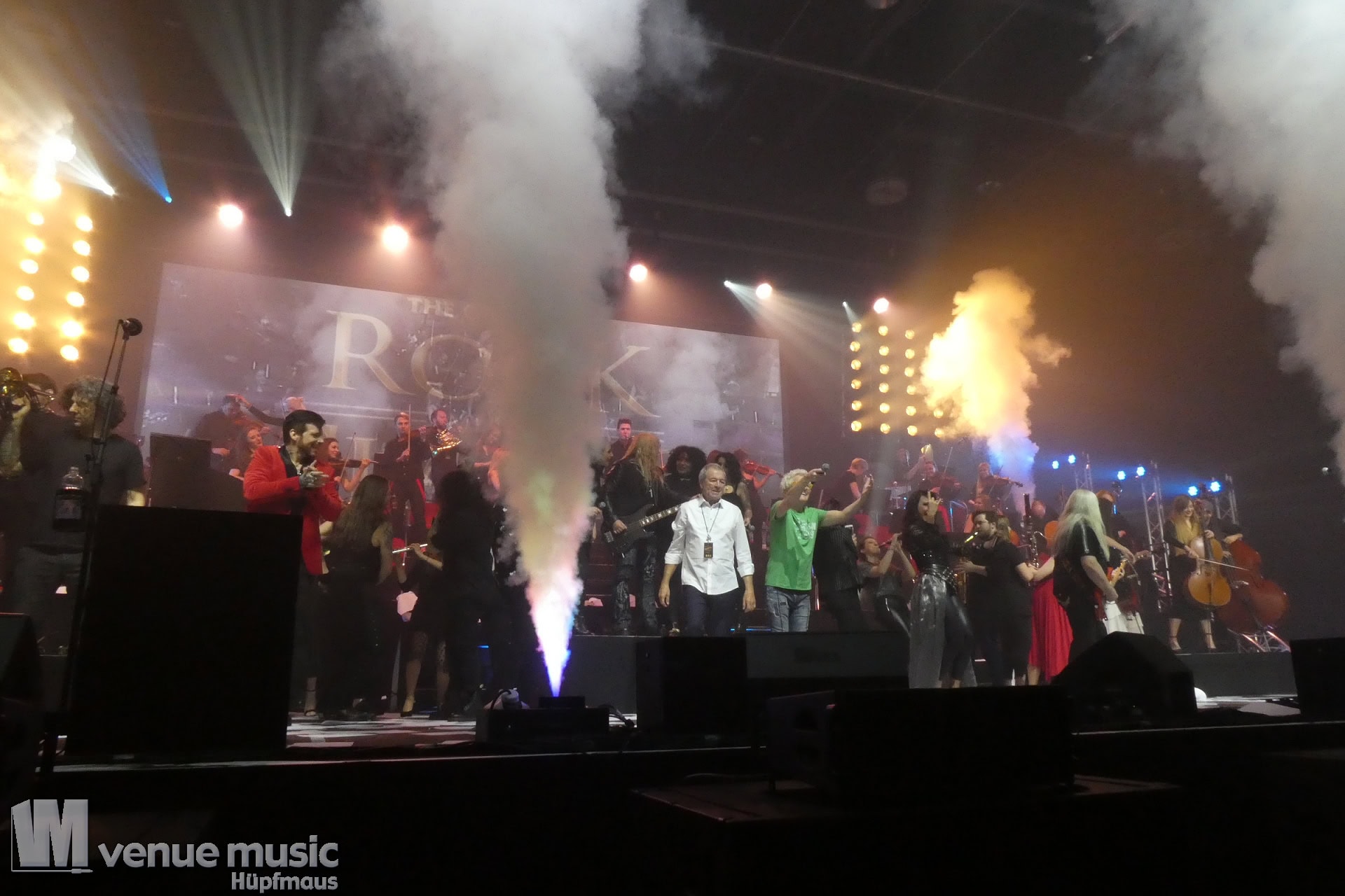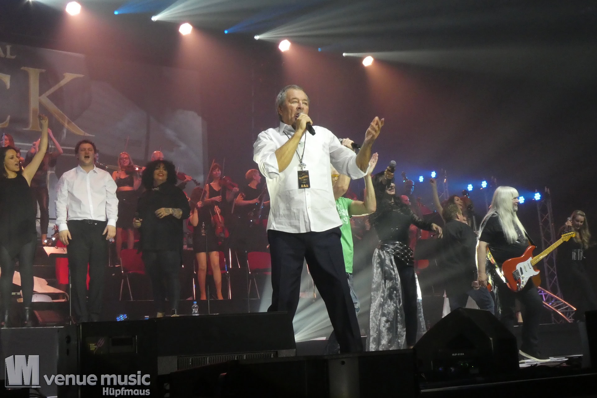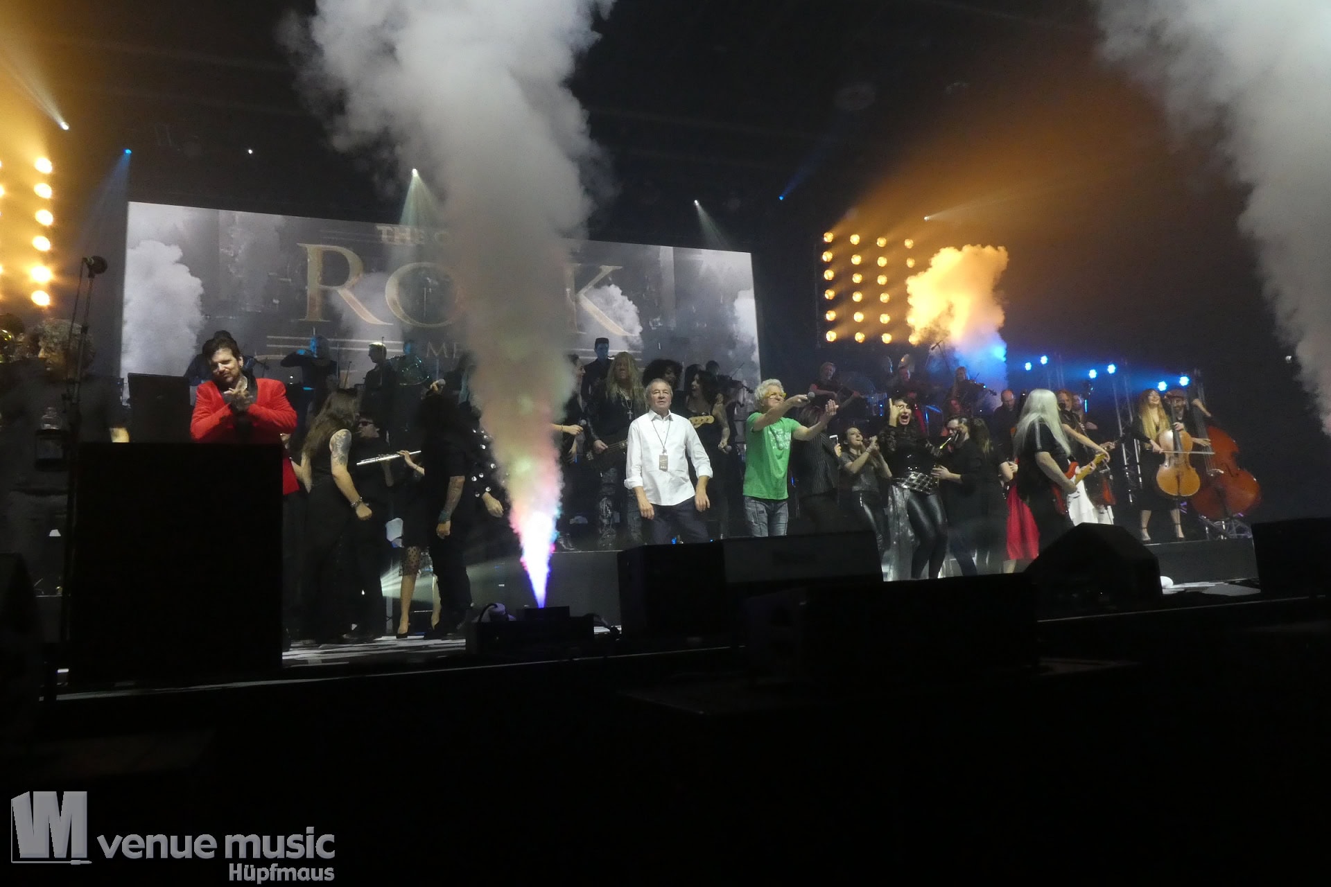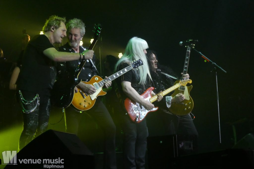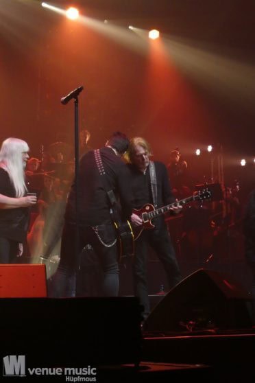 Die Tickets waren im regulären Vorverkauf nicht gerade günstig, aber für mich hatte sich jeder Cent gelohnt. Auch wenn ich nicht mal wusste bzw. genau nachgeschaut hatte, welche Musiker dieses Mal dabei sein würden. Denn es war mir klar: es wird in jedem Fall grandios. Und so war es dann auch. Der Sound war super und auf der Bühne war alles ein großartiges Miteinander. Eröffnet haben Mat Sinner und seine Band inkl. Chor und Orchester mit „Here I Go Again“ und „Rock You Like a Hurricane“, danach wurde mit den jeweiligen Gästen performt. Songs wie „Turn Me Loose“, „Keep the Fire Burnin'“, „The Ballroom Blitz“ oder „The Boys Are Back in Town“ konnten die Fans dabei begeistern. Zu „Whiskey in the Jar“ gab es dann stilecht auch Whiskey auf der Bühne und ein Geburtstag wurde auch noch gefeiert. Für viele war der Abschluß des Konzerts mit Ian Gillan natürlich der sehnsüchtig erwartete Showdown. „Smoke on the Water“ war da auf jeden Fall Pflicht.