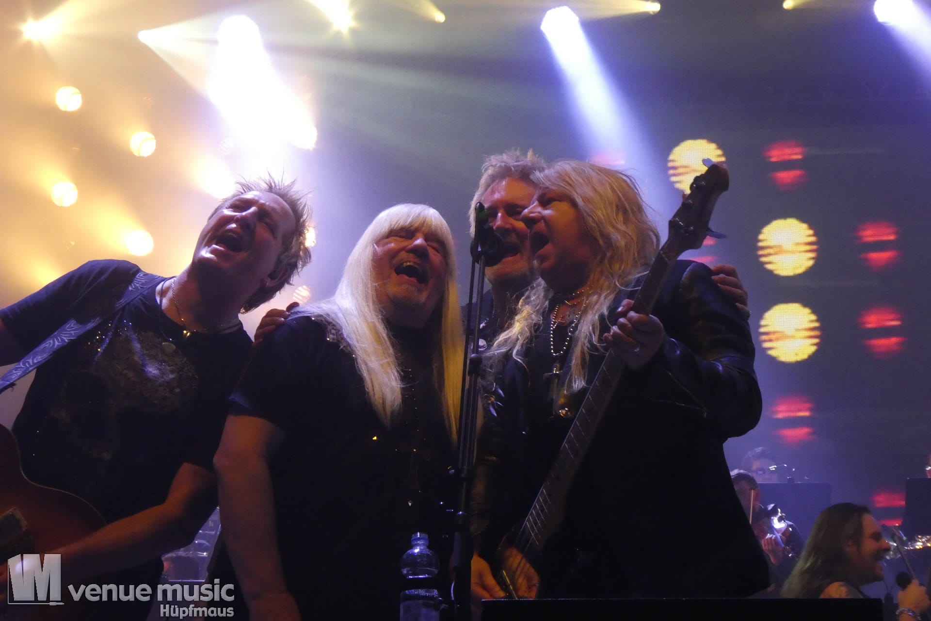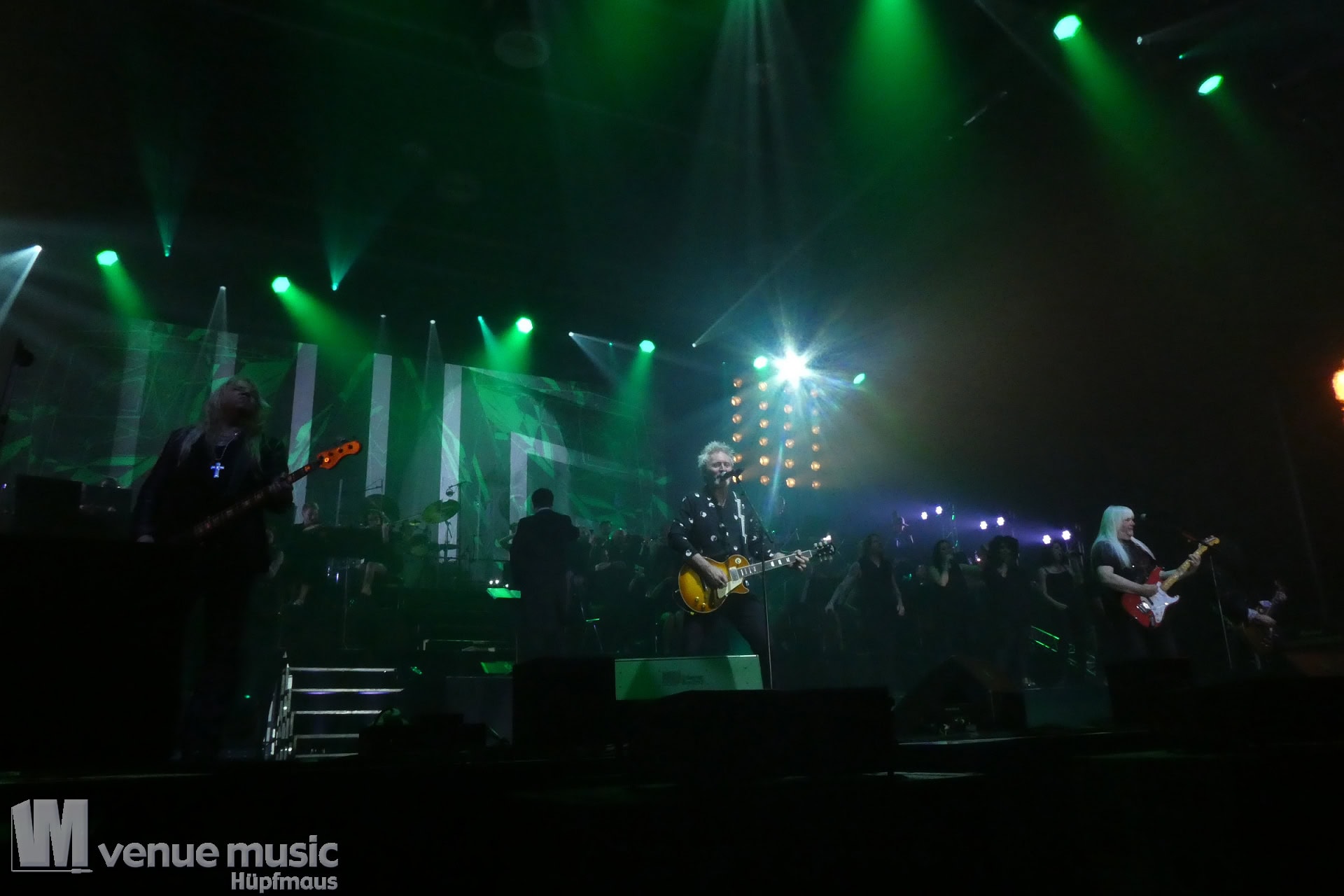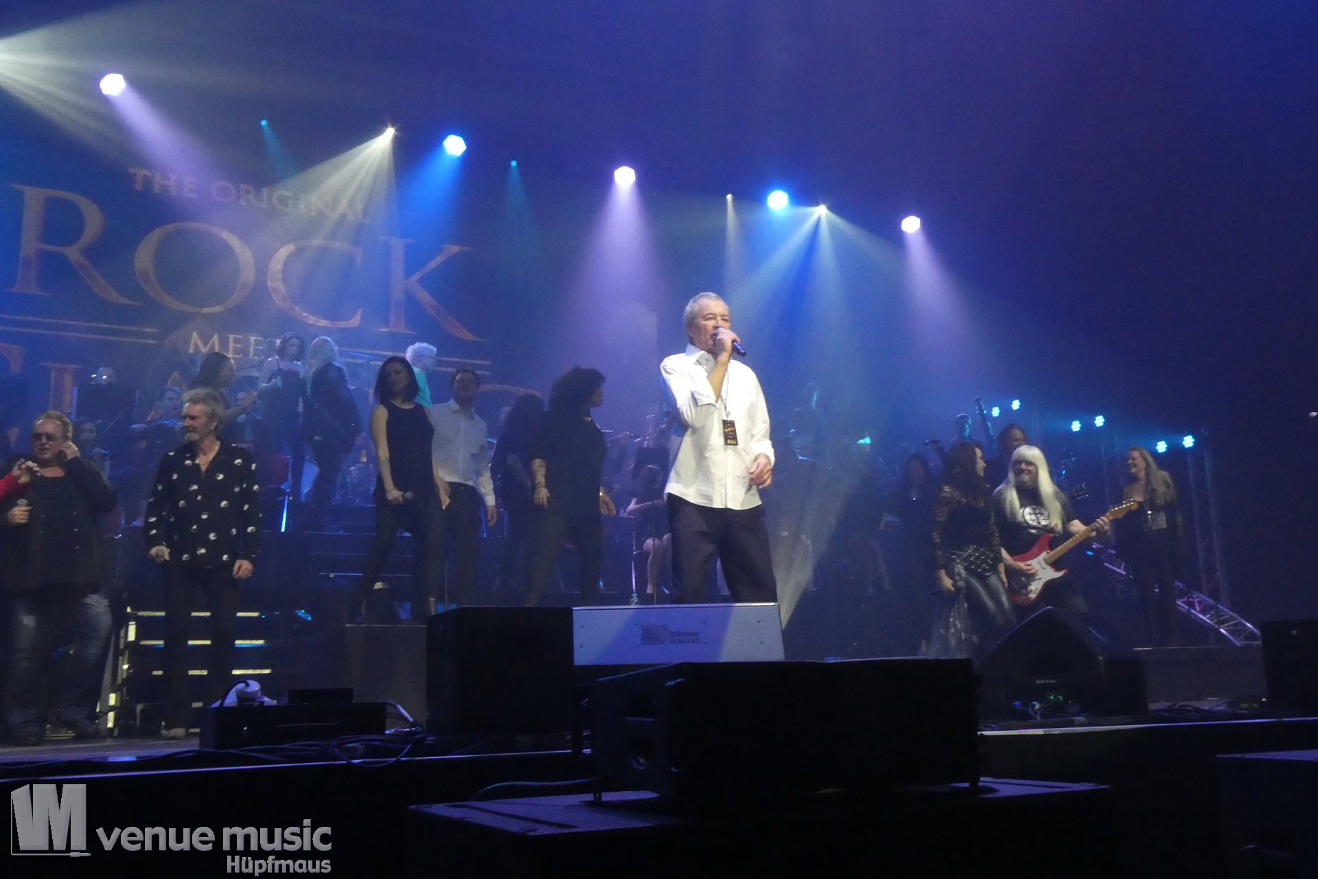 Die Tickets waren im regulären Vorverkauf nicht gerade günstig, aber für mich hatte sich jeder Cent gelohnt. Auch wenn ich nicht mal wusste bzw. genau nachgeschaut hatte, welche Musiker dieses Mal dabei sein würden. Denn es war mir klar: es wird in jedem Fall grandios. Und so war es dann auch. Der Sound war super und auf der Bühne war alles ein großartiges Miteinander. Eröffnet haben Mat Sinner und seine Band inkl. Chor und Orchester mit „Here I Go Again“ und „Rock You Like a Hurricane“, danach wurde mit den jeweiligen Gästen performt. Songs wie „Turn Me Loose“, „Keep the Fire Burnin'“, „The Ballroom Blitz“ oder „The Boys Are Back in Town“ konnten die Fans dabei begeistern. Zu „Whiskey in the Jar“ gab es dann stilecht auch Whiskey auf der Bühne und ein Geburtstag wurde auch noch gefeiert. Für viele war der Abschluß des Konzerts mit Ian Gillan natürlich der sehnsüchtig erwartete Showdown. „Smoke on the Water“ war da auf jeden Fall Pflicht.