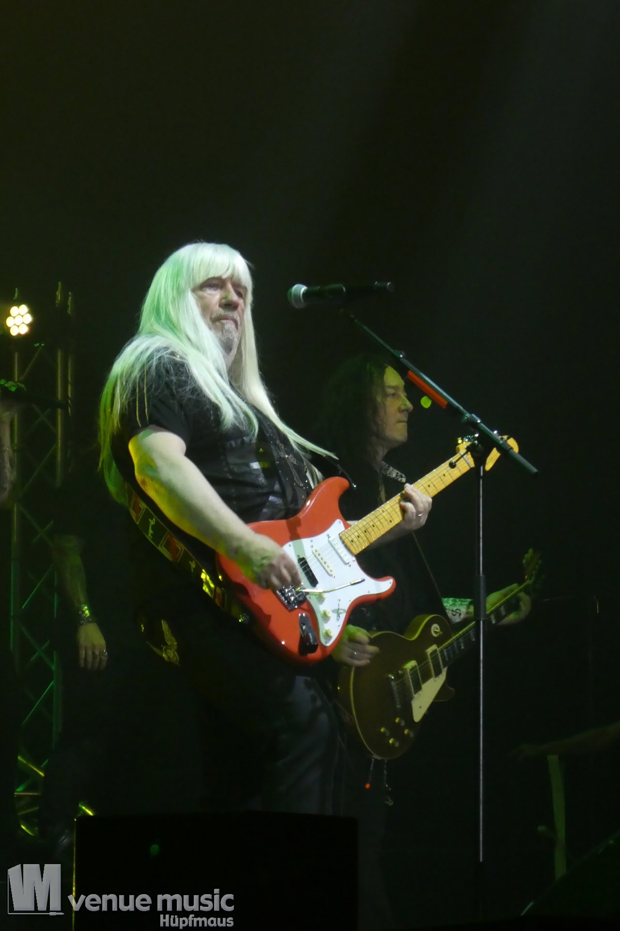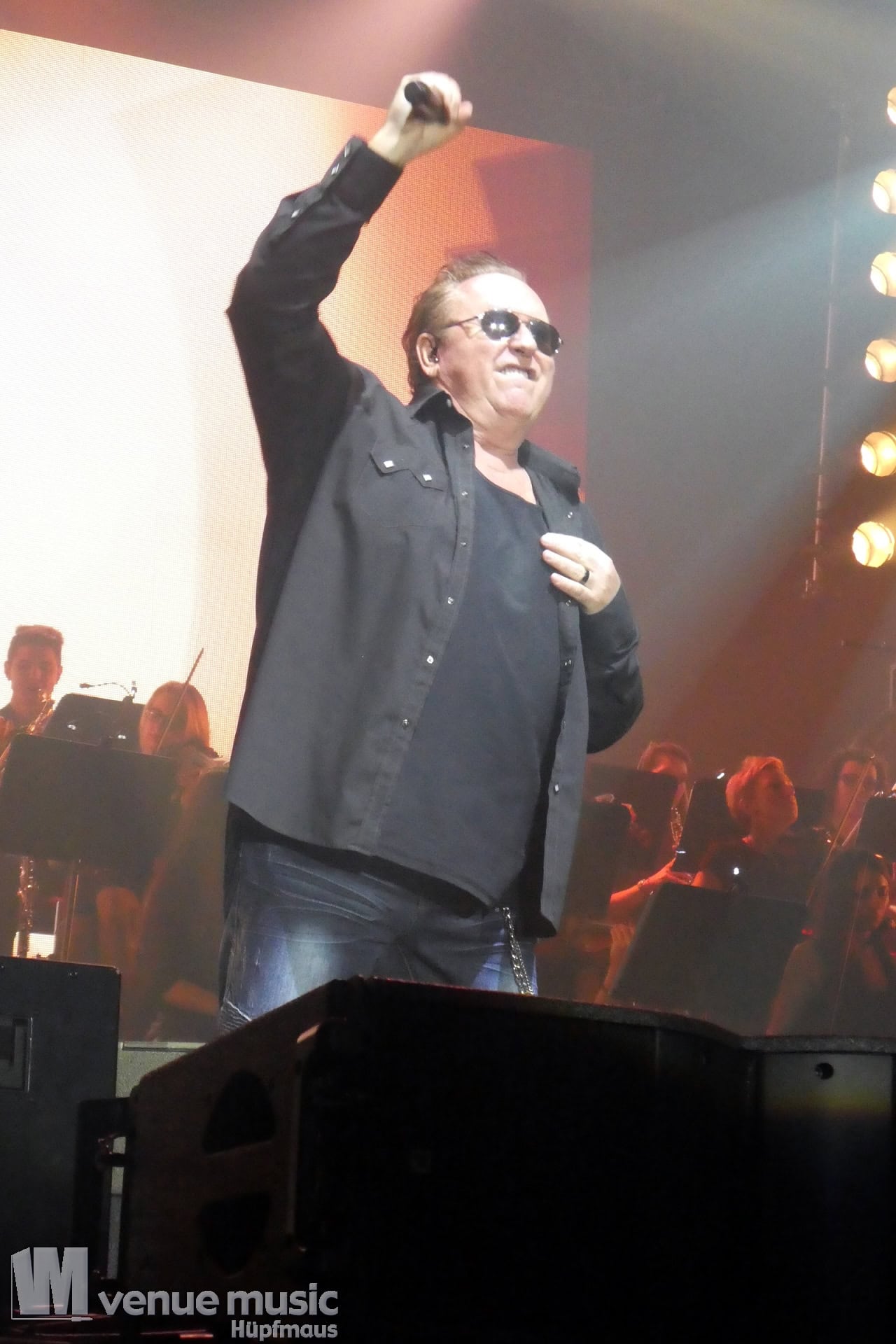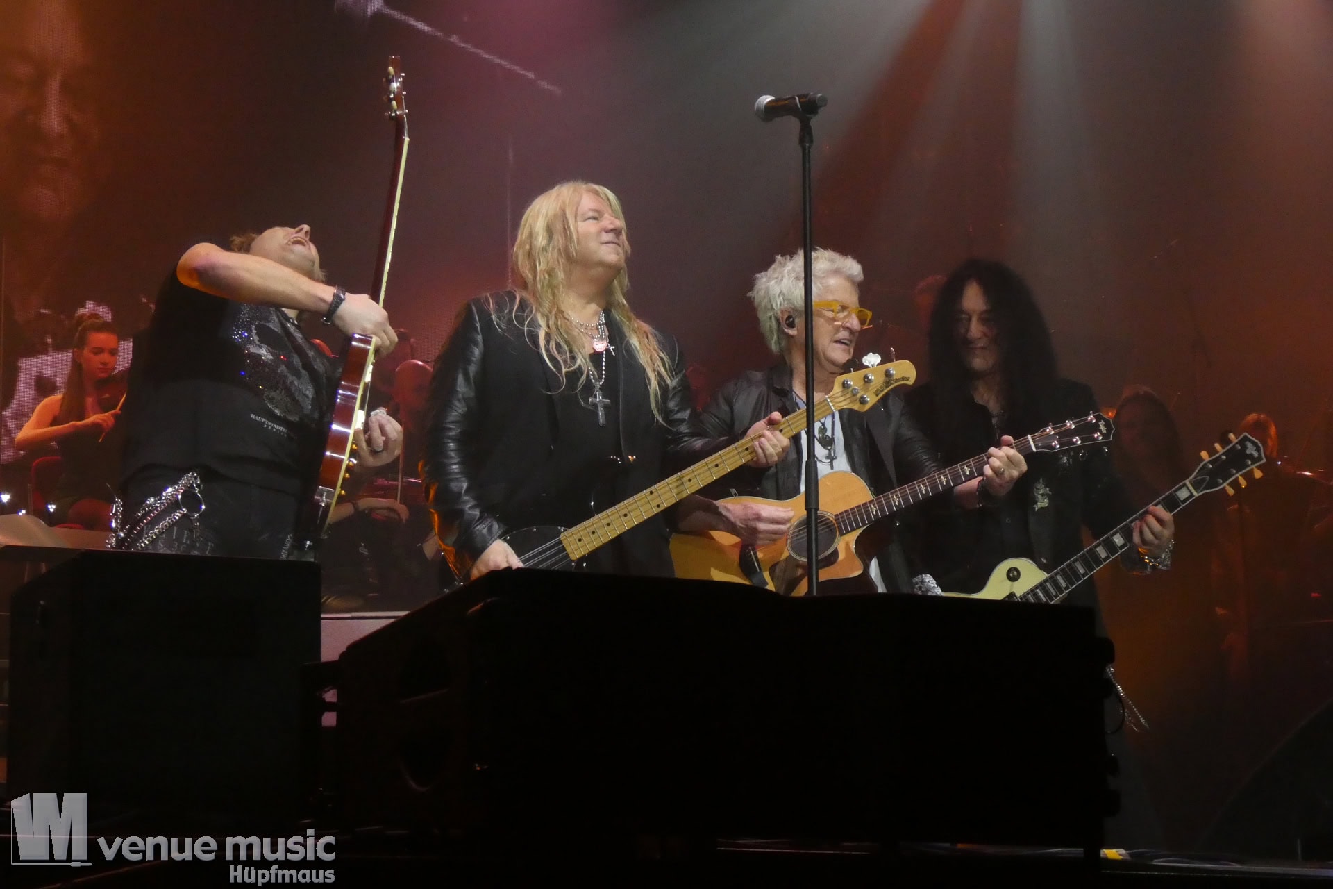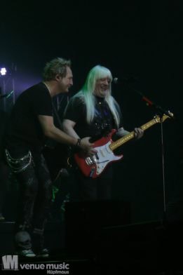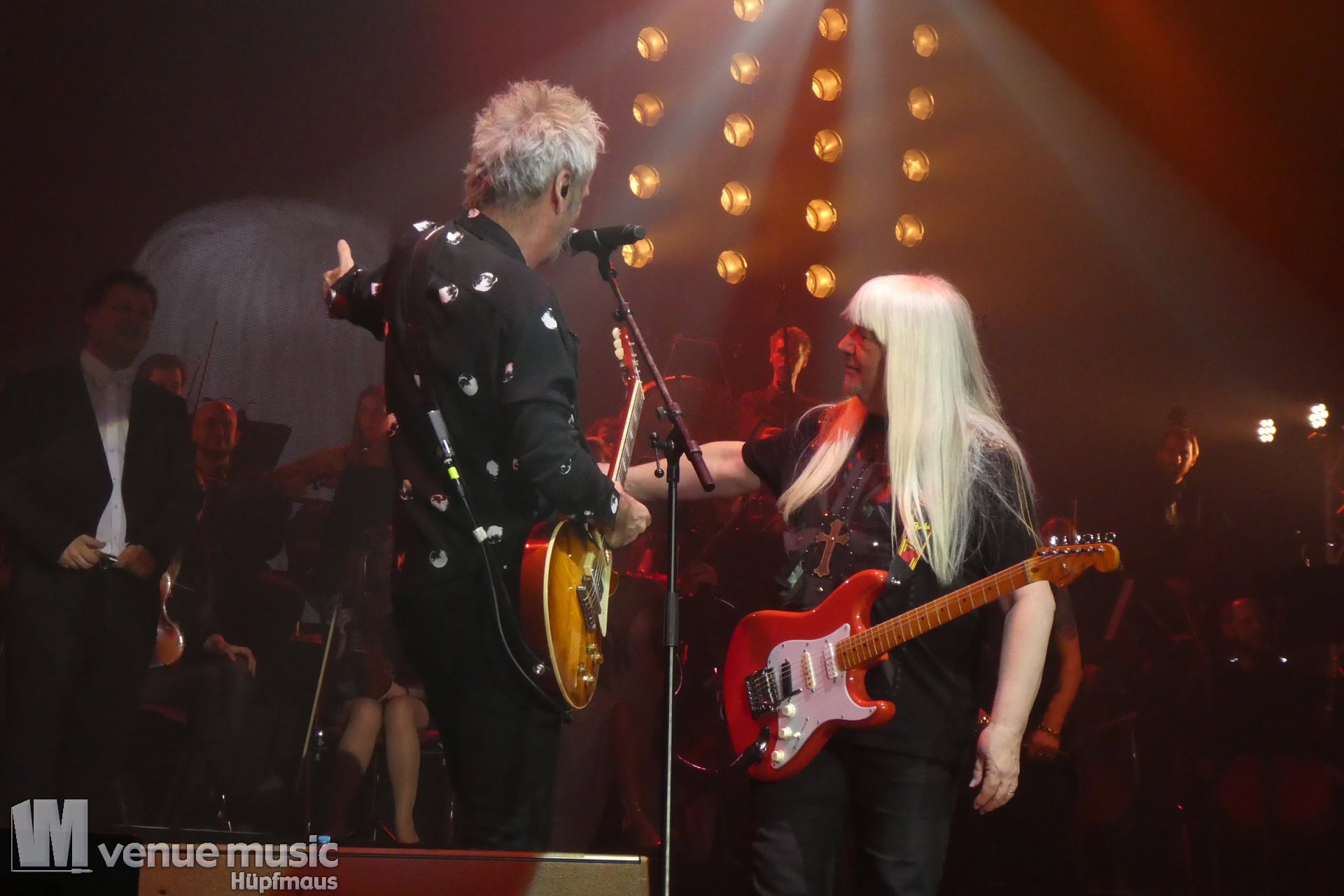 Die Tickets waren im regulären Vorverkauf nicht gerade günstig, aber für mich hatte sich jeder Cent gelohnt. Auch wenn ich nicht mal wusste bzw. genau nachgeschaut hatte, welche Musiker dieses Mal dabei sein würden. Denn es war mir klar: es wird in jedem Fall grandios. Und so war es dann auch. Der Sound war super und auf der Bühne war alles ein großartiges Miteinander. Eröffnet haben Mat Sinner und seine Band inkl. Chor und Orchester mit „Here I Go Again“ und „Rock You Like a Hurricane“, danach wurde mit den jeweiligen Gästen performt. Songs wie „Turn Me Loose“, „Keep the Fire Burnin'“, „The Ballroom Blitz“ oder „The Boys Are Back in Town“ konnten die Fans dabei begeistern. Zu „Whiskey in the Jar“ gab es dann stilecht auch Whiskey auf der Bühne und ein Geburtstag wurde auch noch gefeiert. Für viele war der Abschluß des Konzerts mit Ian Gillan natürlich der sehnsüchtig erwartete Showdown. „Smoke on the Water“ war da auf jeden Fall Pflicht.