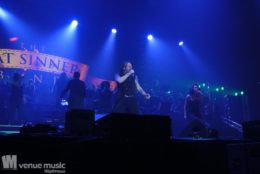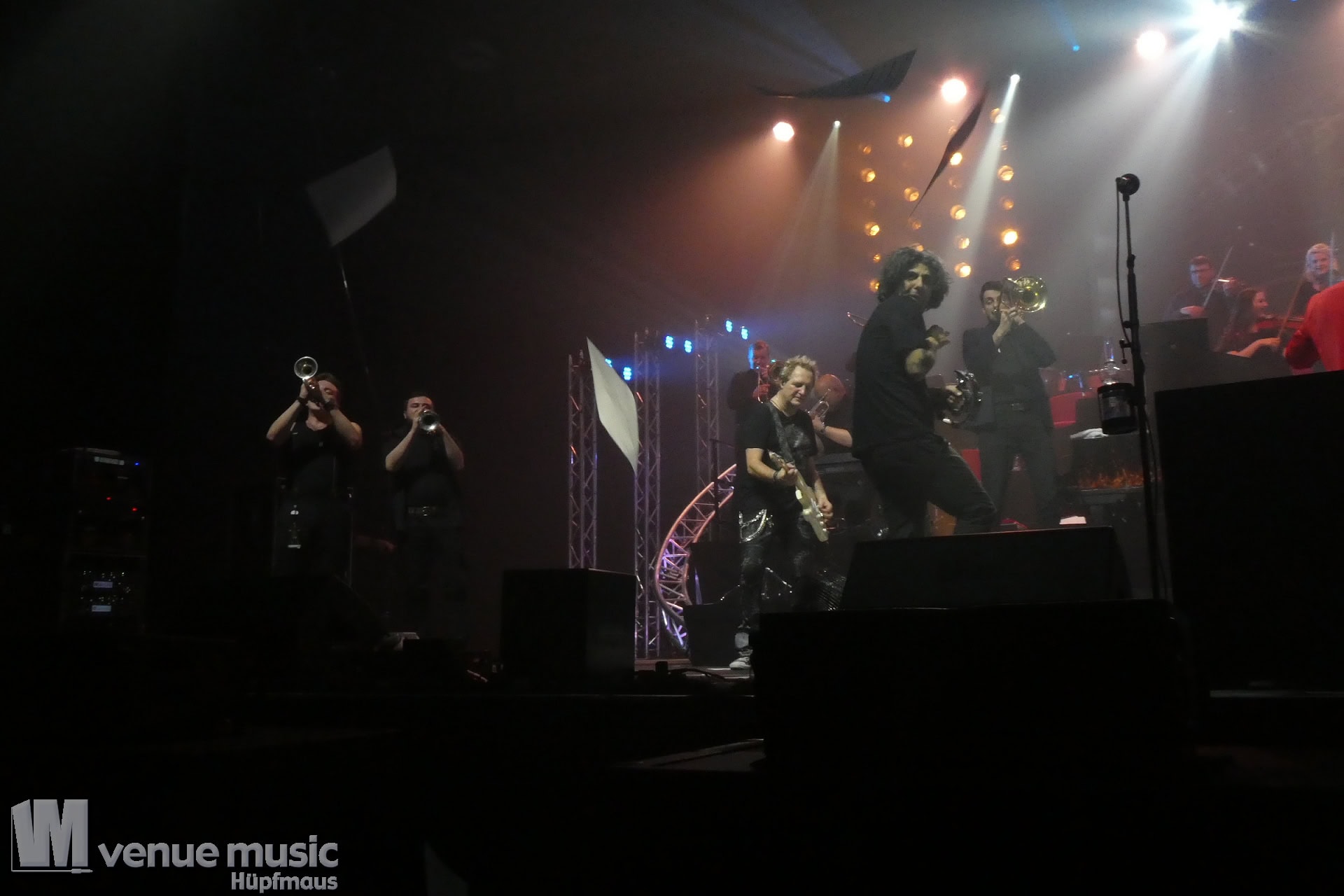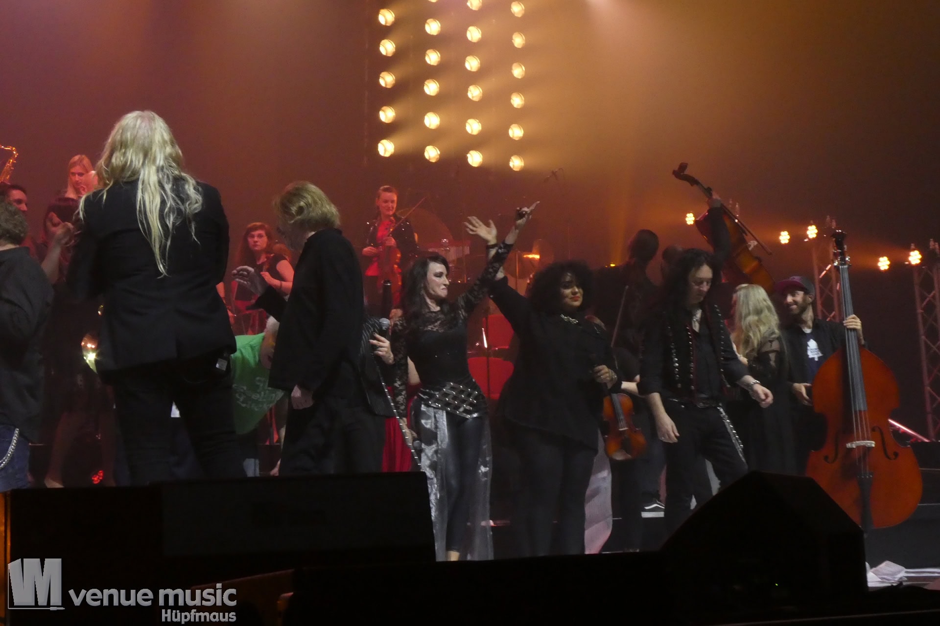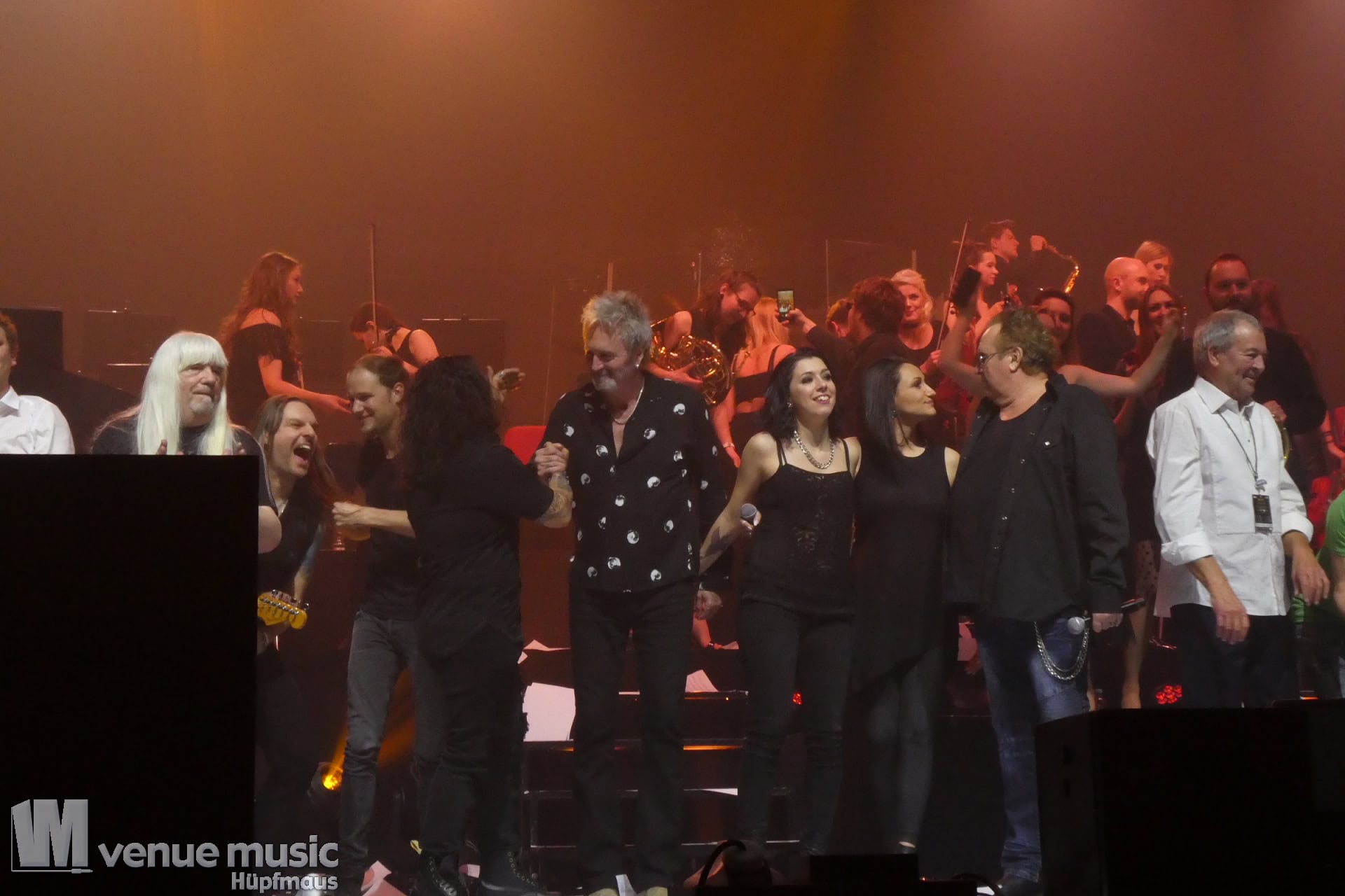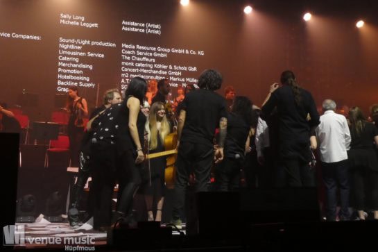 Nach Abschluss des Konzerts – es war ja die letzte Show – flogen dann noch die Notenblätter ins Publikum. Und jeder versuchte, ein ganz besonderes Souvenir von diesem Abend zu ergattern. Aber nicht nur das Publikum macht da noch Selfies, auch die Musiker auf der Bühne hielten diesen ganz besonderen Abend für sich fest, es wurde noch lange nach Konzertende auf der Bühne unterhalten und fotografiert. Es war wirklich ein besonderer Abend, bei dem auch wirklich auffiel, dass Mat Sinner in der Tat stolz und auch ein wenig ehrfürchtig seine Gäste präsentierte. Dieses Event ist wirklich mit Herzblut und auch als waschechter Fan organisiert. Selten sieht man alle auf der Bühne so toll miteinander umgehen und feiern. Es ist wirklich einen Besuch wert. Umso trauriger ist es, dass nächstes Jahr – wie schon 2017+2018 – kein Termin im Revier oder sogar in NRW vorgesehen ist. Denn der Vorverkauf lief wie schon 2015 im Ruhrgebiet und 2016 in Düsseldorf zu schlecht. Für 2020 wurde daher keine Bestätigung des örtlichen Veranstalters gegeben. Es ist wirklich wirklich schade, denn der Ruhrcongress war perfekt für dieses Event. Auch wenn natürlich solche Shows mit so vielen Mitwirkenden bezahlt werden müssen, sind für das Publikum über 90,- Eur in PK1 in der Tat kein Pappenstiel. Vielleicht würde eine Preisenkung helfen, die Hallen voller zu bekommen – so musste wieder eine Groupon-Aktion dafür sorgen, den Saal zu füllen. Ich jedenfalls wäre auf jeden Fall bei einem Konzert wieder mit dabei. Es lohnt sich!