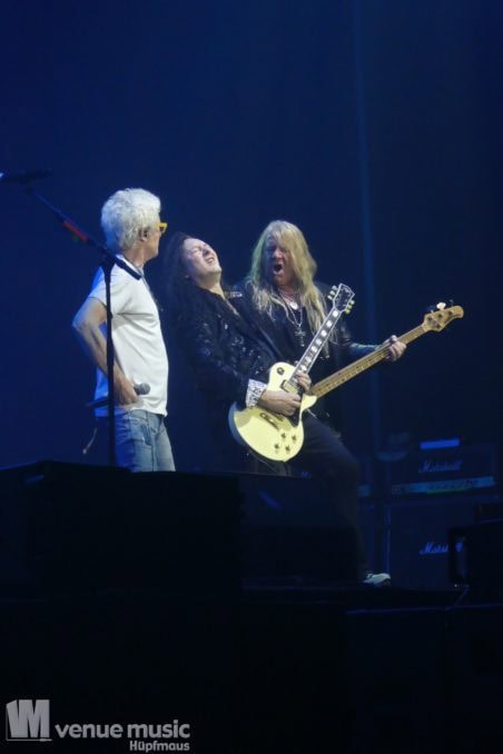 Die Stimmung war gigantisch und oft hielt es die Fans nicht auf ihren Sitzen. Es wurde getanzt und gefeiert – alle hatten ihren Spaß, auch auf den Bühne war es den Künstlern anzumerken. Die Securitys waren zunächst in Alarmbereitschaft, als die ersten Reihen aufstanden und mitfeierten. Beruhigten sich aber recht schnell wieder, als sie feststellten, dass niemand auch nur die leisteste Andeutung machte, sich der Absperrung vor der Bühne nähern oder gar auf die Bühne klettern zu wollen. Hier wurden einfach nur die Musiker abgefeiert und geehrt.