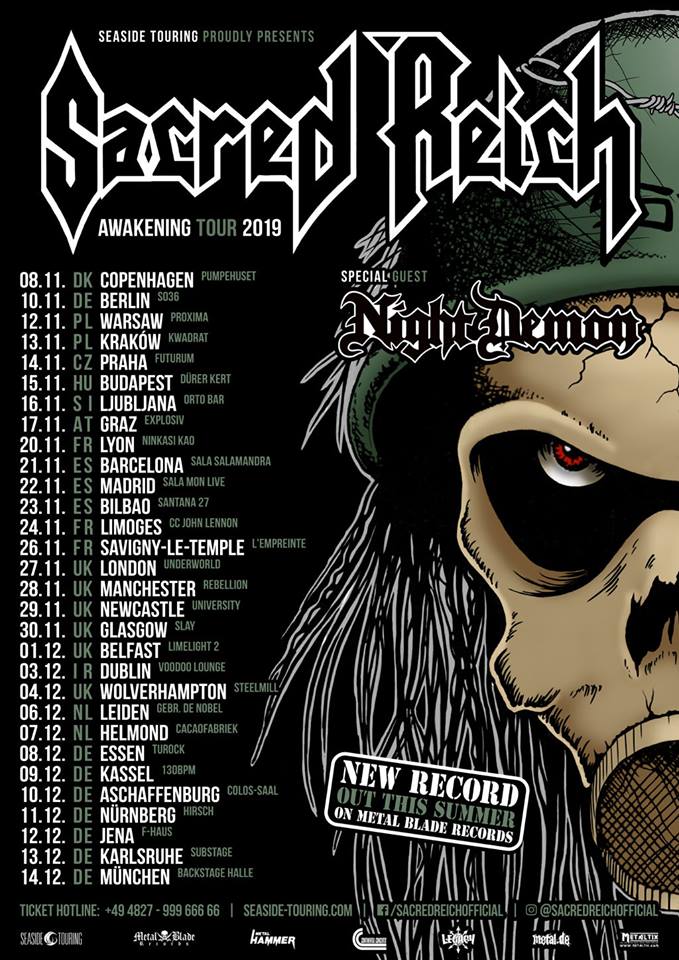 Passend dazu sind Sacred Reich im Herbst mit Night Demon auf ihrer „Awakening Tour 2019“. Aber bereits vorher touren die Thrash-Legenden: zuerst ab Mai in Nordamerika und danach auf European Summer Tour.