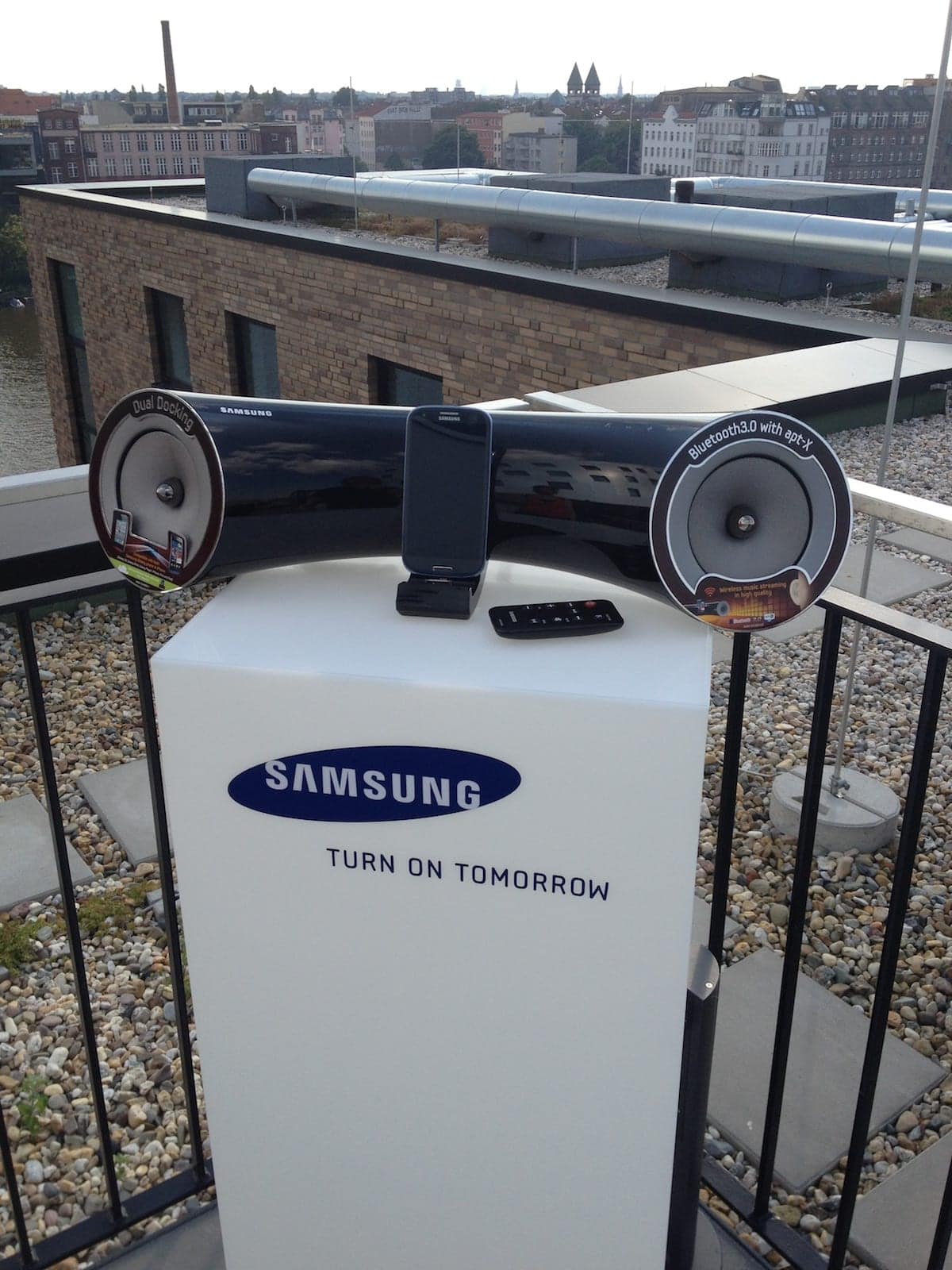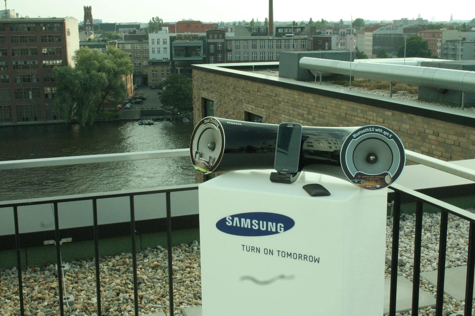 Zur Markteinführung lud Samsung zum Launch Event in Berlin. Als Location wählte man das direkt am Spreeufer gelegene nhow Hotel. Durch dessen Auslegung als Musik- und Lifestyle-Hotel, das mit allen technischen Möglichkeiten und Räumlichkeiten für musikbezogene Events ausgestattet ist, war die Atmosphäre an sich schon wohlstimmend auf das, was da kommen sollte.