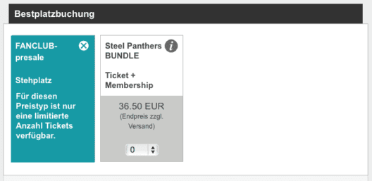 Zusammengefasst: Belohnt werden die Fans, die bislang noch keine Mitgliedschaft im Fanclub der Band haben – oder nicht? Nein, nicht ganz. Denn die Darstellung auf der Bestellseite ist irreführend. Versucht man das Bundle zu bestellen, dann erhöht sich der Preis im Warenkorb plötzlich um 34,50 Euro. Warum? Ticketmaster fügt automatisch den Artikel „Fanthers Worlwide Membership“ dem Warenkorb hinzu, also die Mitgliedschaft im Fanclub.