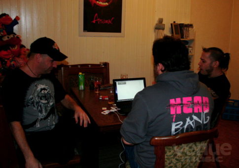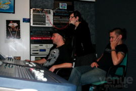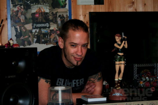 Haan: Bald – am liebsten im Januar. Mal kucken wie gesagt Du hast ja gerade drüben gesehen dass das noch teilweise ’ne riesen Baustelle ist. Wir arbeiten hier Tag und Nacht quasi, weil der liebe Slick morgen auch schon wieder nach Erlangen fahren muss. Wir machen so schnell wir können. Wir hättens gerne schon fertig, aber wie gesagt das sind auch immer wieder gerade live-Erfahrungen die wir gemacht haben mit den Songs: Dass wir dann die Songs wie gesagt hier im Studio geschrieben haben ohne sie wirklich mal zusammen gespielt zu haben und dann live gespielt haben und herausgefunden haben, dass ein paar Sachen echt geiler sind wenn wir sie anders machen. Wir haben Drums neu gemacht, ein paar Gitarren gewechselt und die Gesangslinien haben wir zig mal neu aufgenommen, weil die halt immer noch wachsen.