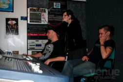 Haan: Wenn ich andere Bands produziere oder andere Bands aufnehme, haben die ja eigentlich schon die Songs d.h. man muss nur noch ein bisschen schleifen. Ich kriege ’nen groben Klotz hierhin, die Figur erkennt man schon und ich gehe mit Schmirgelpapier ran und mache die Ecken und Kanten weg oder mache Ecken und Kanten rein wenns der Song braucht wenn er zu glatt ist. Und bei dem was wir machen ist ja von Sekunde 1 an alles in unserer Hand. Sprich ein bisschen komponieren, wir sitzen uns dann abends mit den Demoversionen hierhin und schreiben die Texte, müssen die ganzen Arrangements machen, müssen wirklich zu jedem Song überlegen: ok, was spielen wir wann wo wie, wie oft hats das schonmal gegeben, wie oft haben wir das schonal gemacht, wieviel ist trademark, wieviel ist besser nicht, wieviel ist besser doch. Da ist halt von Sekunde 1 an alles in unserer Hand. Mit anderen Band ist es halt so, dass ich dann nur ein bisschen feilen muss, ein bisschen schleifen muss plus spielen. Ich muss dann meinen Kram auch selber spielen – wobei es bei den anderen Bands aber auch oft der Fall ist dass ich dann spielen muss.