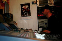 Haan: Ich verbringe ja eh die meiste Zeit hier im Studio mit Bands, die auch Songs schon im Proberaum oder wo auch immer geschrieben haben, die aber zum größten Teil wenn ich die dann produziere nur noch wenig damit zu tun haben was hier abgeliefert wurde. Weil einfach dann ganz klar ist im Proberaum: Der Schlagzeuger hört den Bassisten nicht, der Gitarrist spielt eh was er will und ist der Lauteste und dann wenn man dann wirklich mal definiert hören kann was jeder einzelne macht, kommt dann teilweise raus, dass die Band eigentlich gar nicht zusammen spielt. Das Problem haben wir von vornherein nicht, weil wir mit Bass und Schlagzeug und mit der Gitarre anfangen. Ein Song, einer meiner Lieblingssongs ist „Good You’re Gone“ fing hier im Studio an weil er seine Gitarre gestimmt hat. Er sagte „pling-pling-pling-passt“ – ich sage „hey egal – wo haste das geklaut?“ – „Habe ich mir gerade ausgedacht beim Stimmen“ – ja, Song fertig. Der war dann ’ne viertelstunde später fertig.