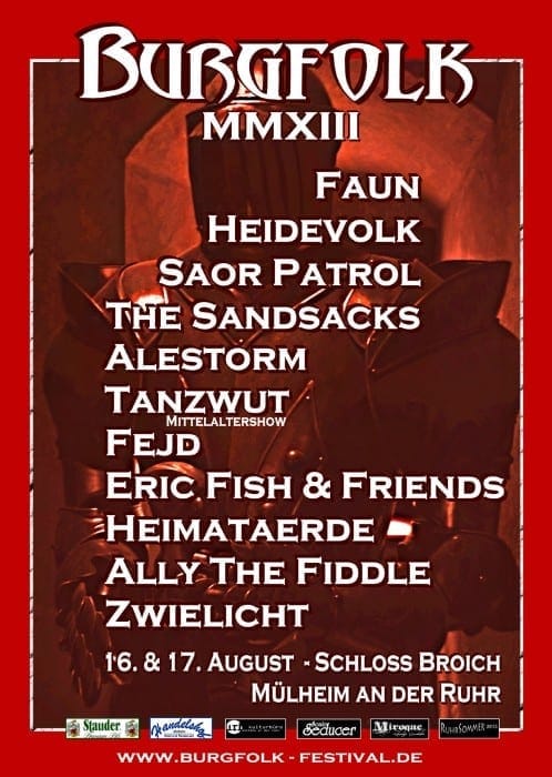 Der Vorverkauf läuft seit gut 2 Wochen und inzwischen ist auch das Billing des Burgfolk 2013 komplett. Heidevolk und Alestorm sind nun noch bestätigt worden.