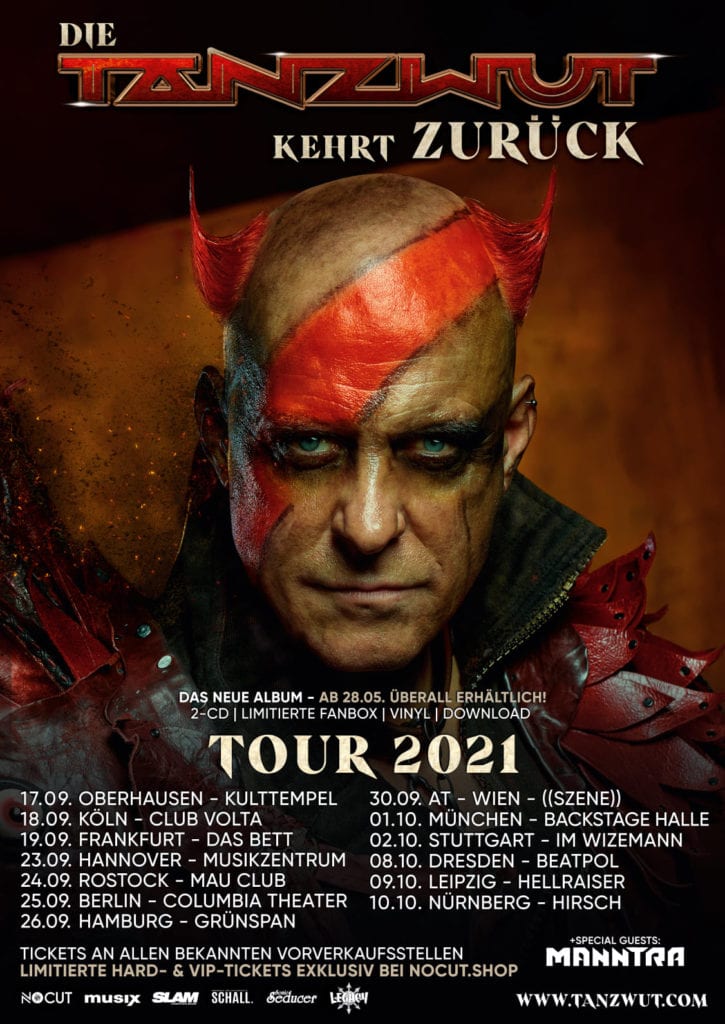 Tanzwut waren fleissig und haben einige gute Neuigkeiten zu verkünden: am 28.Mai 2021 erscheint ihr neues Album „Die Tanzwut kehrt zurück„(*) auf CD, Vinyl und als limitierte Fanbox. Die verschiedenen Ausführungen können bereits unter anderem im NoCut Shop oder bei EMP vorbestellt werden.